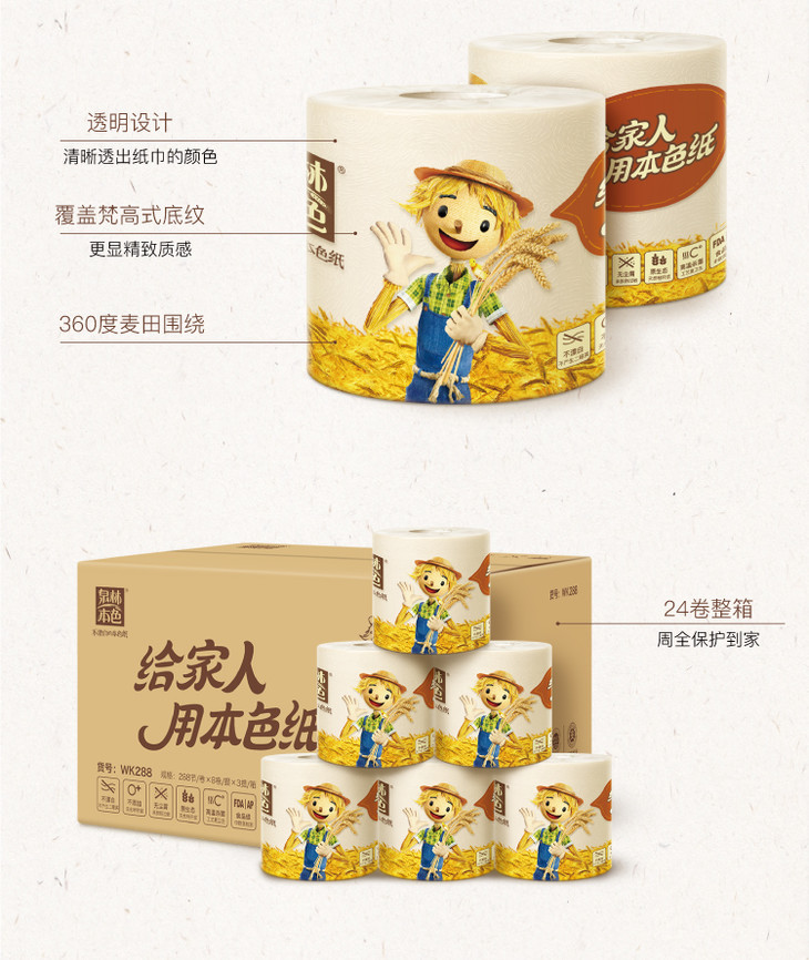 泉林本色卷纸 3层280节*27卷