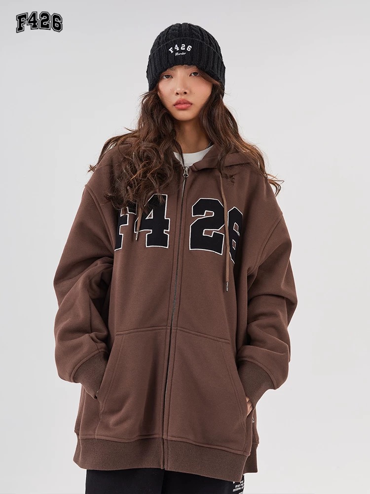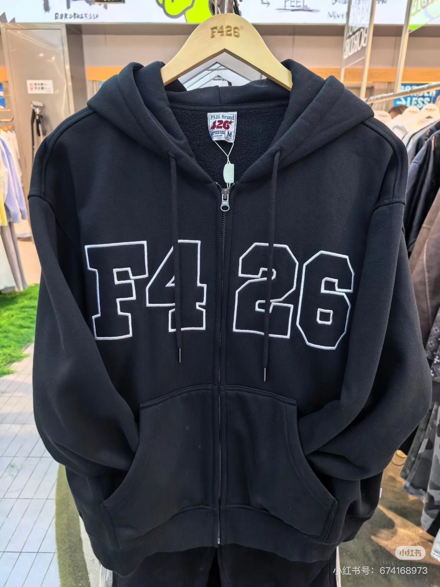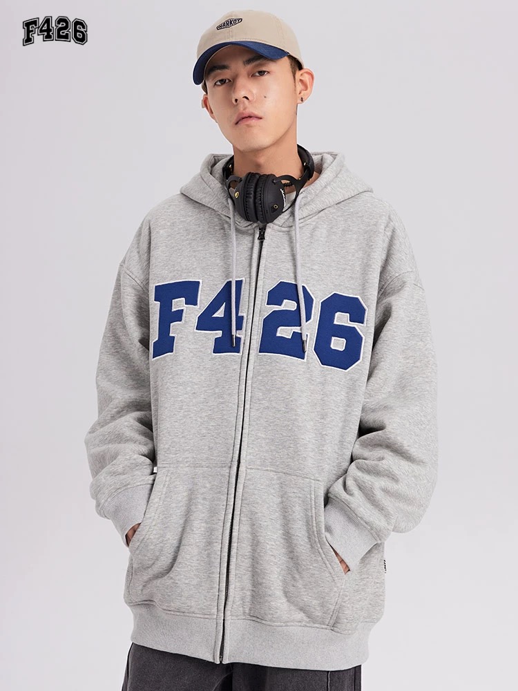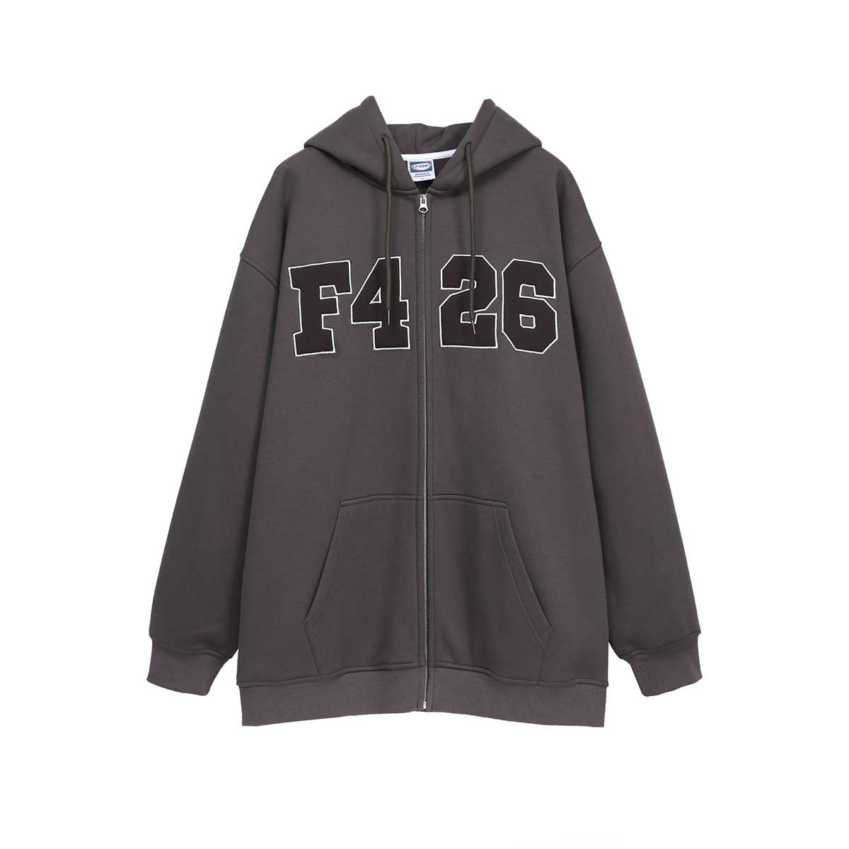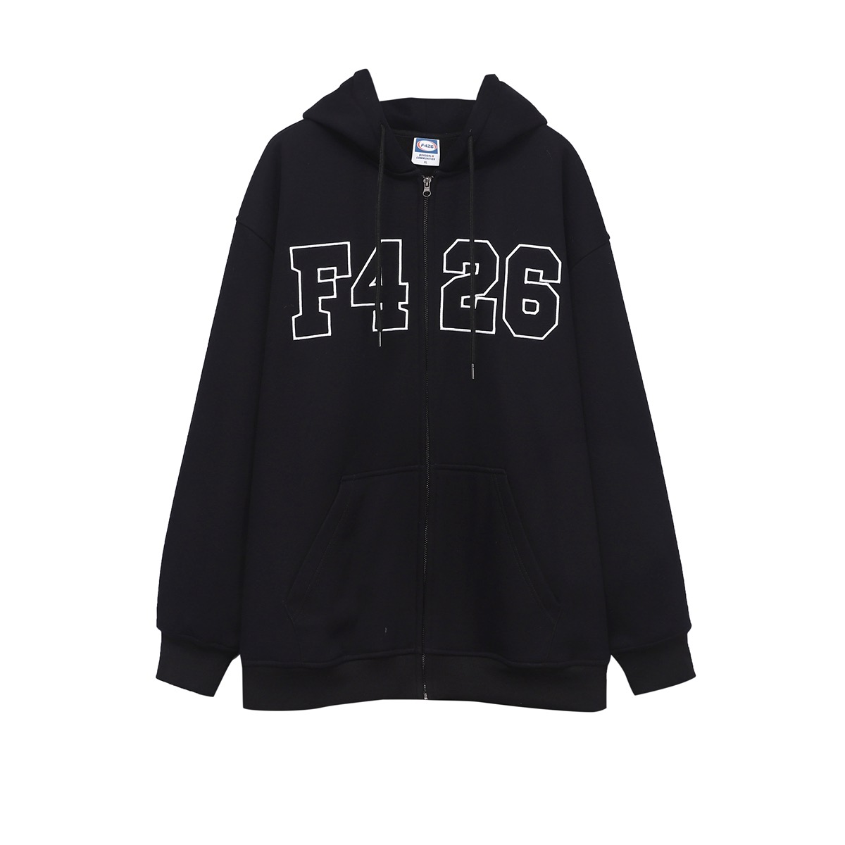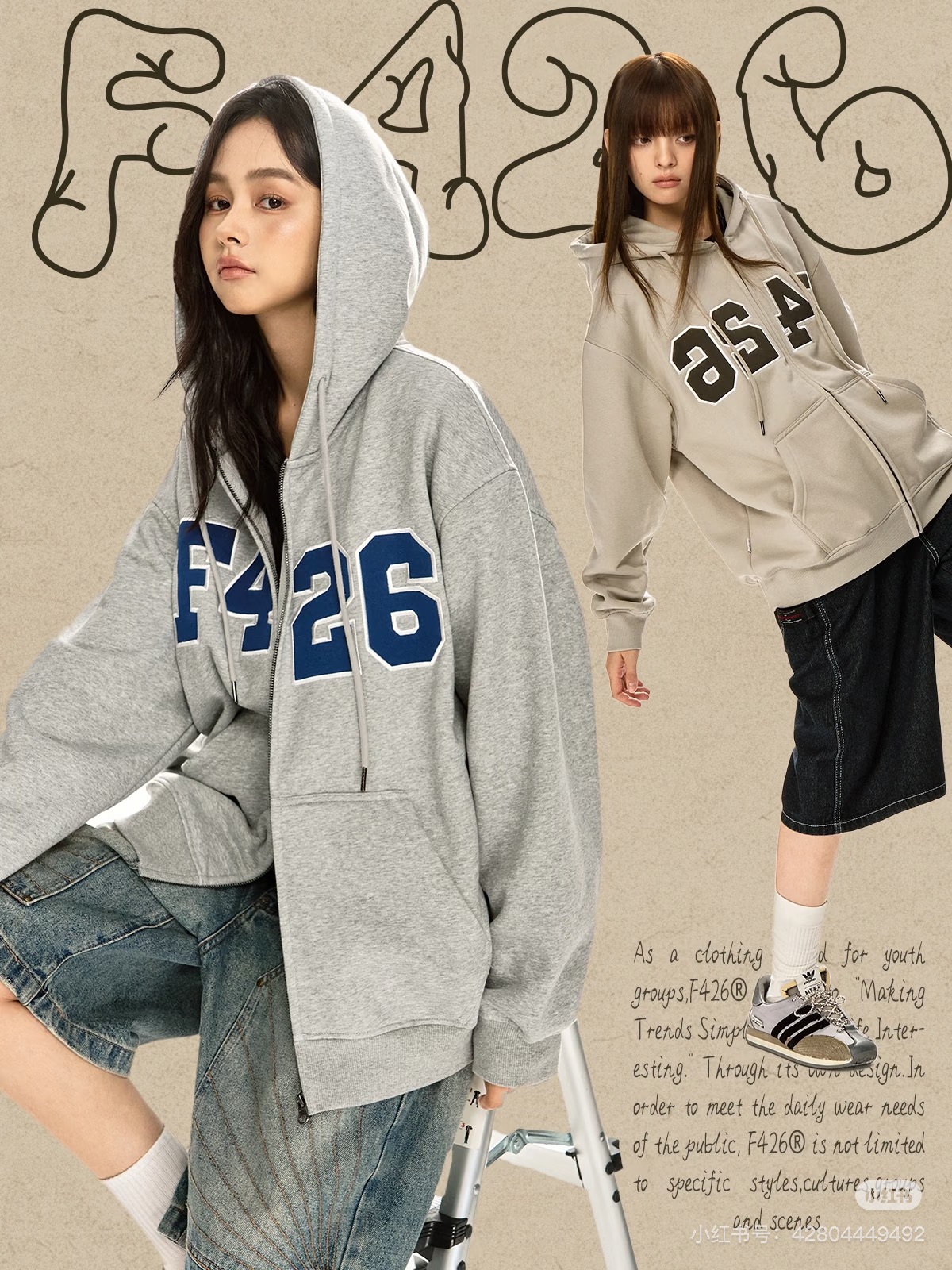 F426* 纯元,胸前经典徽标字母logo贴布刺绣,男女同款,内里摇粒绒 宽松 保暖 抓绒 拉链帽衫 厚外套~