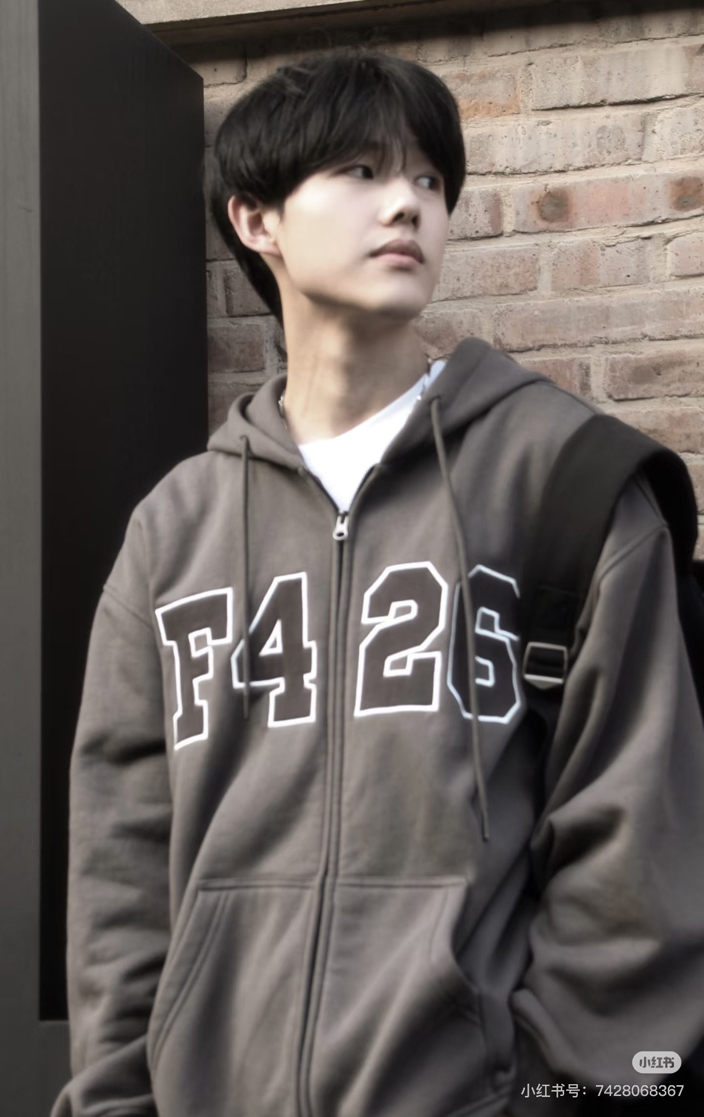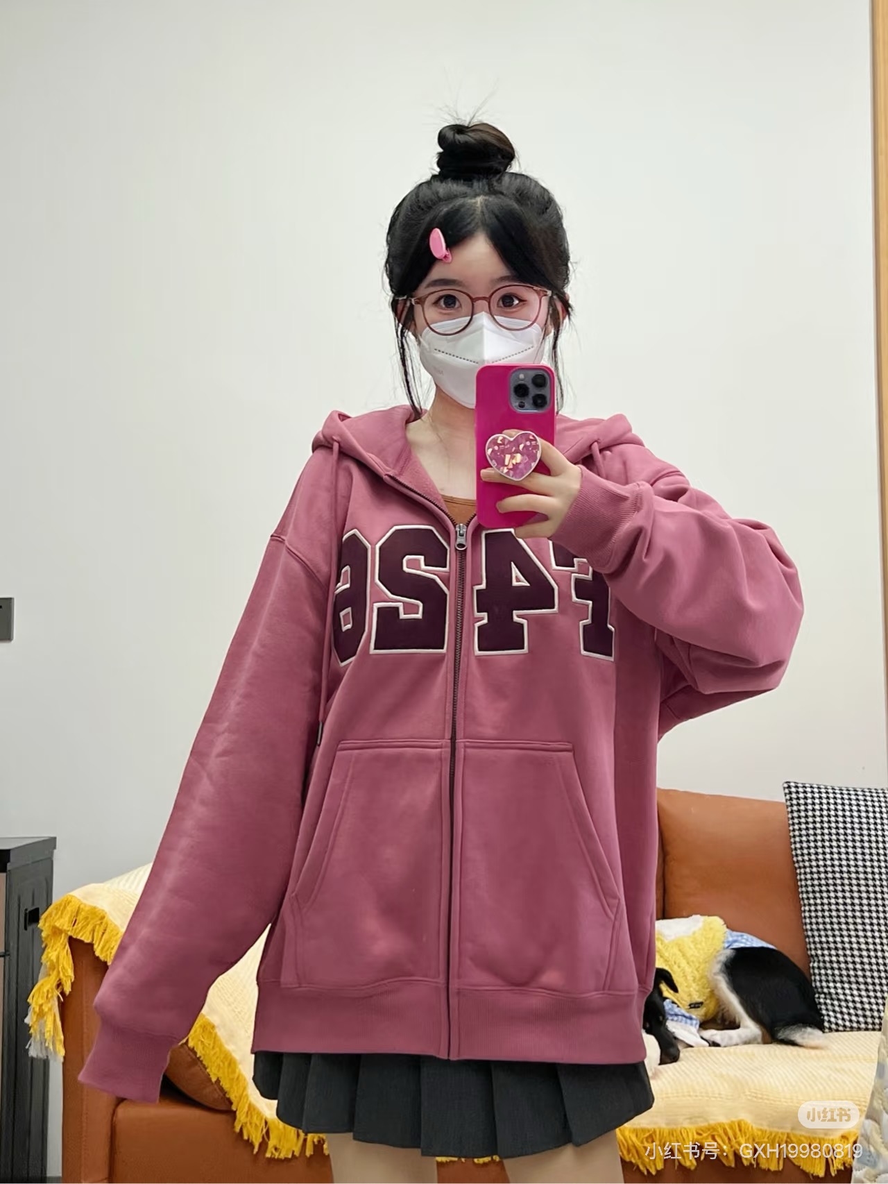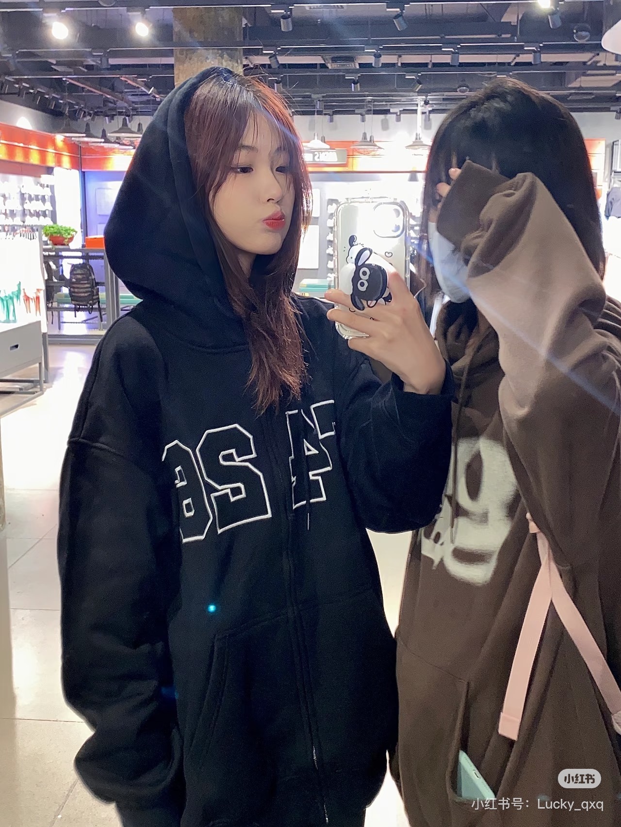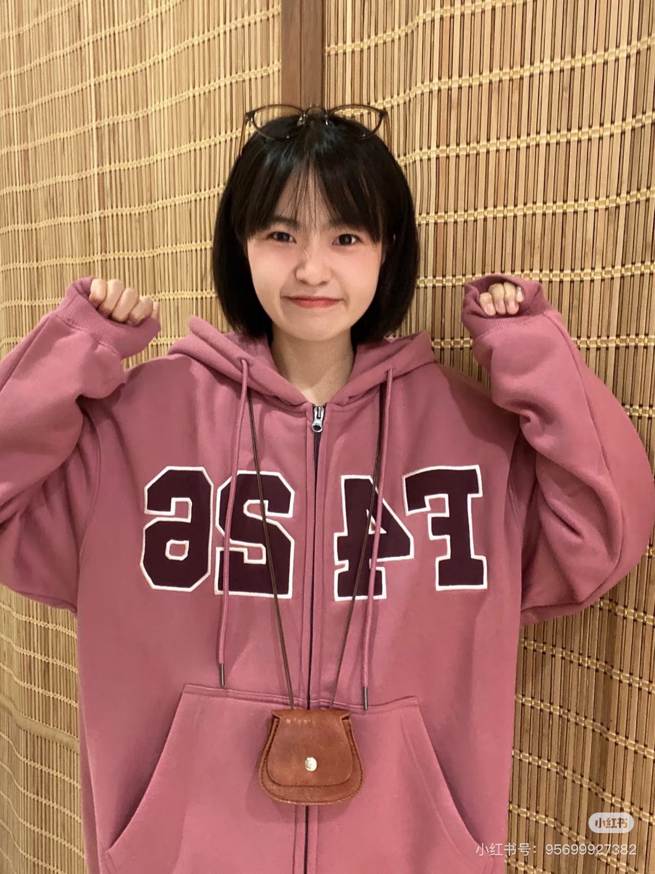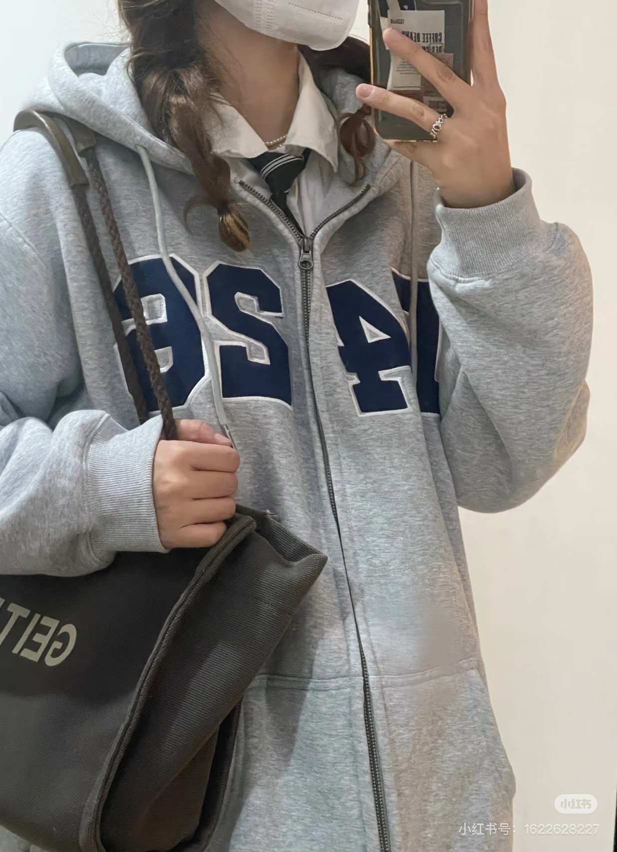 F426* 纯元,胸前经典徽标字母logo贴布刺绣,男女同款,内里摇粒绒 宽松 保暖 抓绒 拉链帽衫 厚外套~
