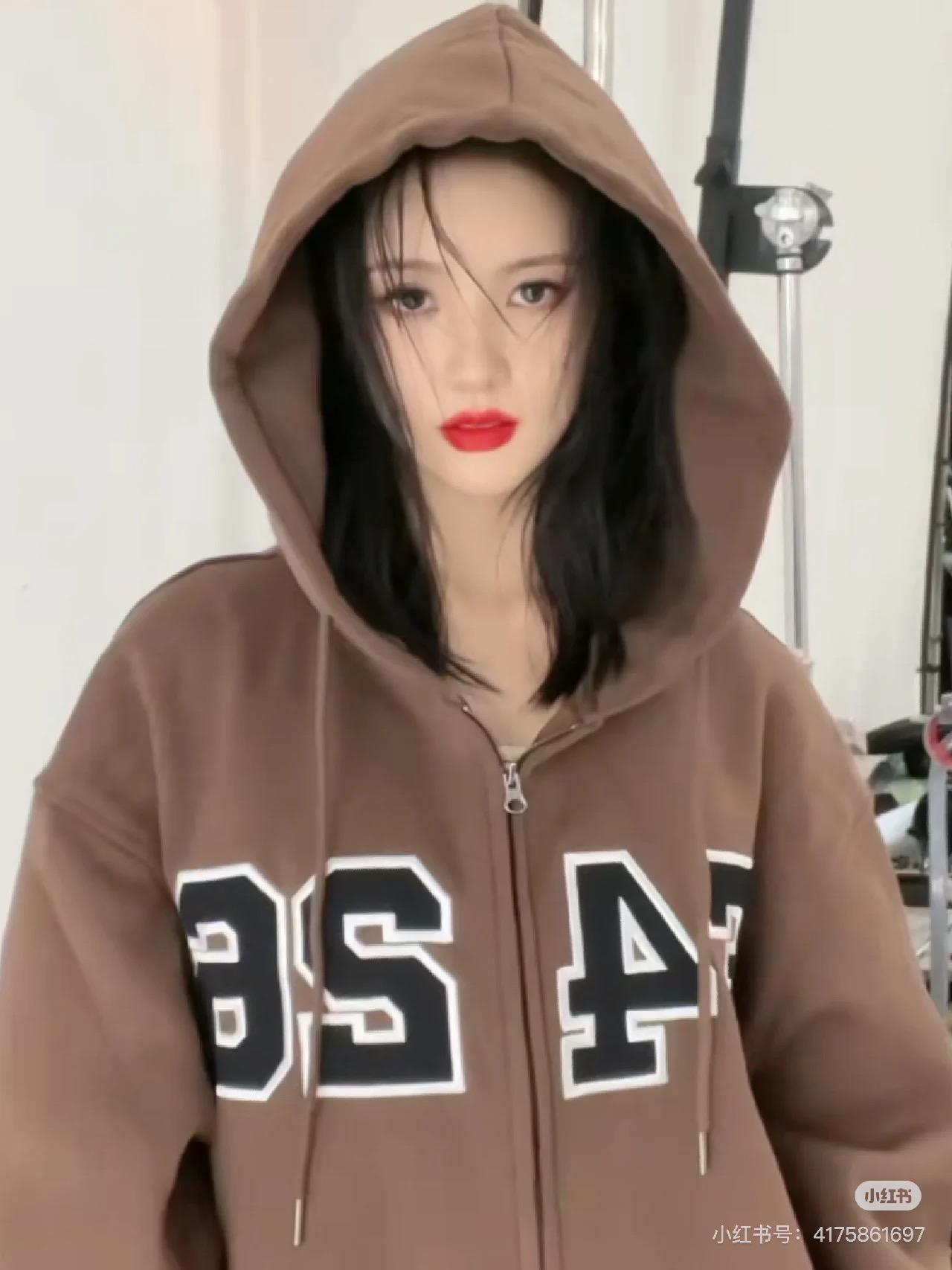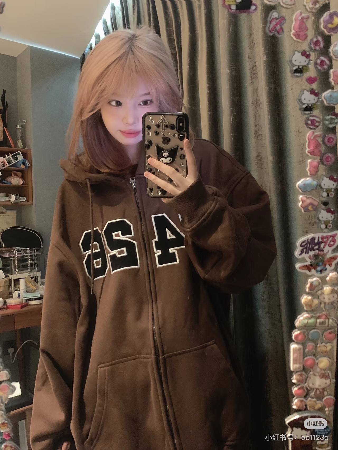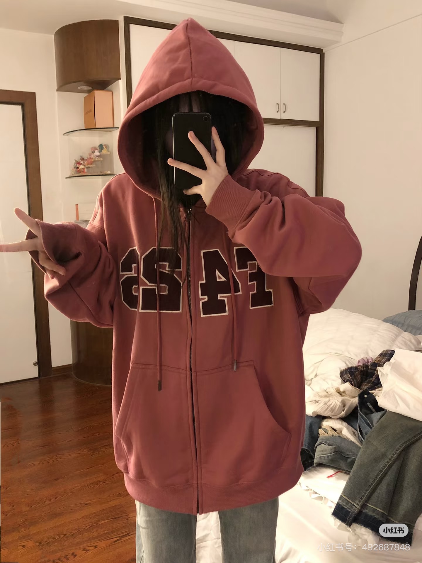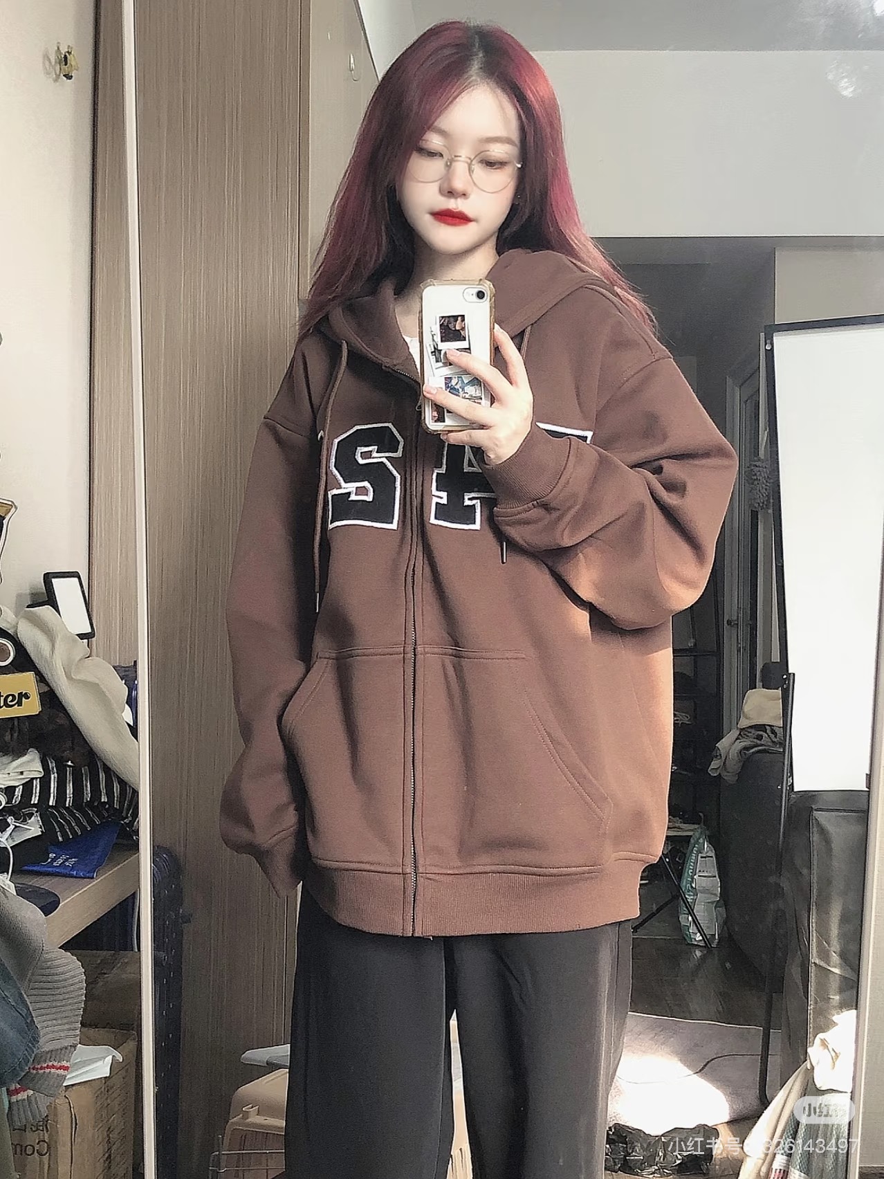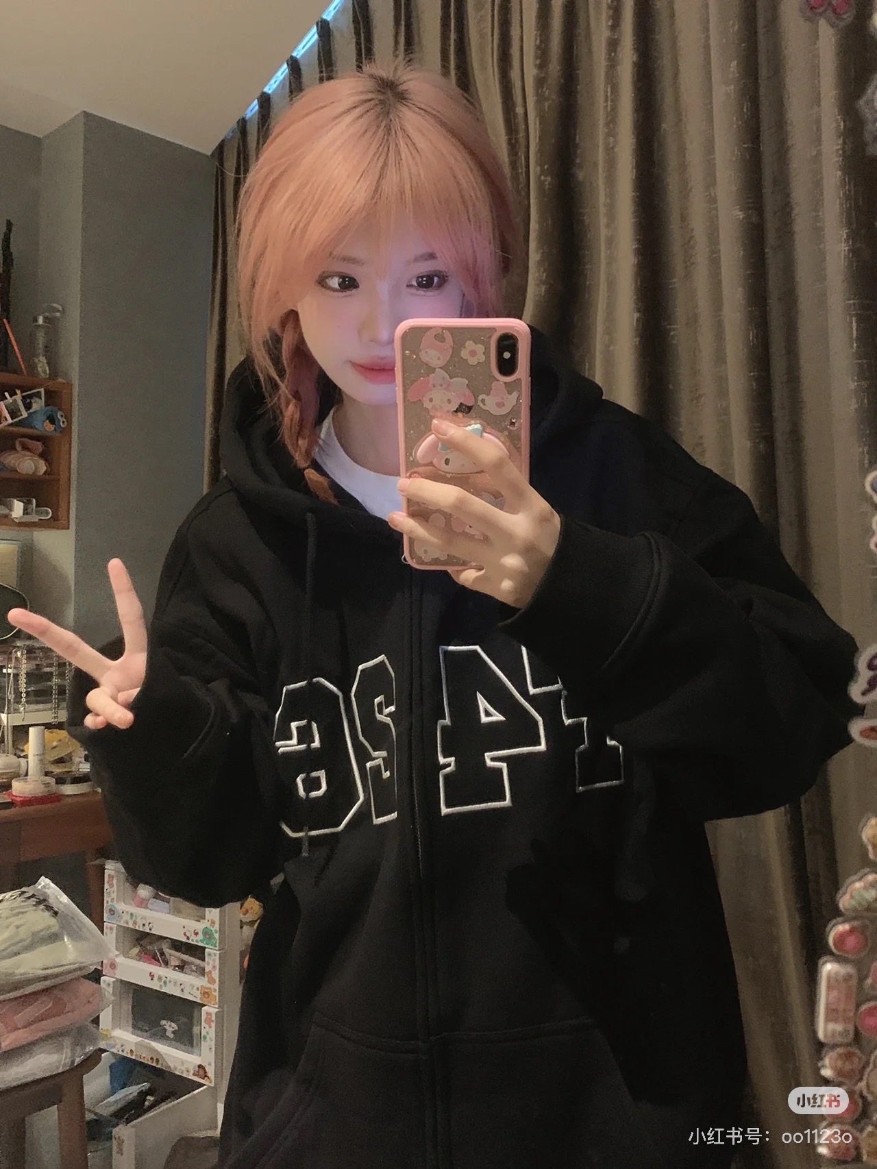 F426* 纯元,胸前经典徽标字母logo贴布刺绣,男女同款,内里摇粒绒 宽松 保暖 抓绒 拉链帽衫 厚外套~