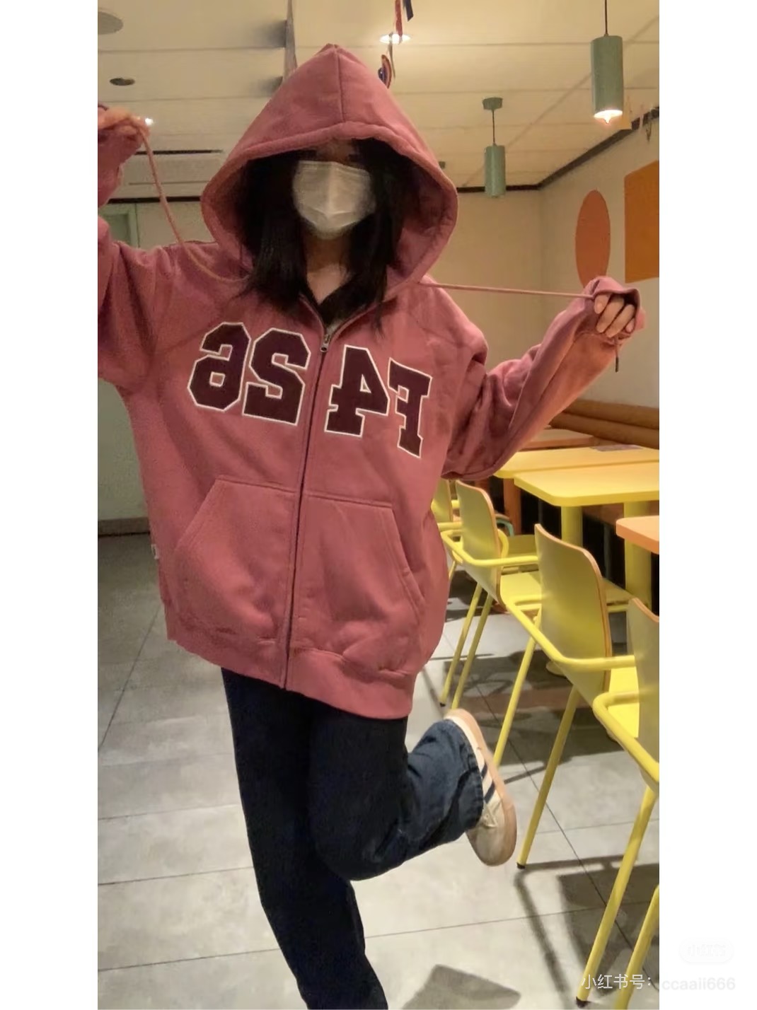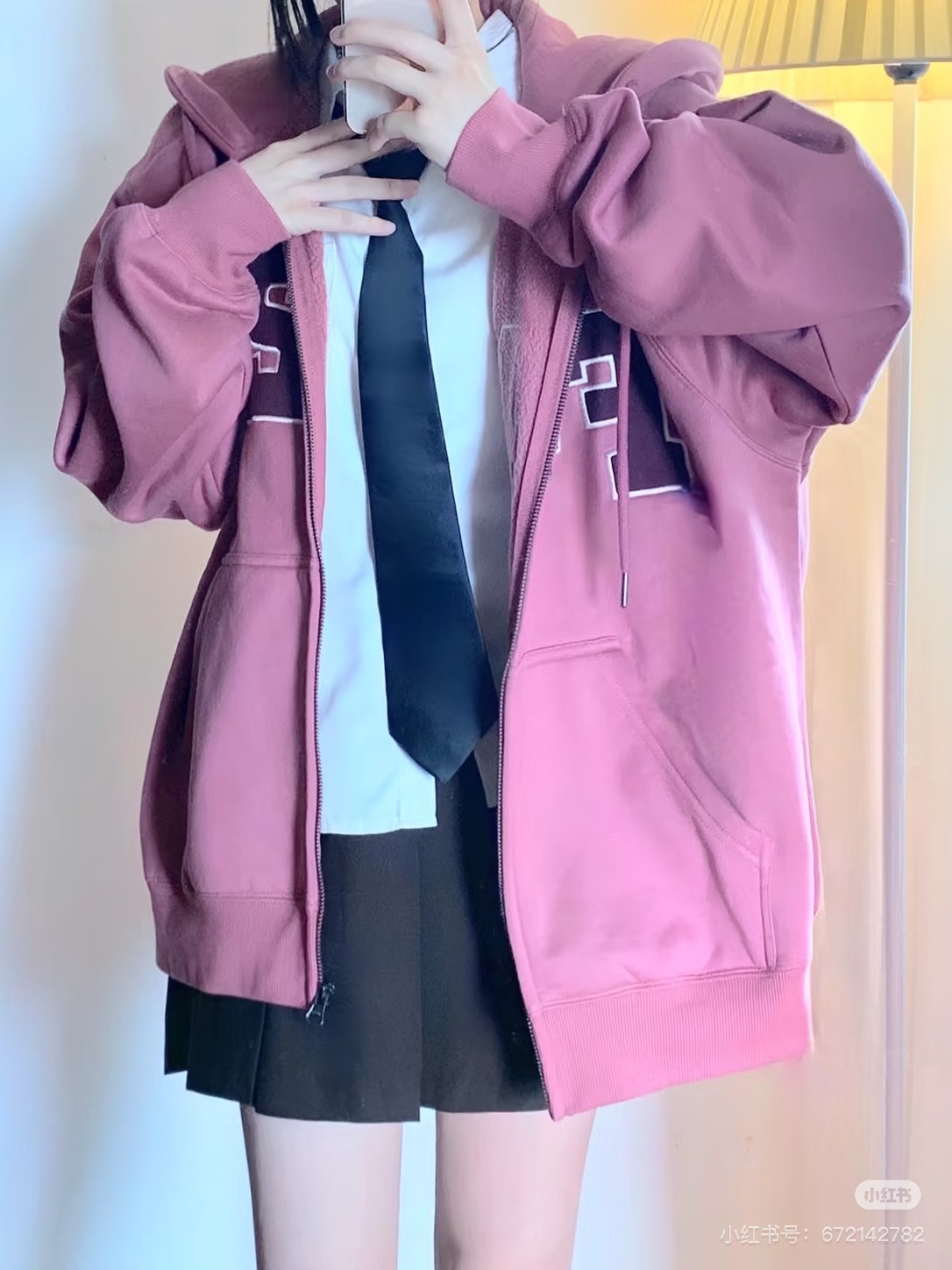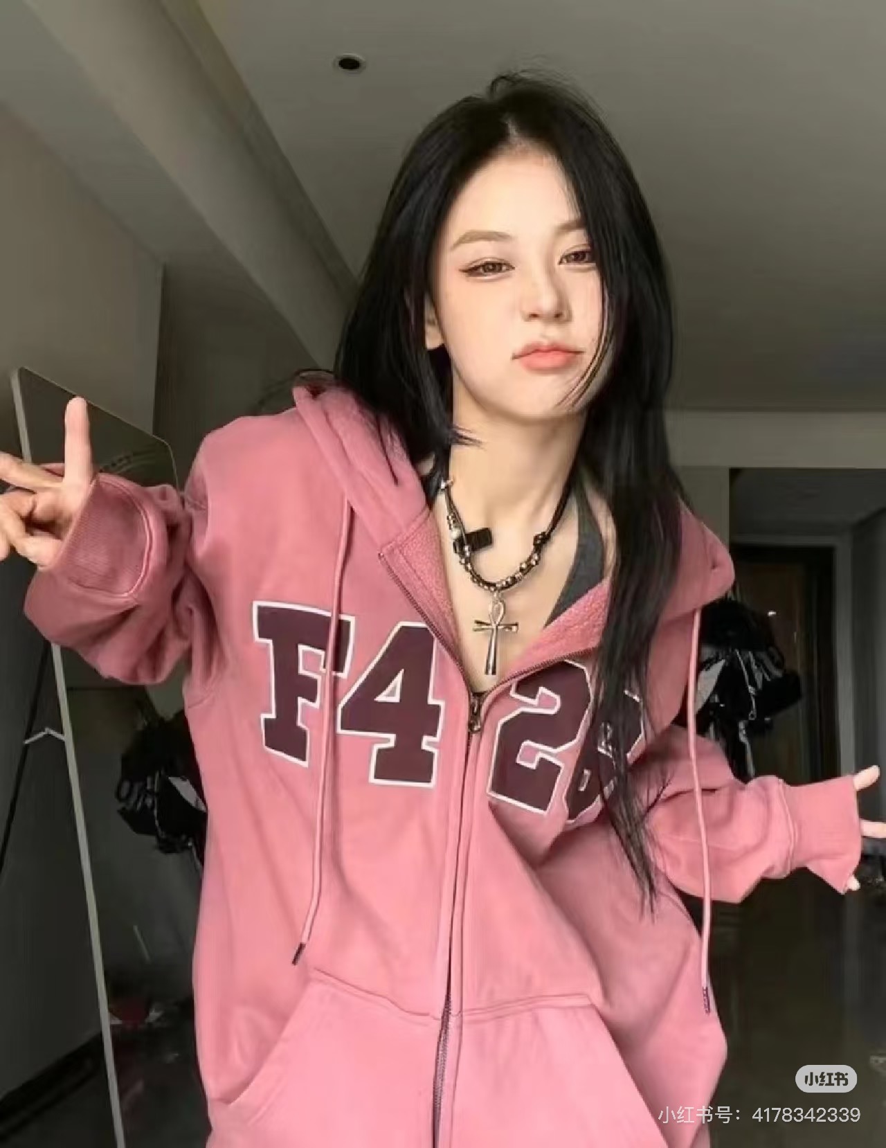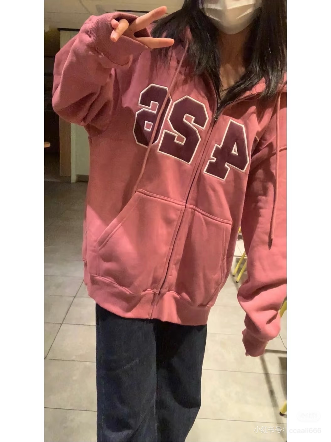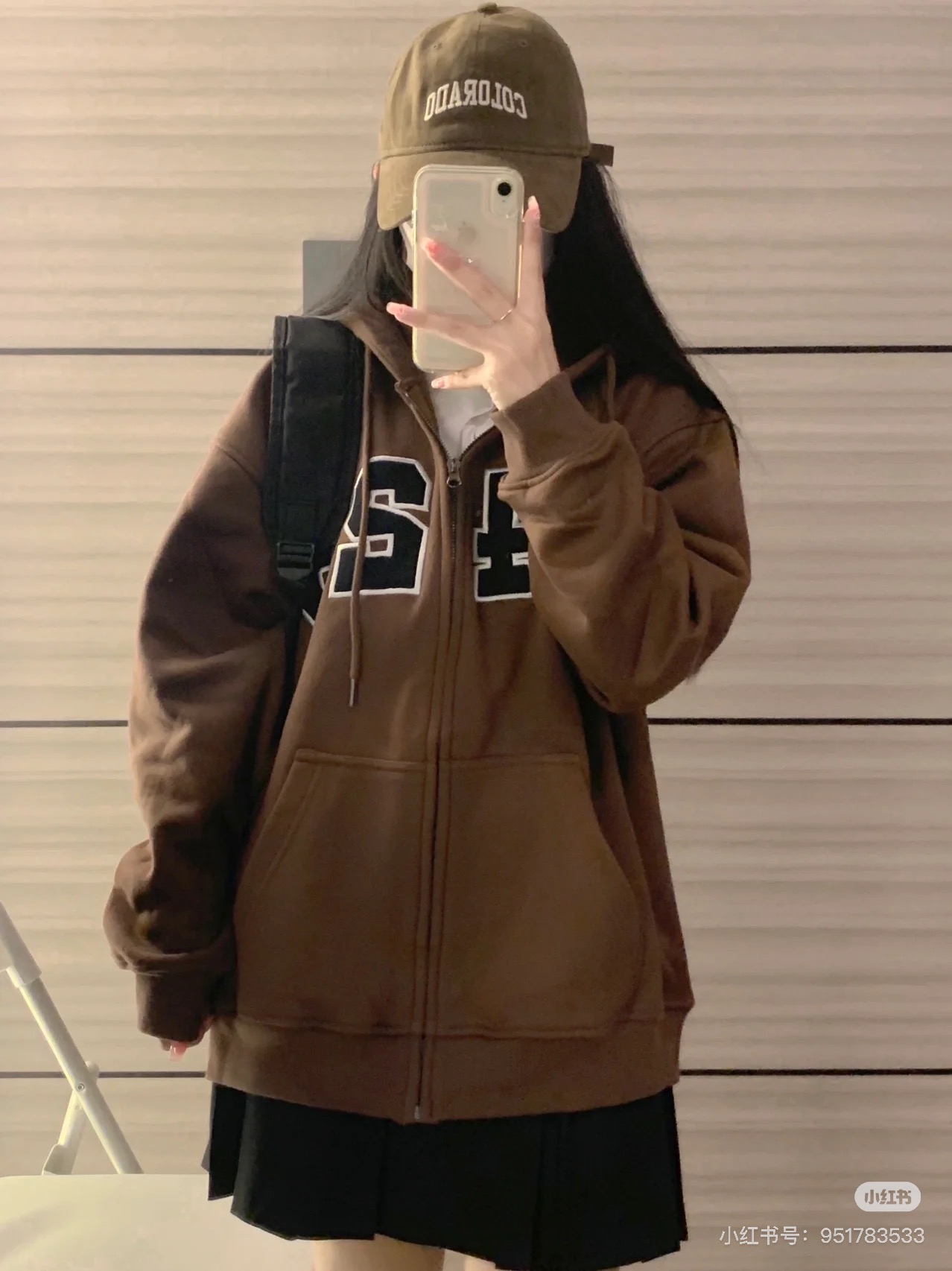 F426* 纯元,胸前经典徽标字母logo贴布刺绣,男女同款,内里摇粒绒 宽松 保暖 抓绒 拉链帽衫 厚外套~
