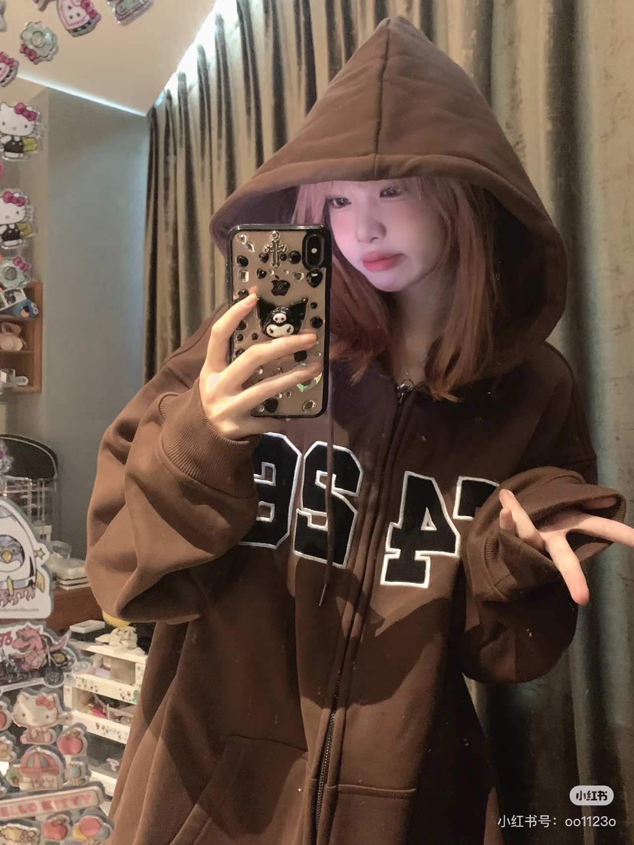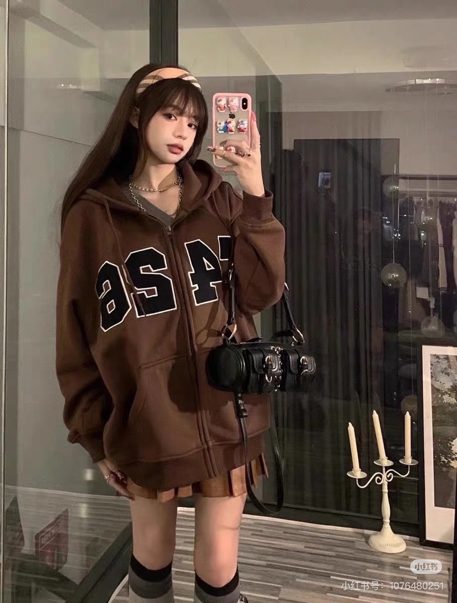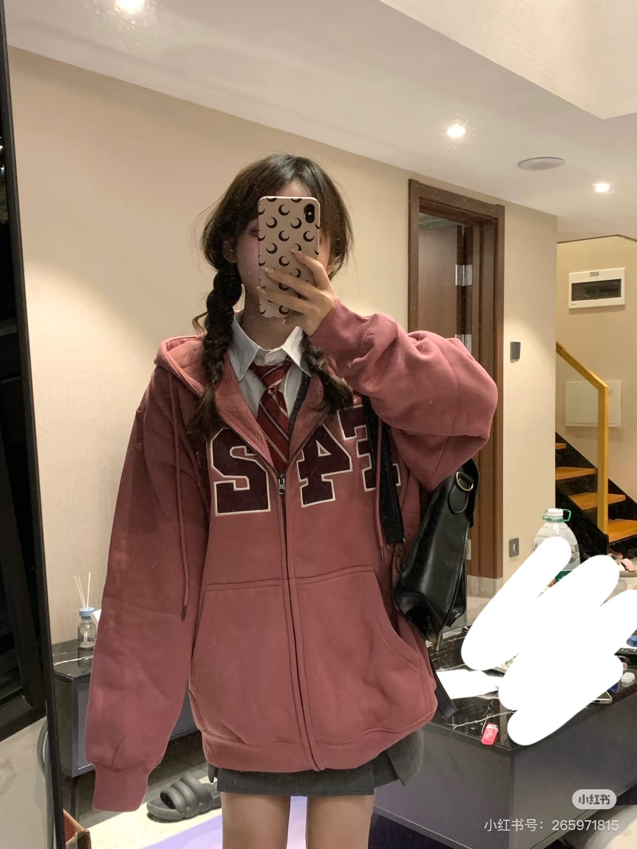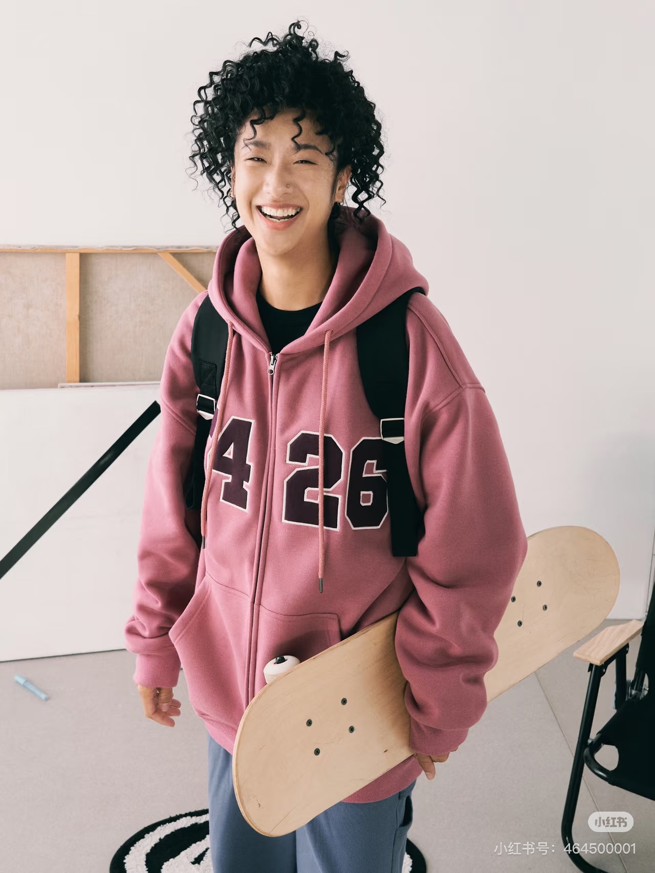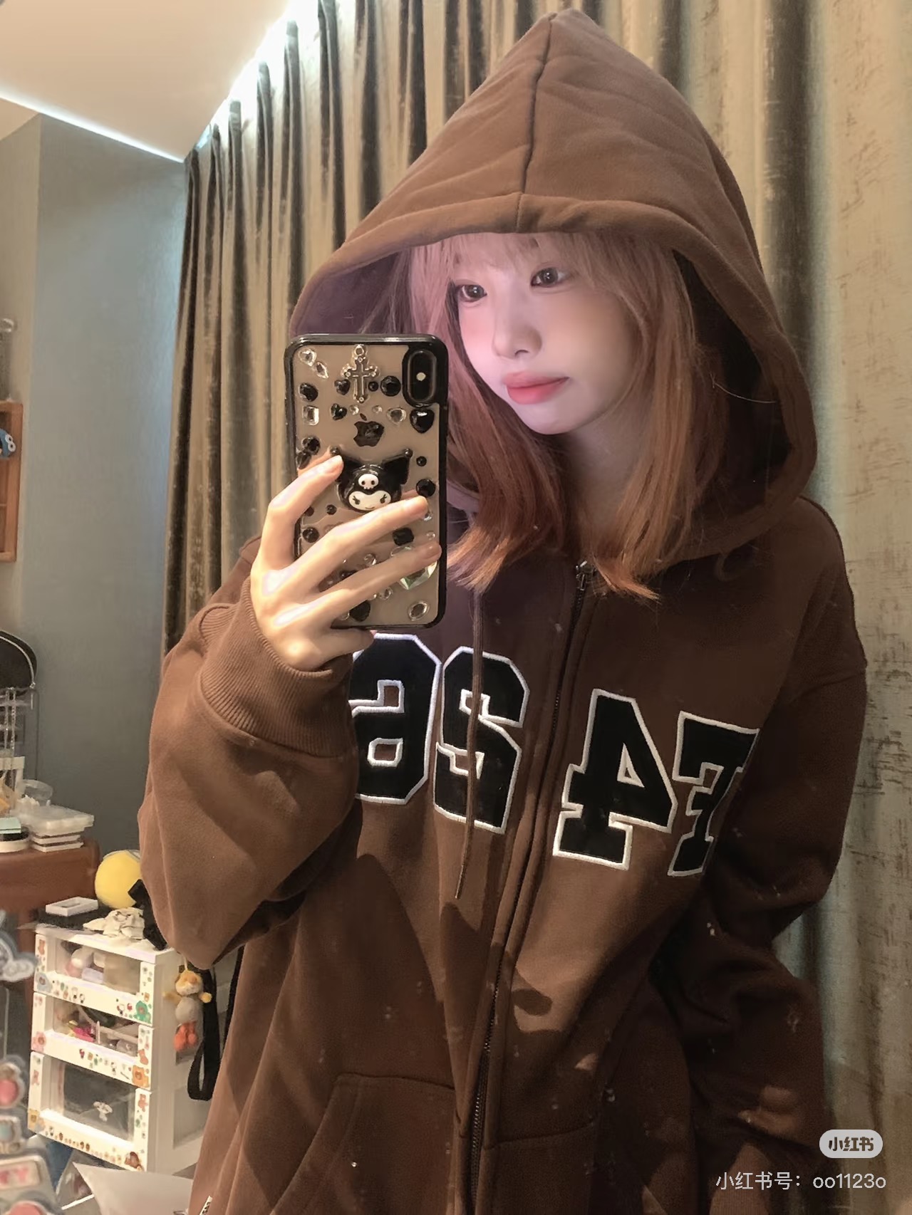 F426* 纯元,胸前经典徽标字母logo贴布刺绣,男女同款,内里摇粒绒 宽松 保暖 抓绒 拉链帽衫 厚外套~