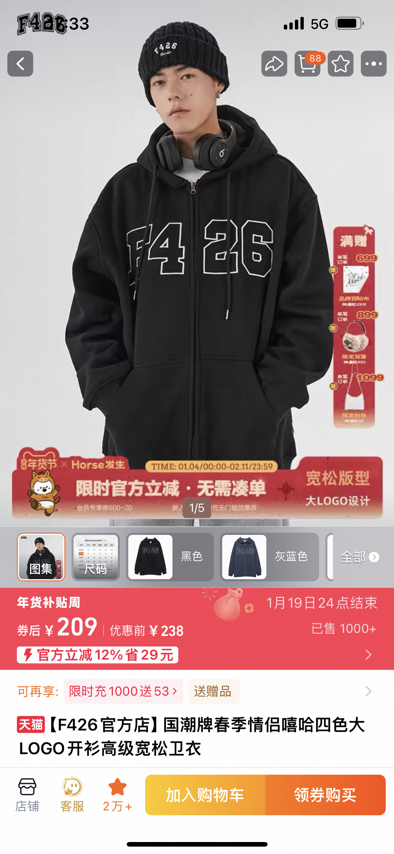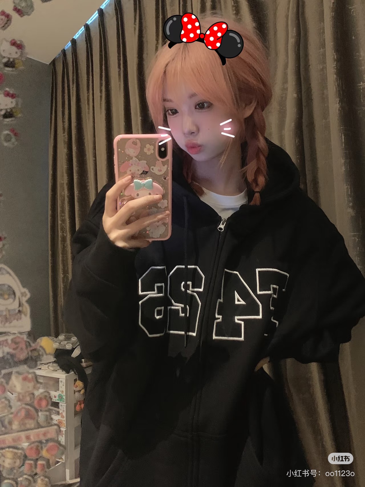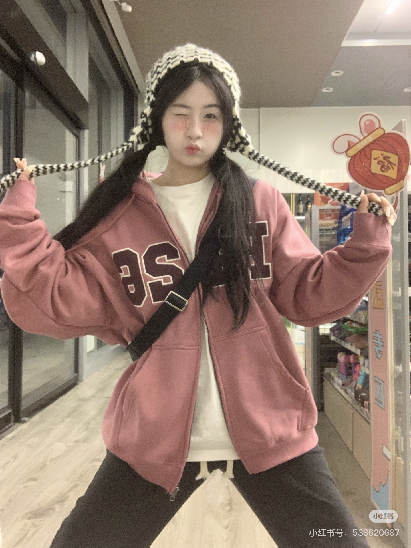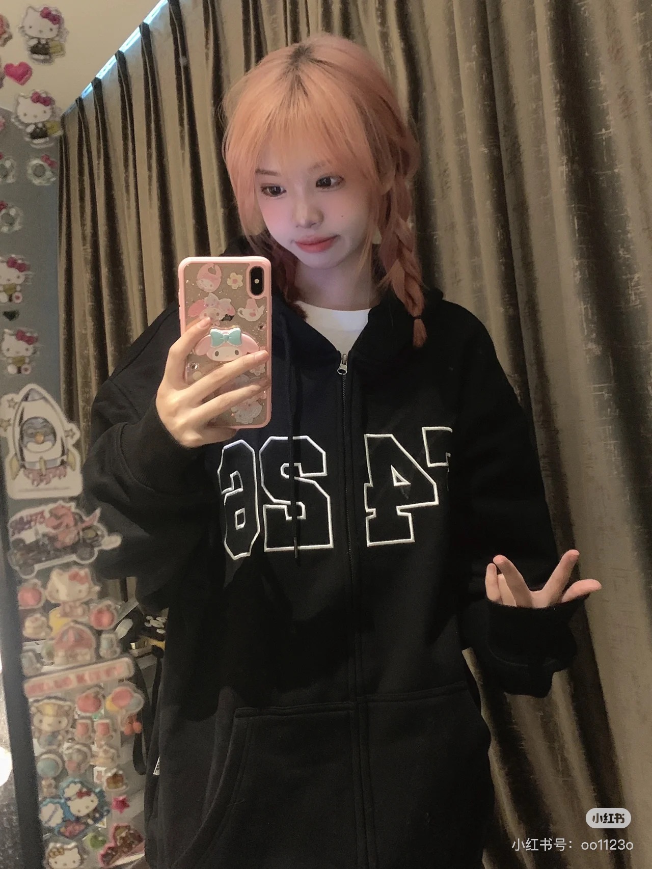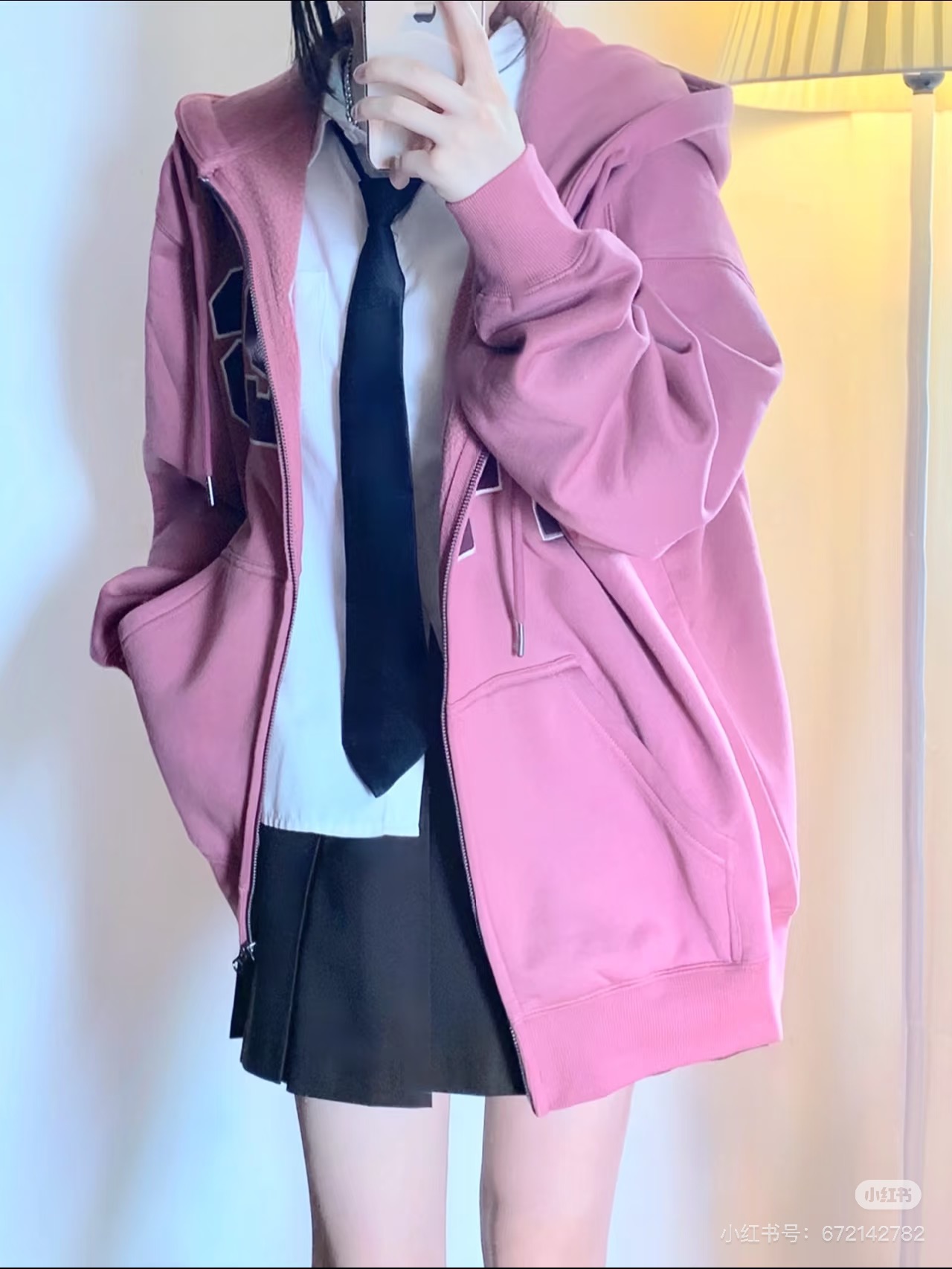F426* 纯元,胸前经典徽标字母logo贴布刺绣,男女同款,内里摇粒绒 宽松 保暖 抓绒 拉链帽衫 厚外套~