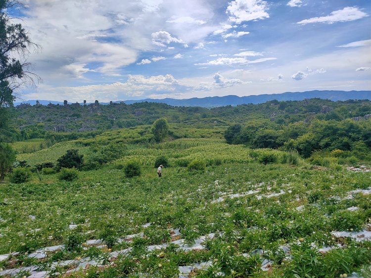 石林的土壤很特殊,主要是砂岩、页岩风化形成的骨质土和石灰岩发育成的红壤土,酸碱性适中,土质疏松,透气性好,适宜石林人参果的种植。