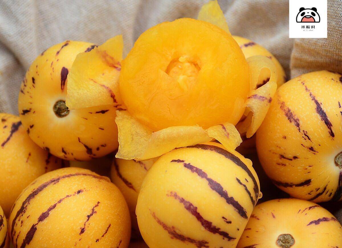人参果果型圆润,皮薄肉厚,用手可撕掉果皮,金黄的果肉看起来丰盈剔透,十分诱人,果肉可食用率达95%。