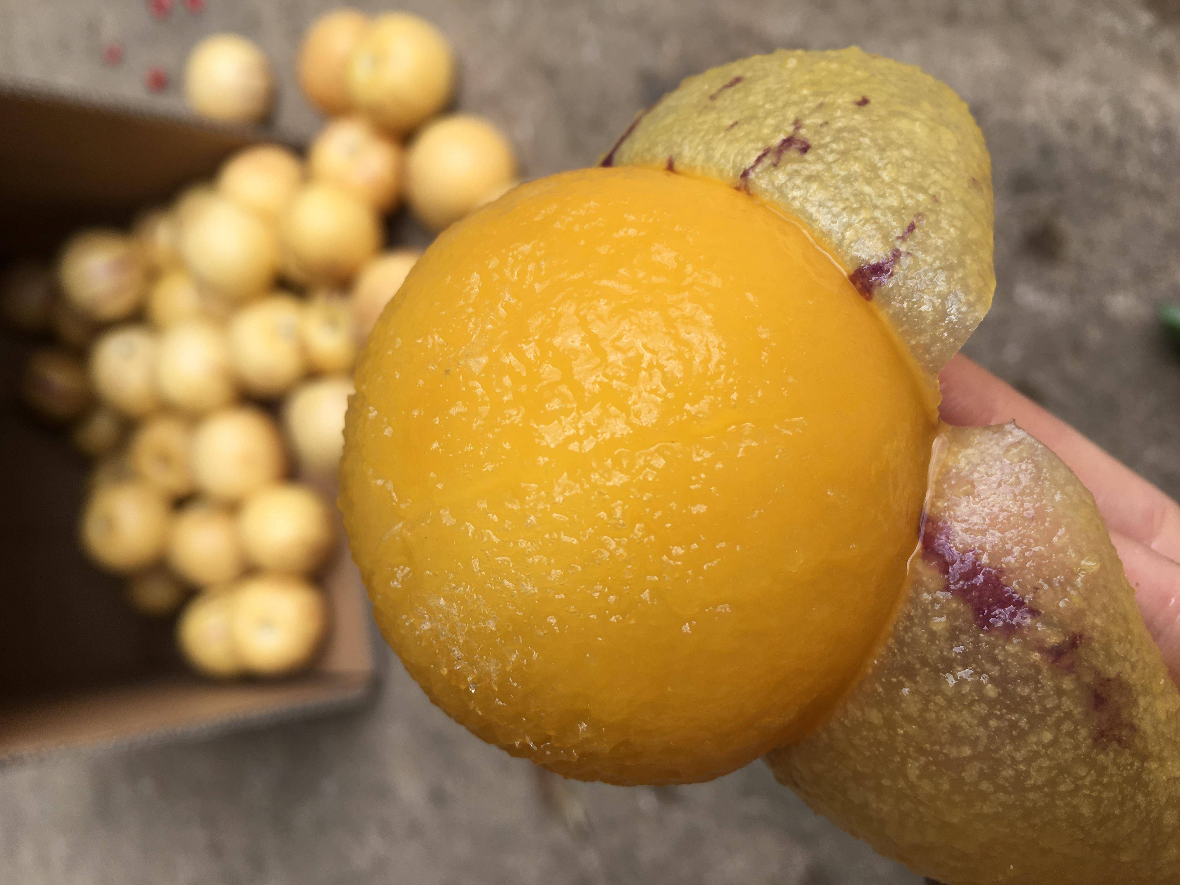 那有朋友还会问,果皮看着有点白,但咬开果肉又是黄的,这种是熟的?还是生的呢?其实只要果肉是黄的,这个果子就是熟了的~这种果皮还不是很黄但又是熟了的果子,可以先放几天再吃,风味会比立刻直接吃更好哦~