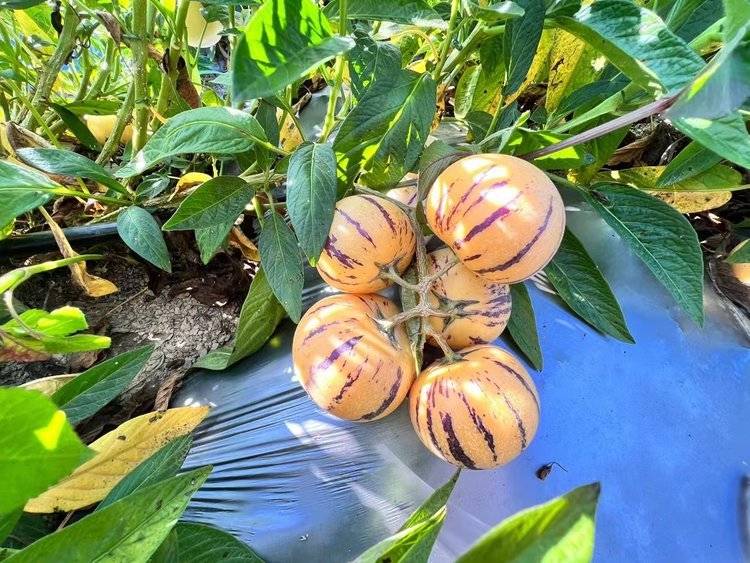 果型呈卵圆形或扁圆形;表皮光滑、呈淡黄有紫色条纹相间;成熟后的人参果果肉金黄;肉质细腻,口感清甜、多汁,风味独特。