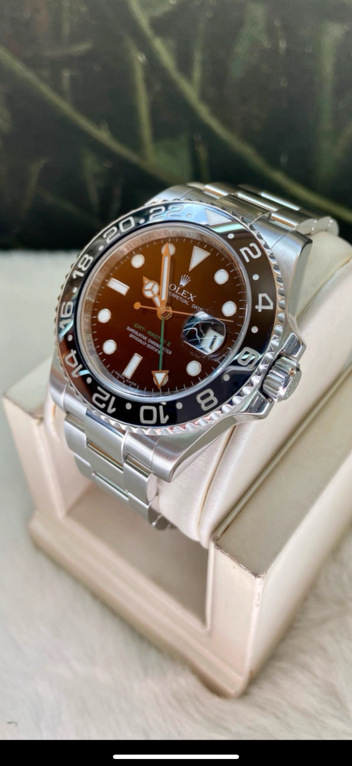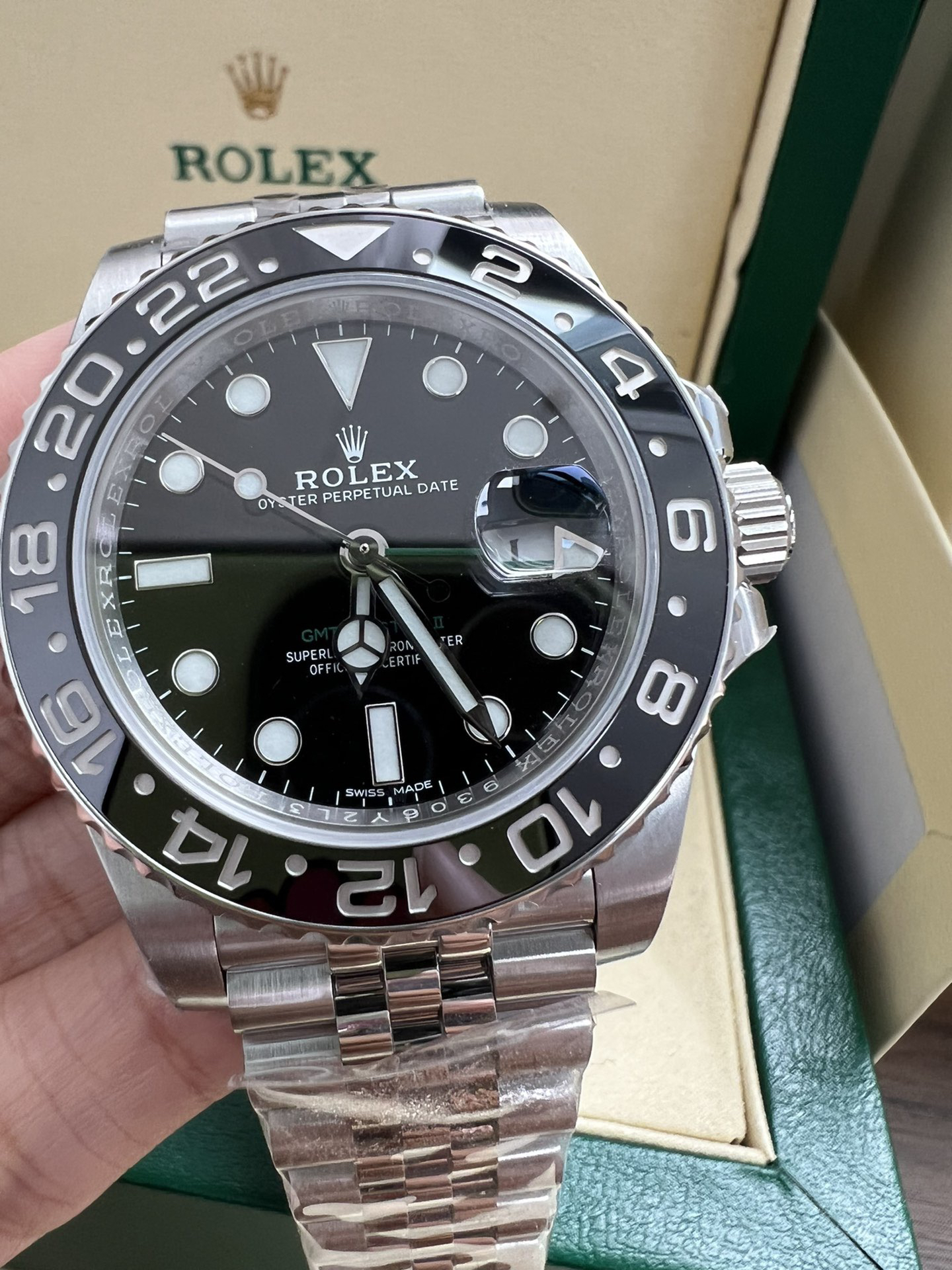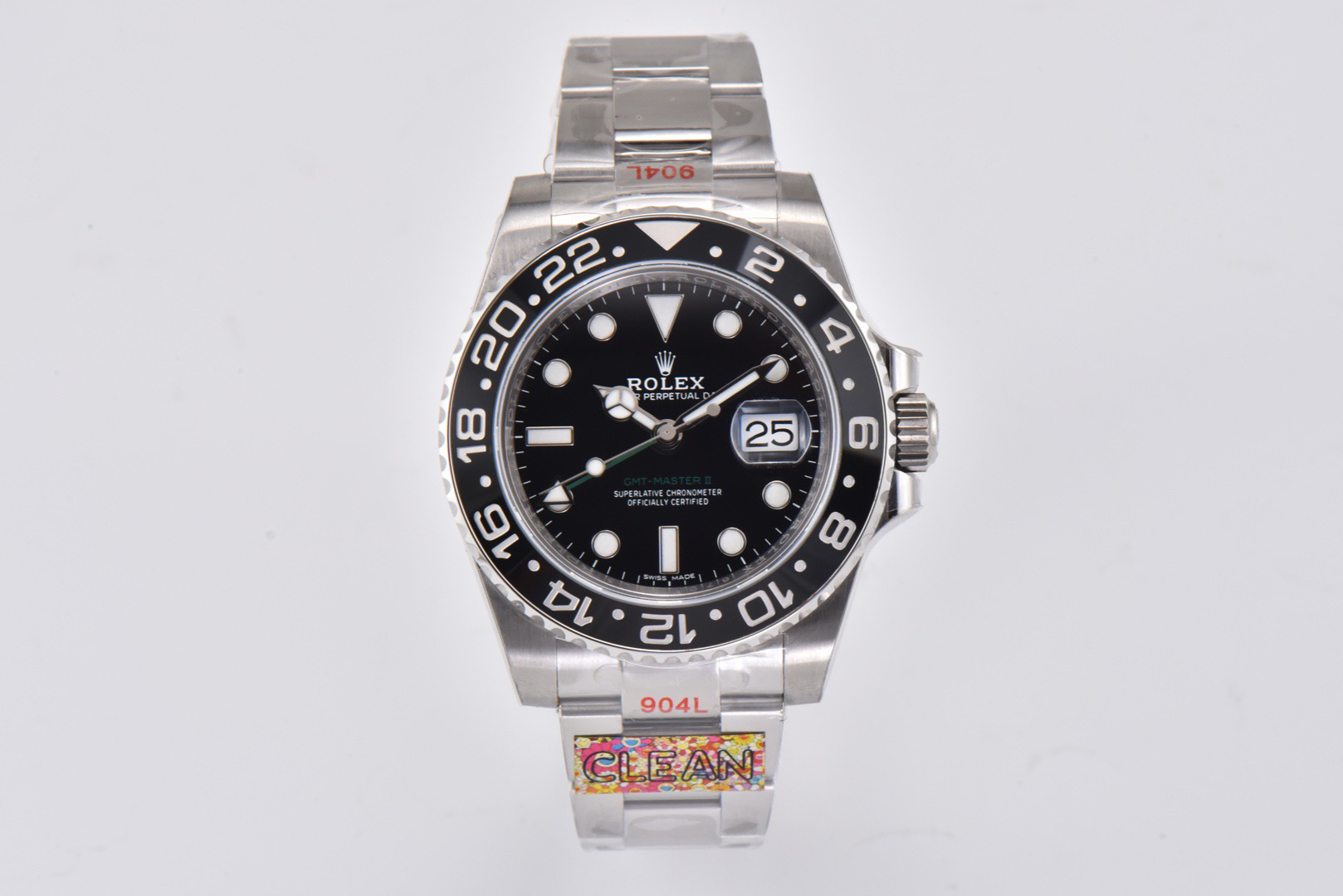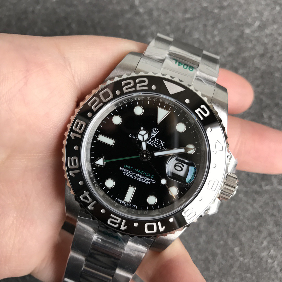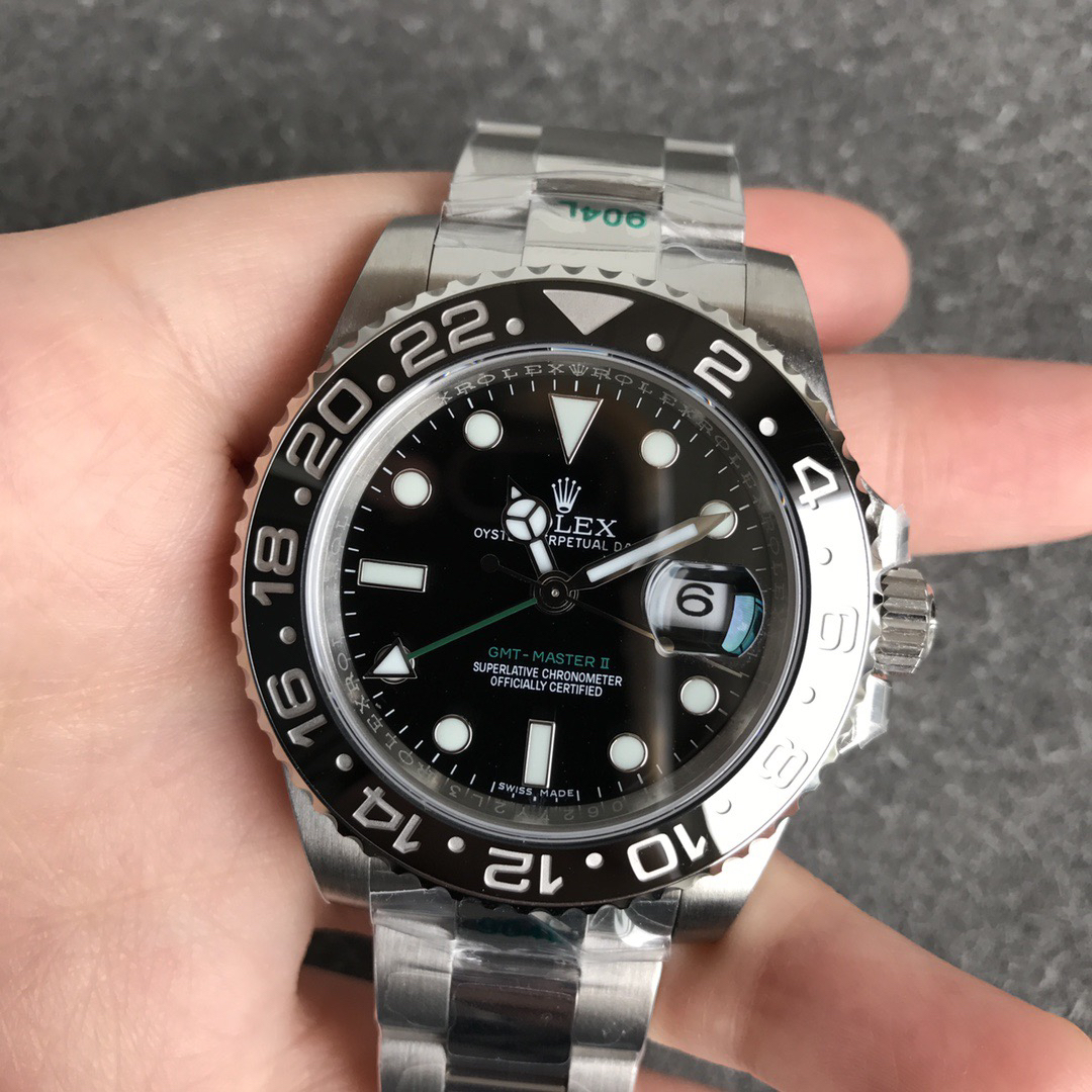 The appearance of the watch case is entirely made of 904L shell body, perfectly reproducing the entire shape of the GMT and correcting the feel of the GMT rotation. crown
