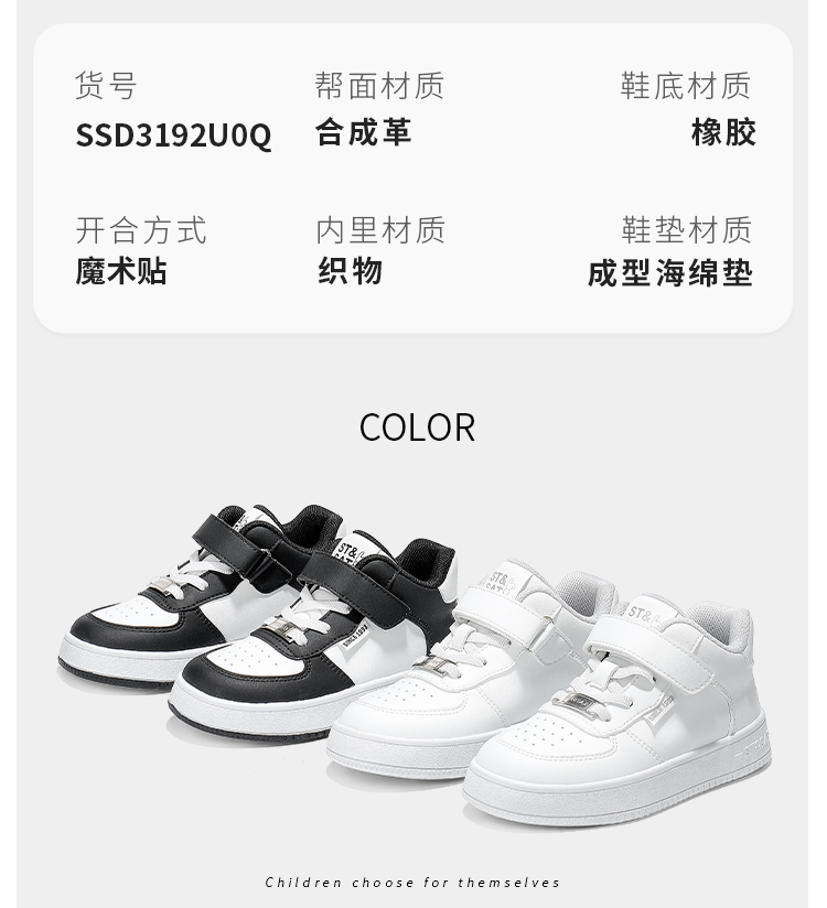 【童鞋】星期六校园休闲轻便免系带男女童板鞋SSD3192U0Q