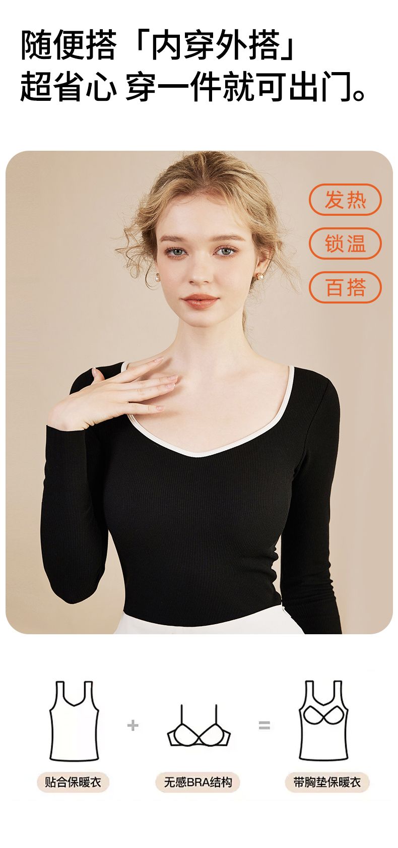 明晚 12 点下架【冬日小暖炉免穿文胸打底系列】德绒带bra保暖背心女小胸聚拢免穿文胸打底-FF