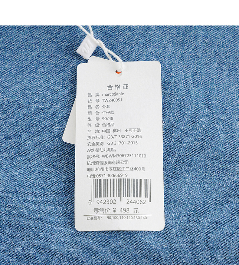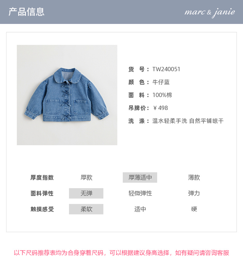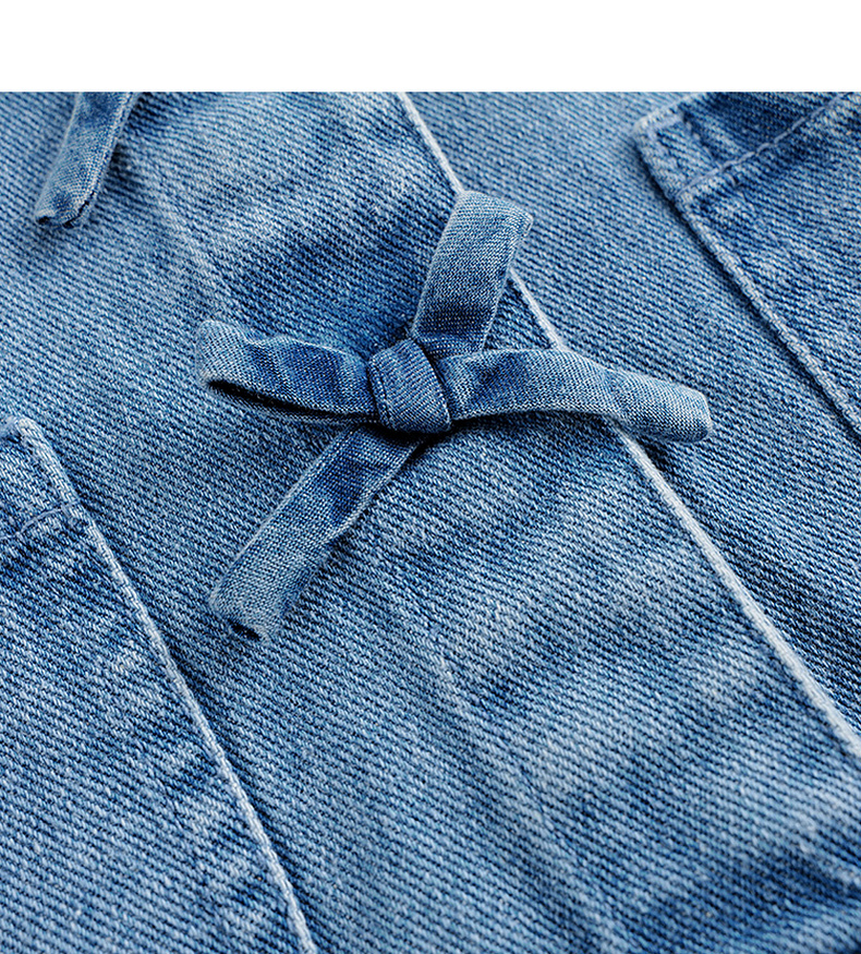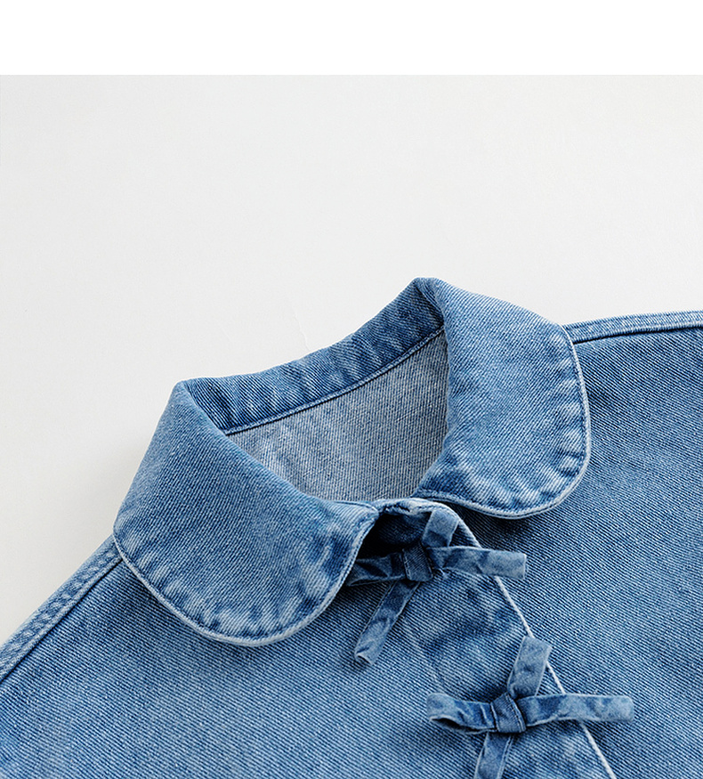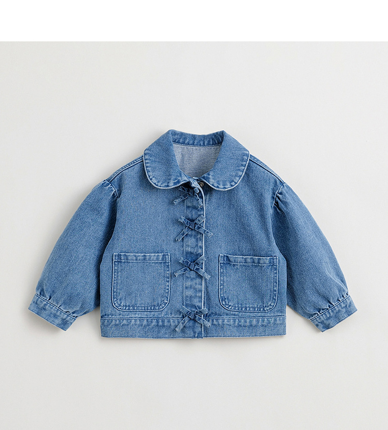 马克珍妮女童软牛仔外套 儿童纯棉蝴蝶结翻领上衣春装新款240051