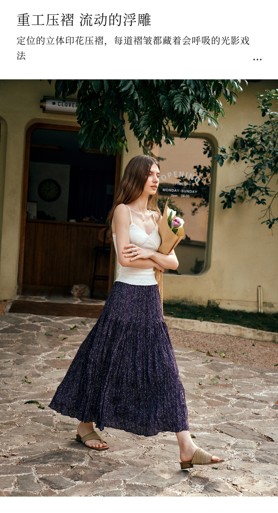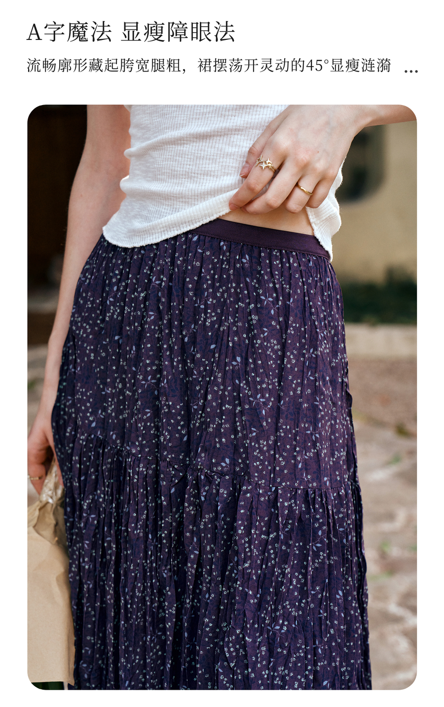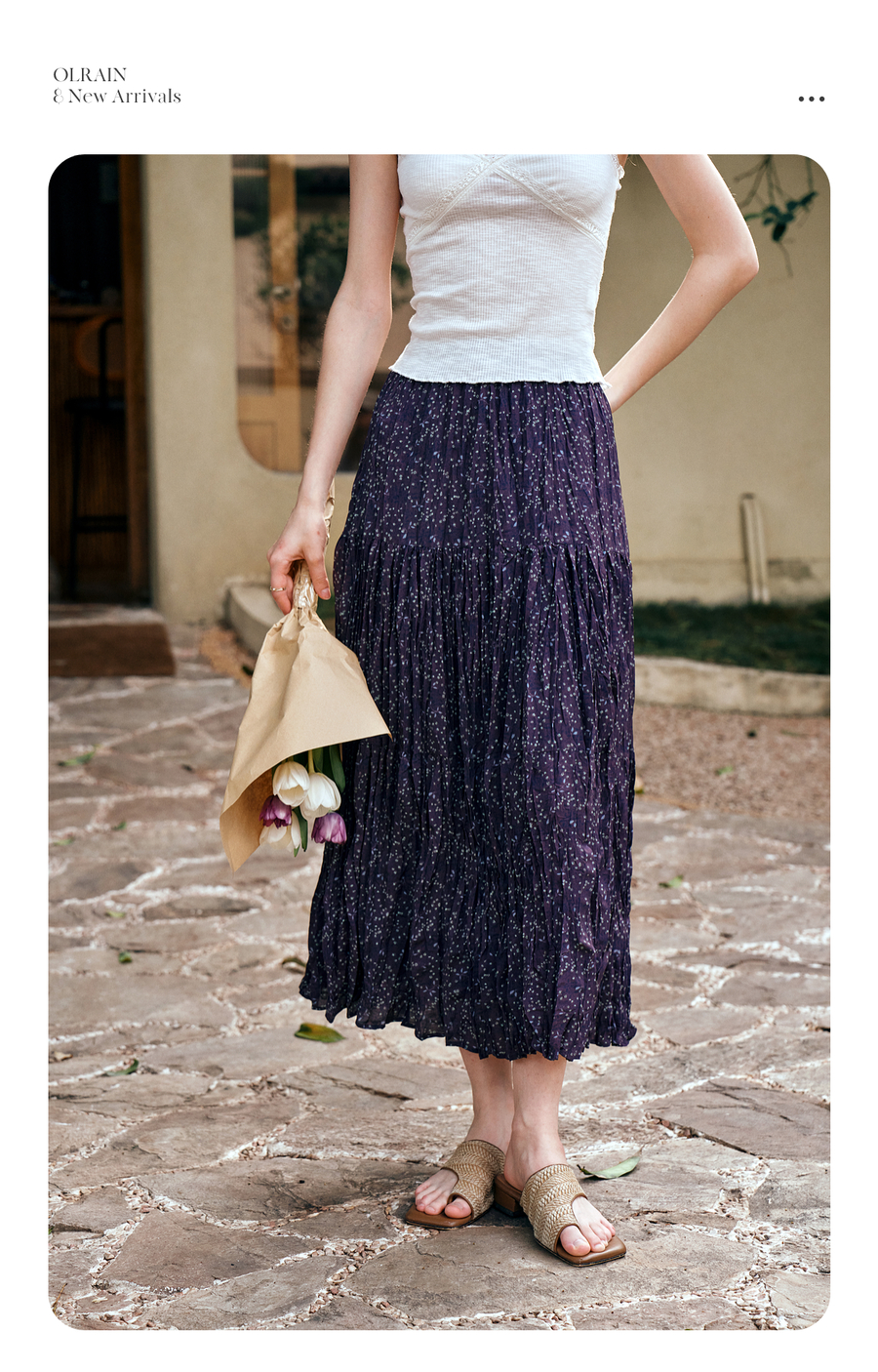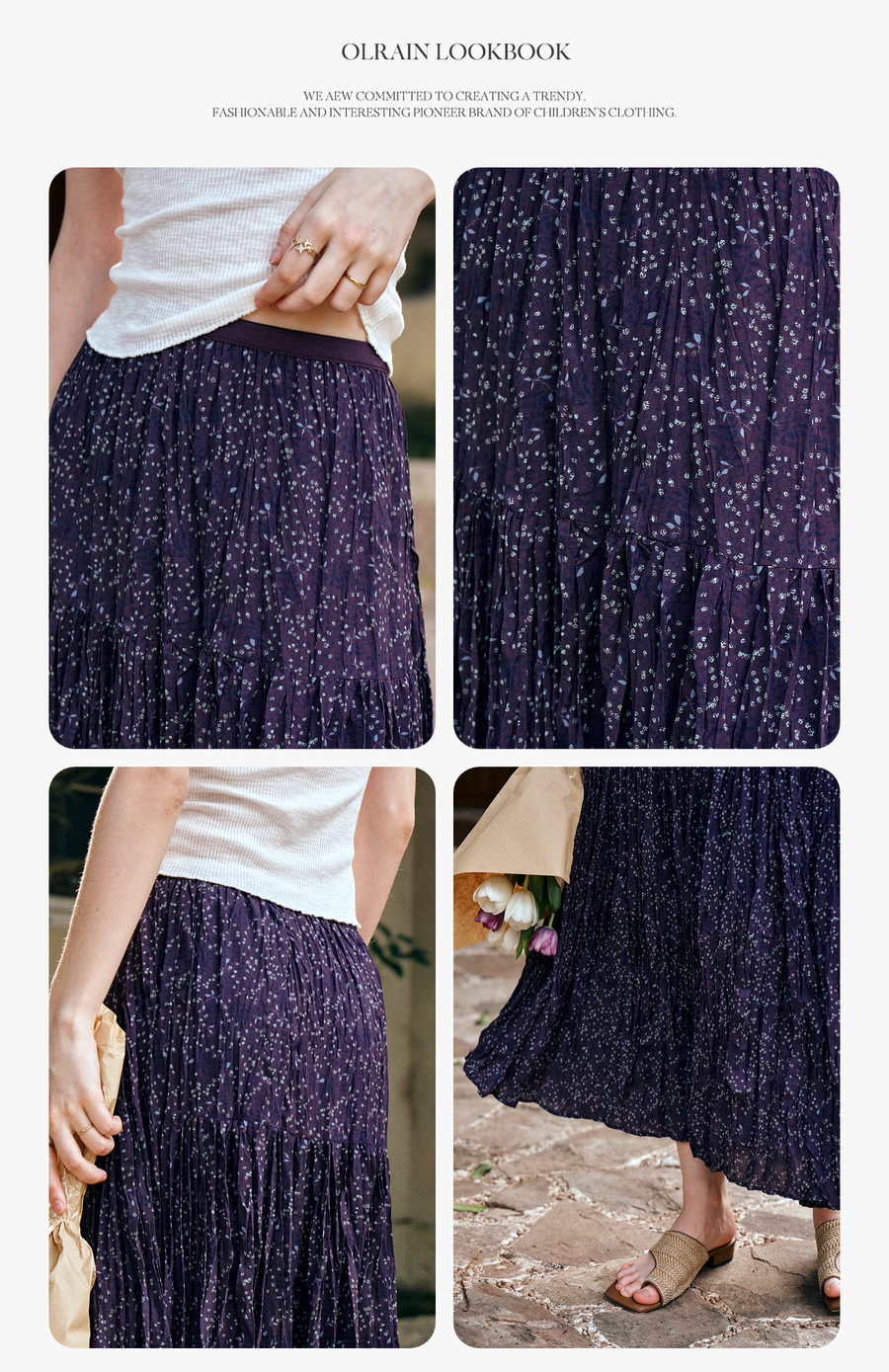 OLrain欧芮儿紫色印花度假半身裙女夏季2025年新款高腰显瘦A字裙