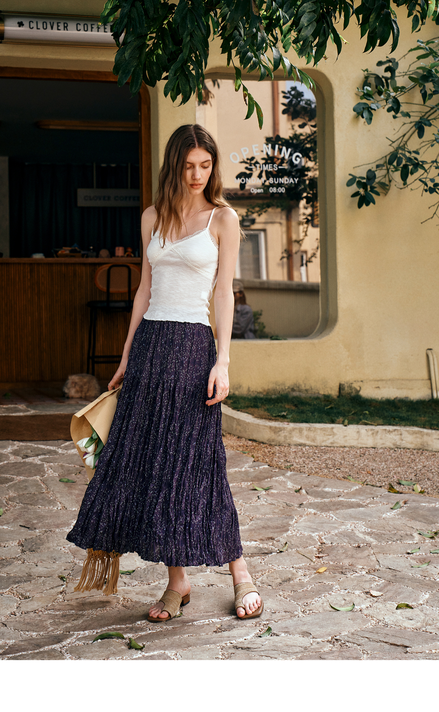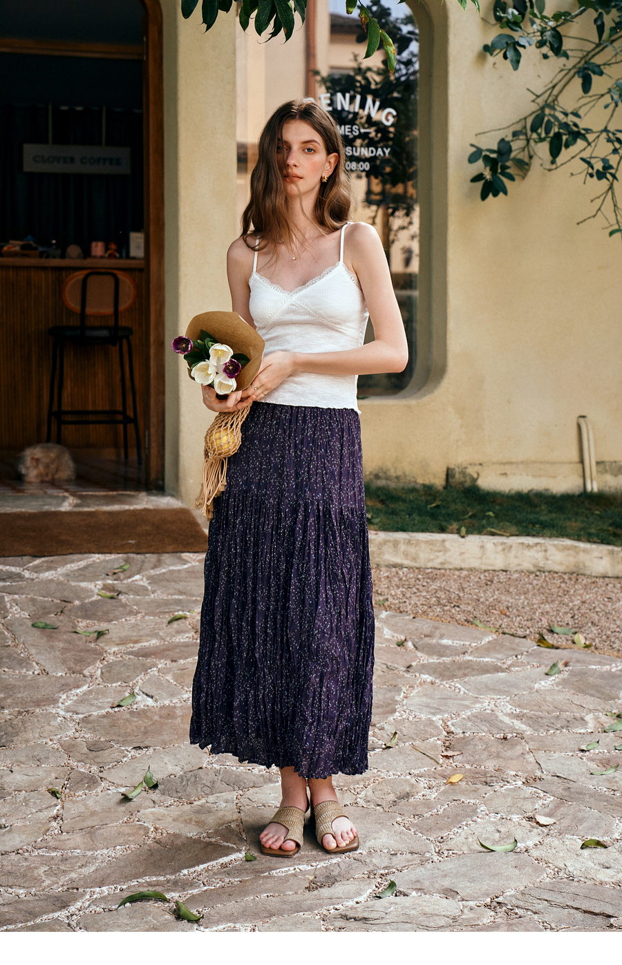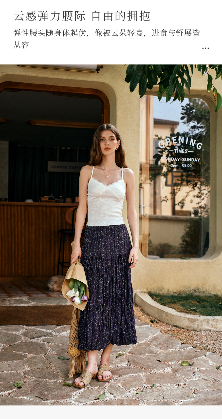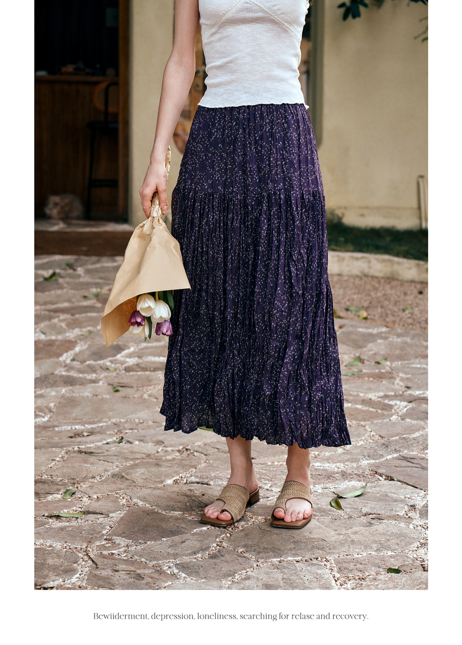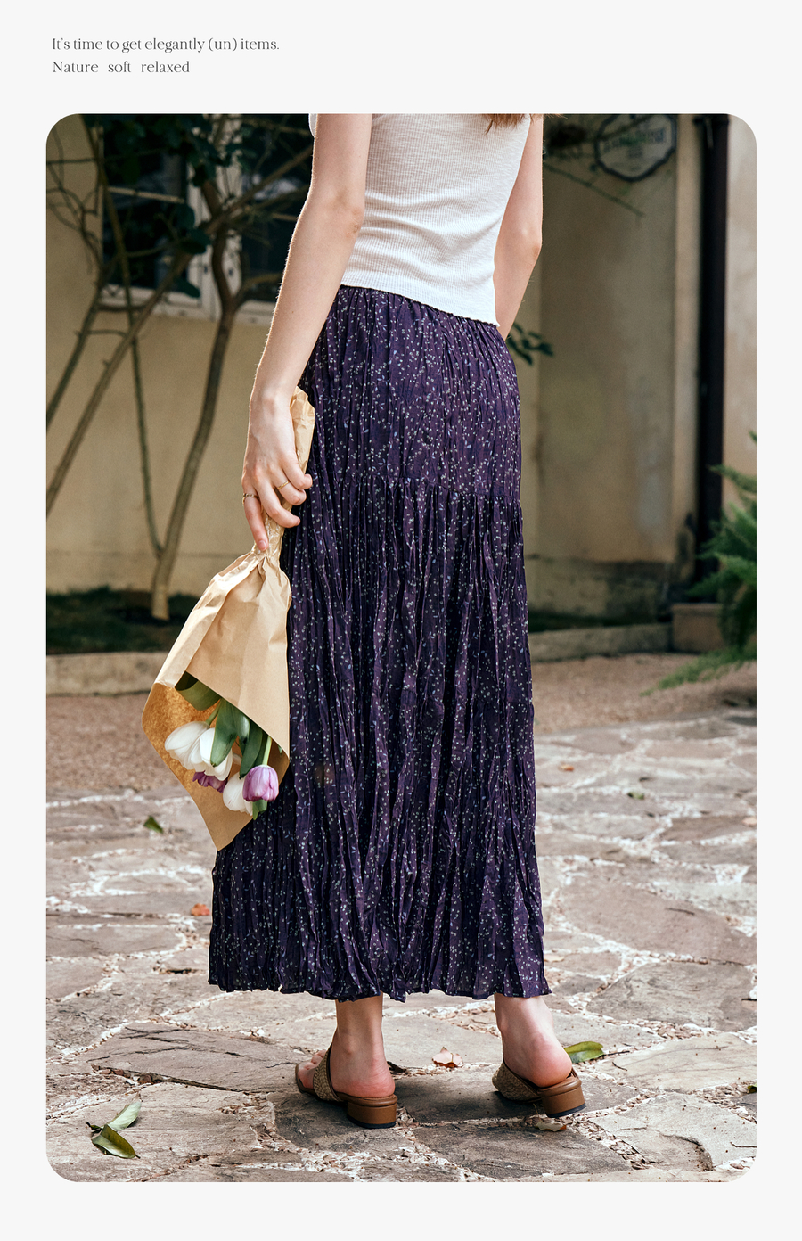OLrain欧芮儿紫色印花度假半身裙女夏季2025年新款高腰显瘦A字裙
