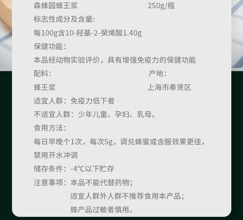 森蜂园王浆250g*2瓶东北椴树蜂王浆增强免疫力