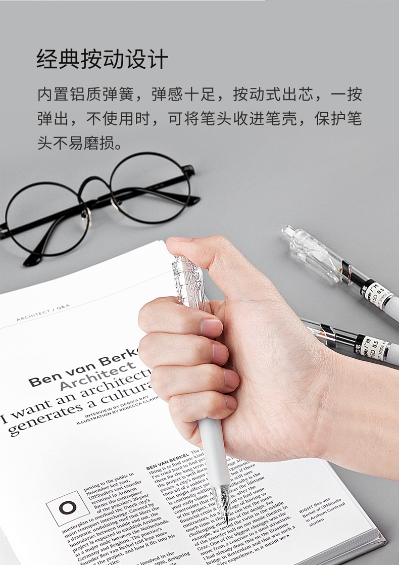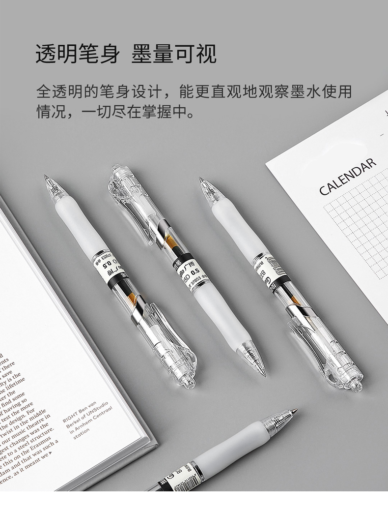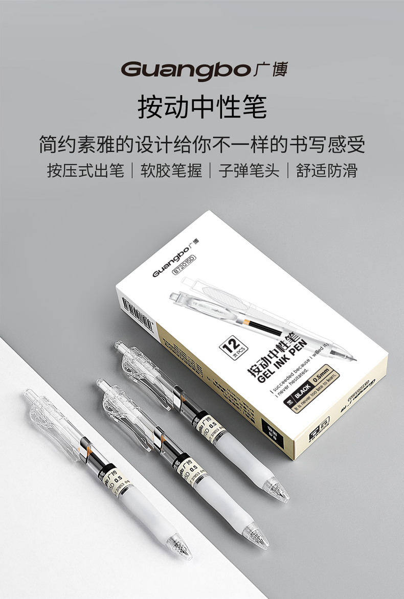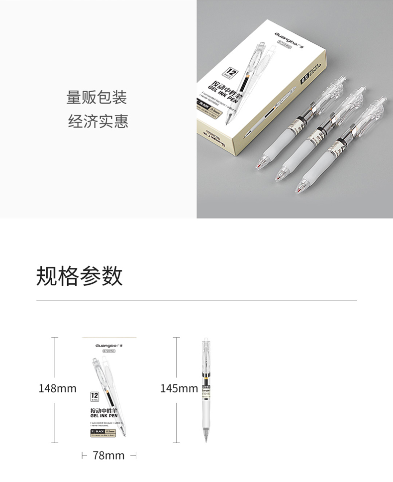 广博简约按动中性笔(黑色,12支装)