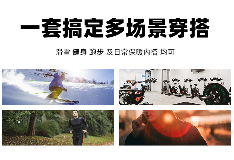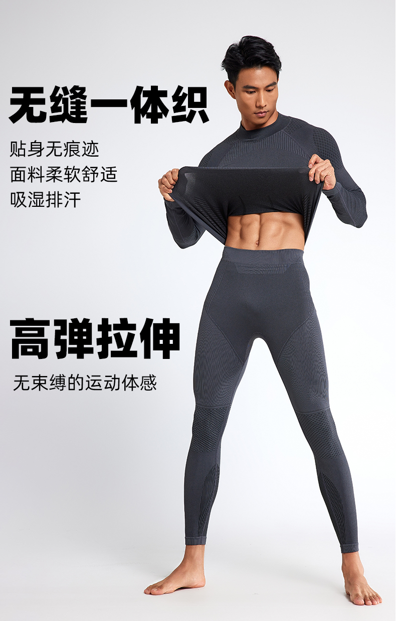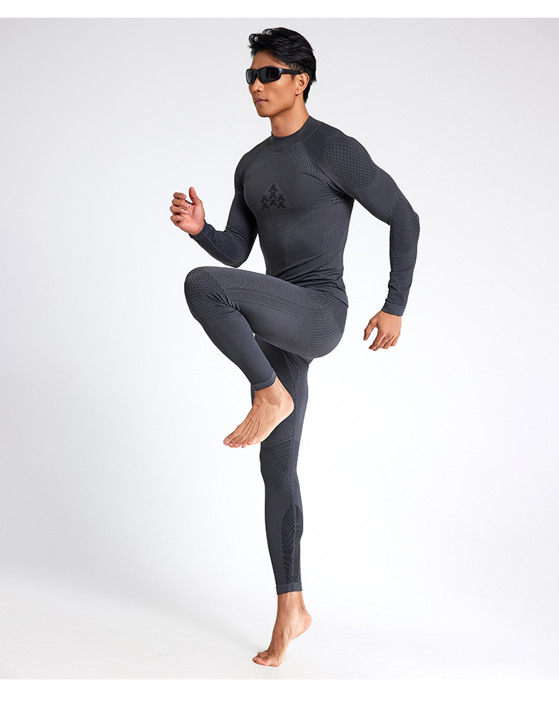 Leorrey/乐拉中领撞色科技感高弹柔软舒适滑雪内搭男士运动套装