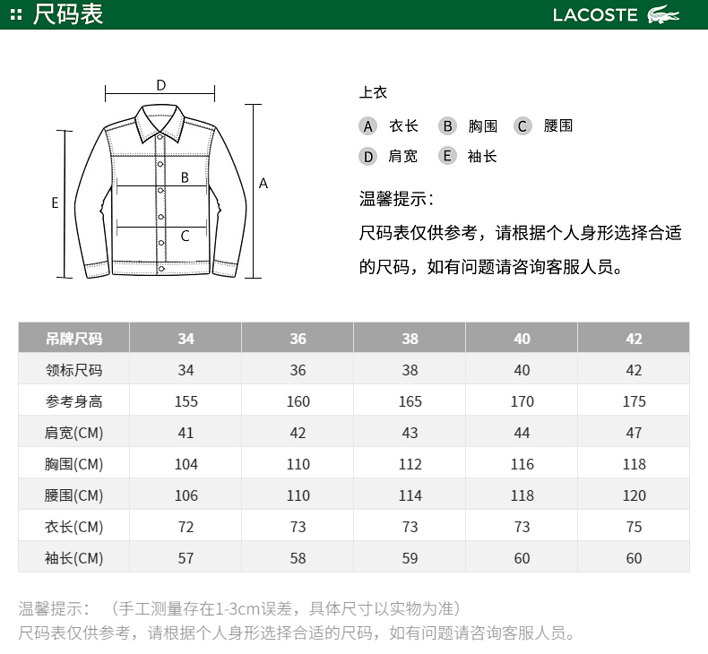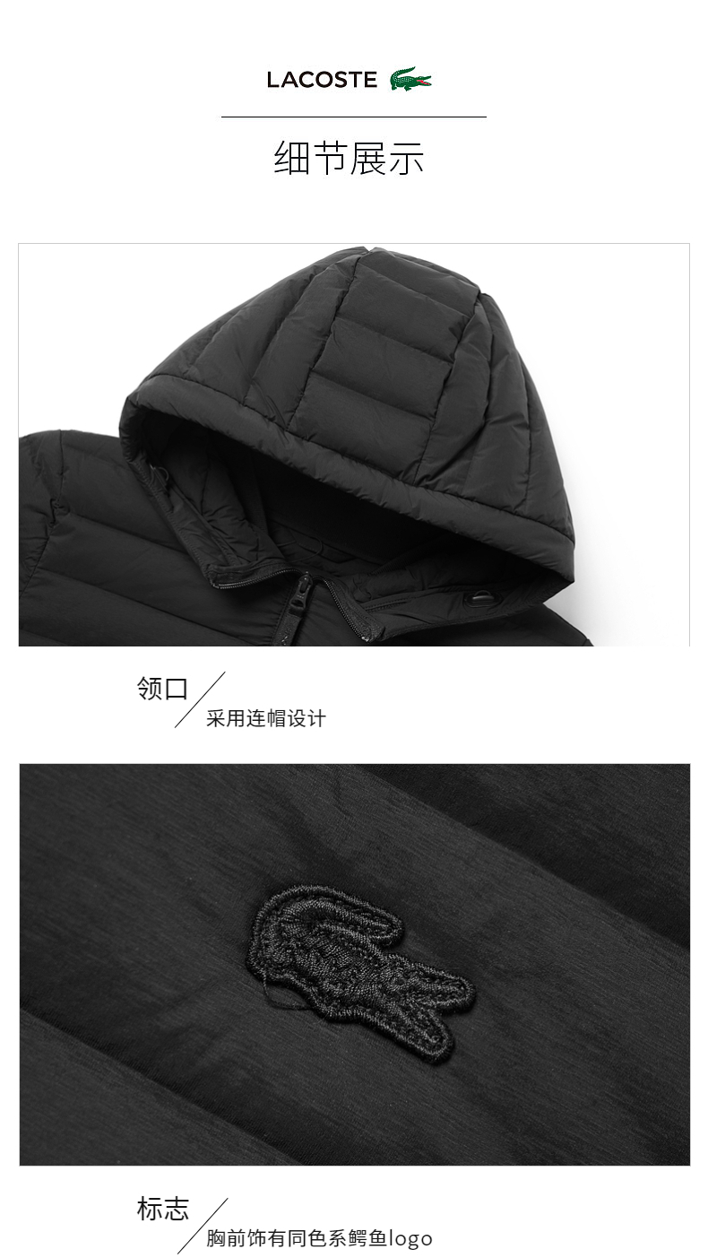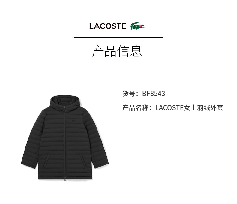 【海南专供价】Lacoste法国鳄鱼女装新款时尚舒适羽绒外套BF8543-98