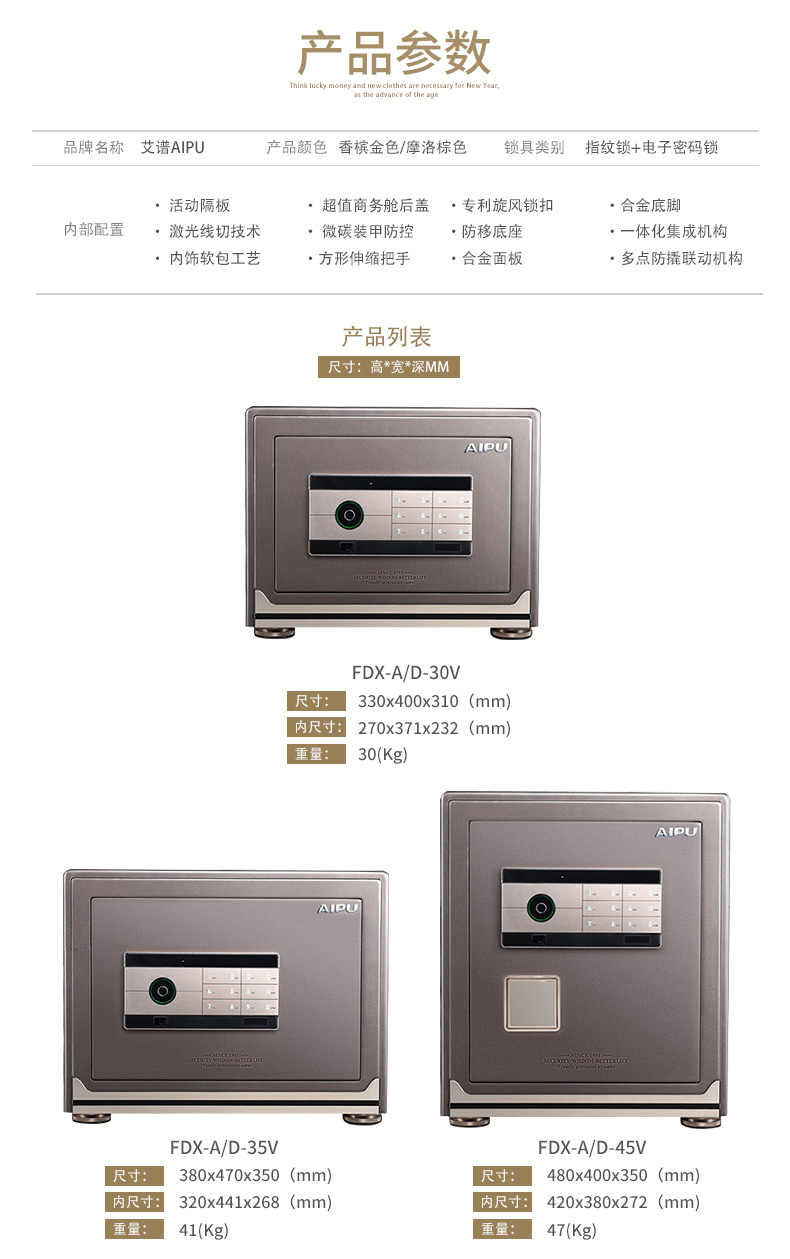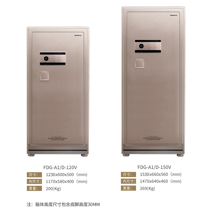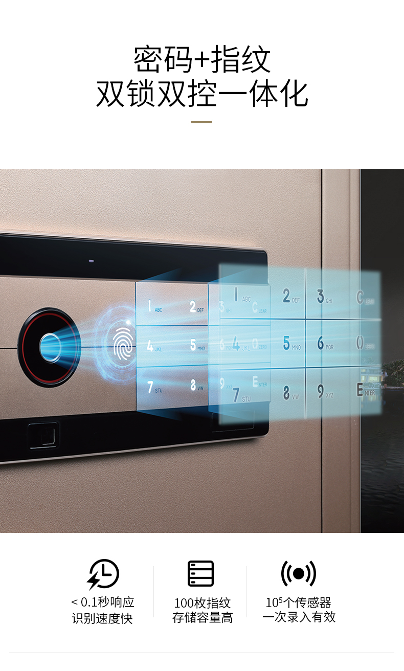AIPU艾谱智能指纹保险箱家用办公保险柜大型3c认证尊睿指纹电子密码系列入墙全钢高端保险箱