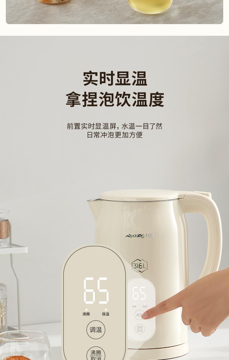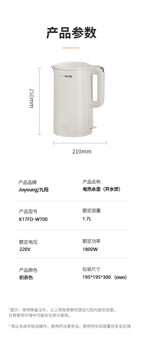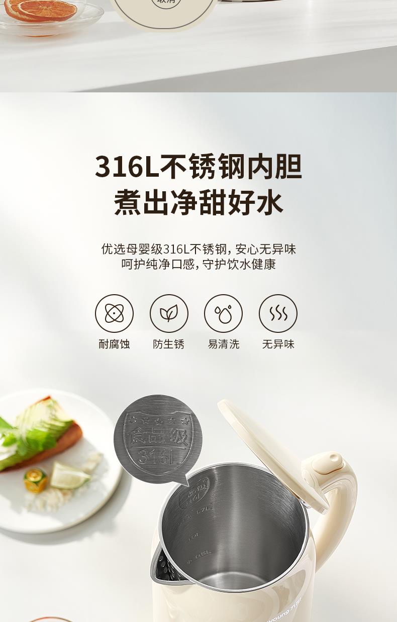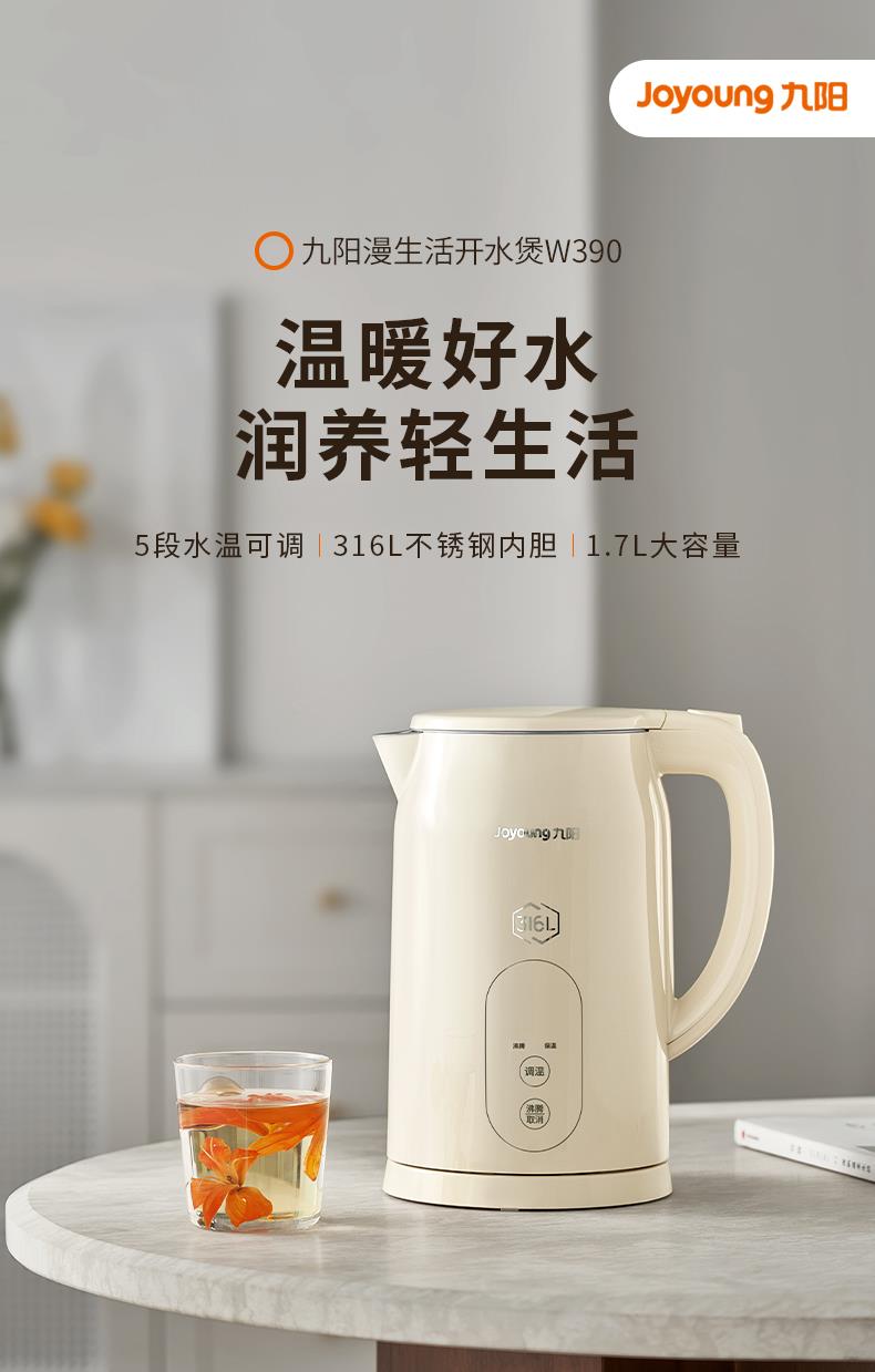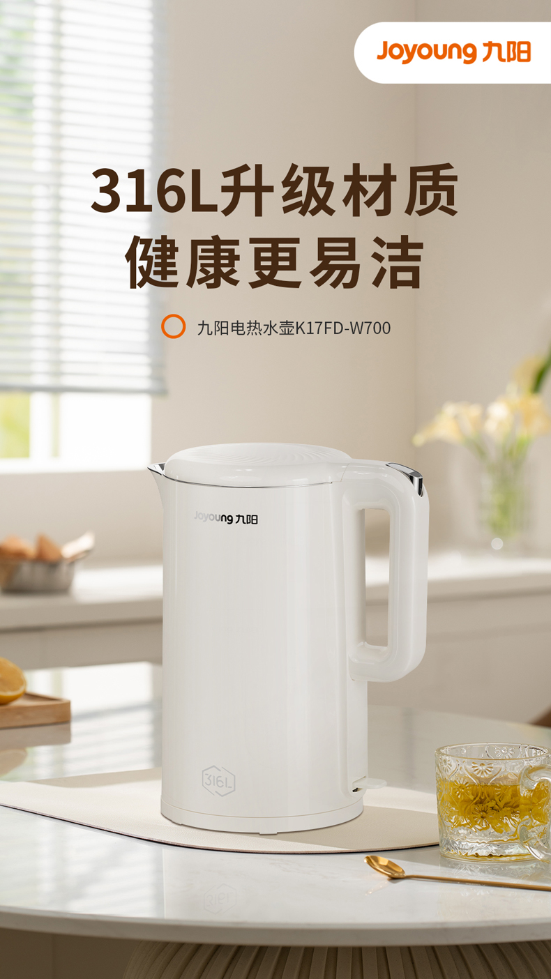 Joyoung九阳 1.7L电热水壶K17FD-W700/W390/WU700 双层隔热防烫 316L不锈钢内胆 72小时发货