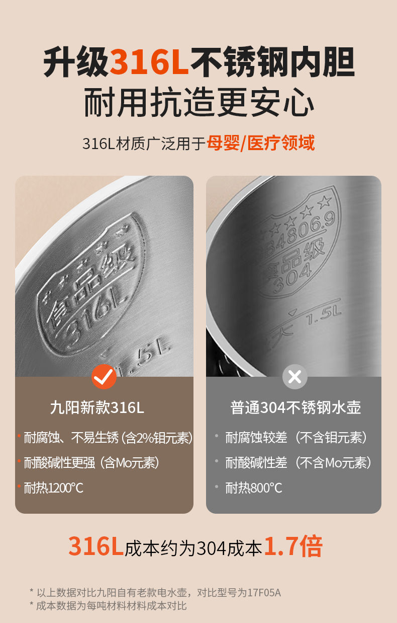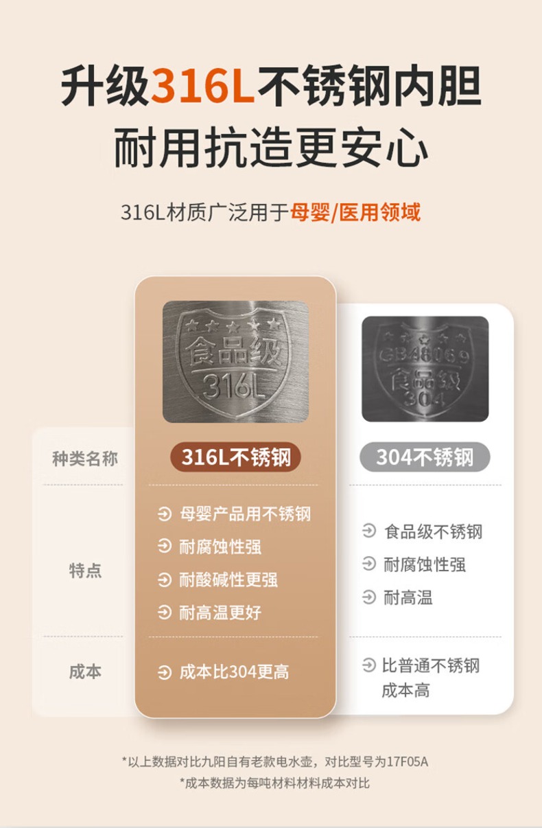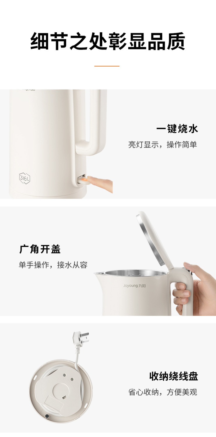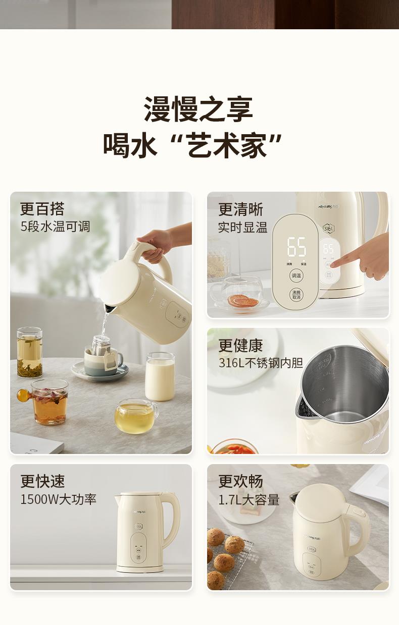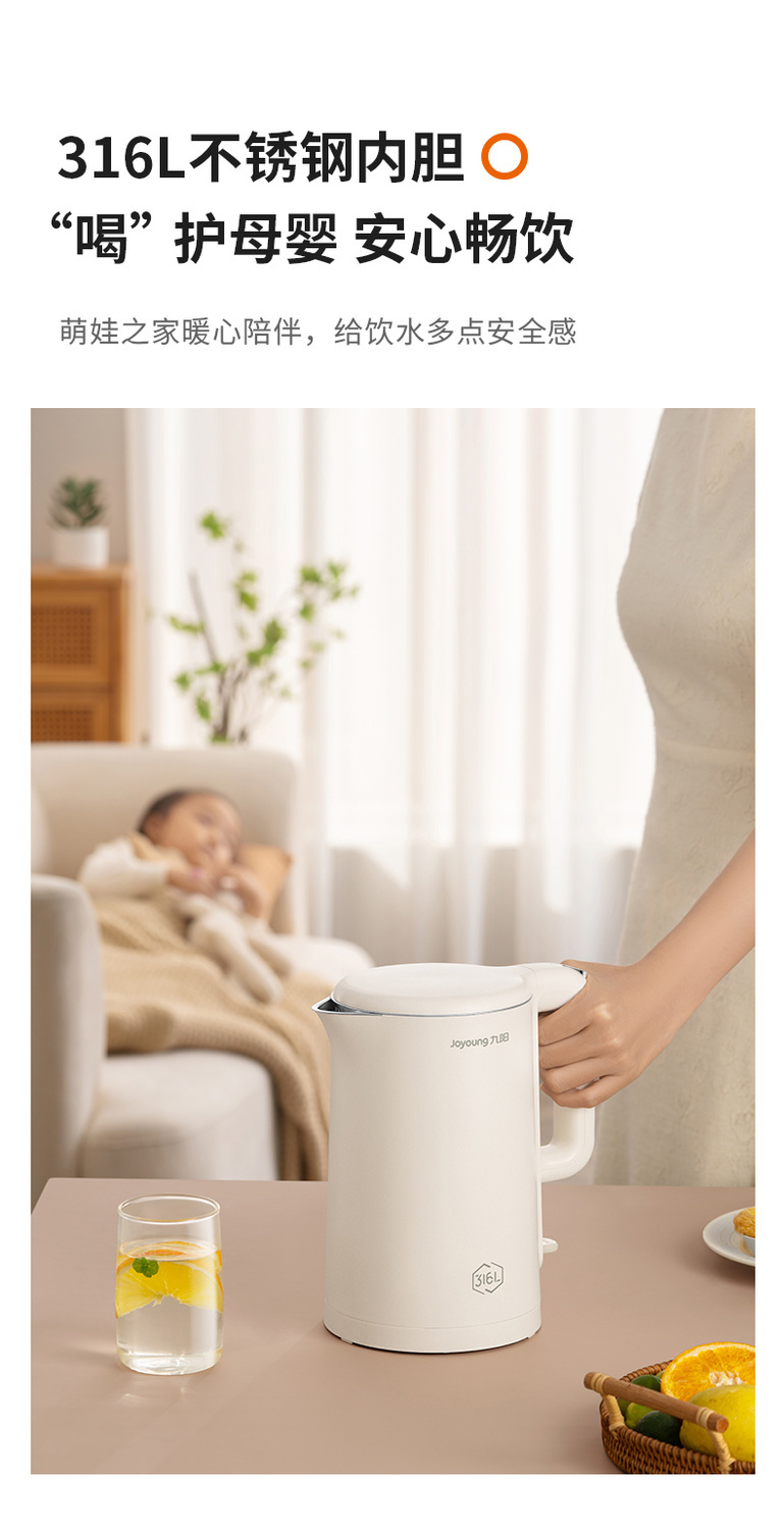 Joyoung九阳 1.7L电热水壶K17FD-W700/W390/WU700 双层隔热防烫 316L不锈钢内胆 72小时发货
