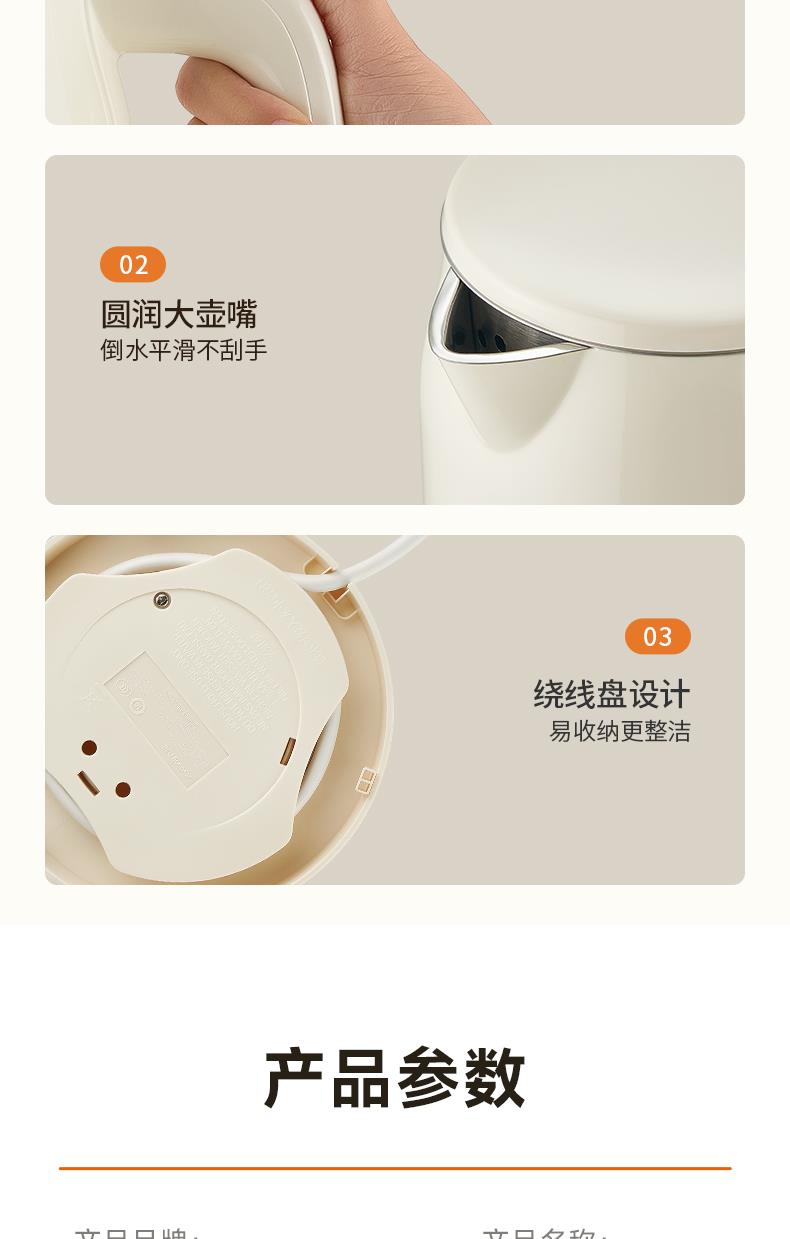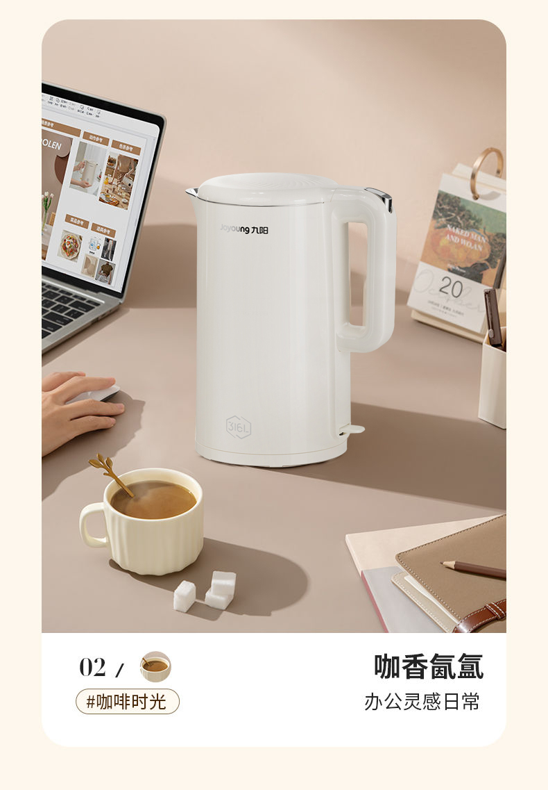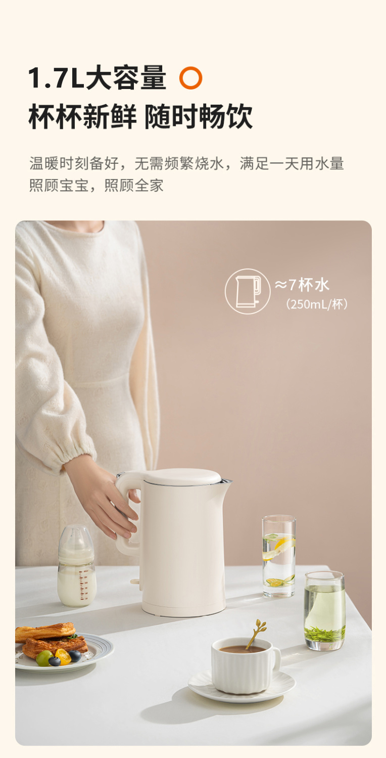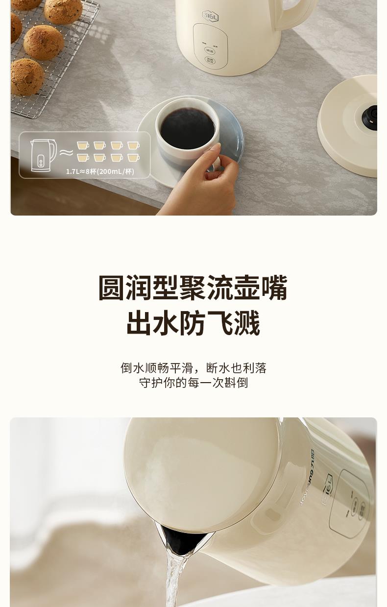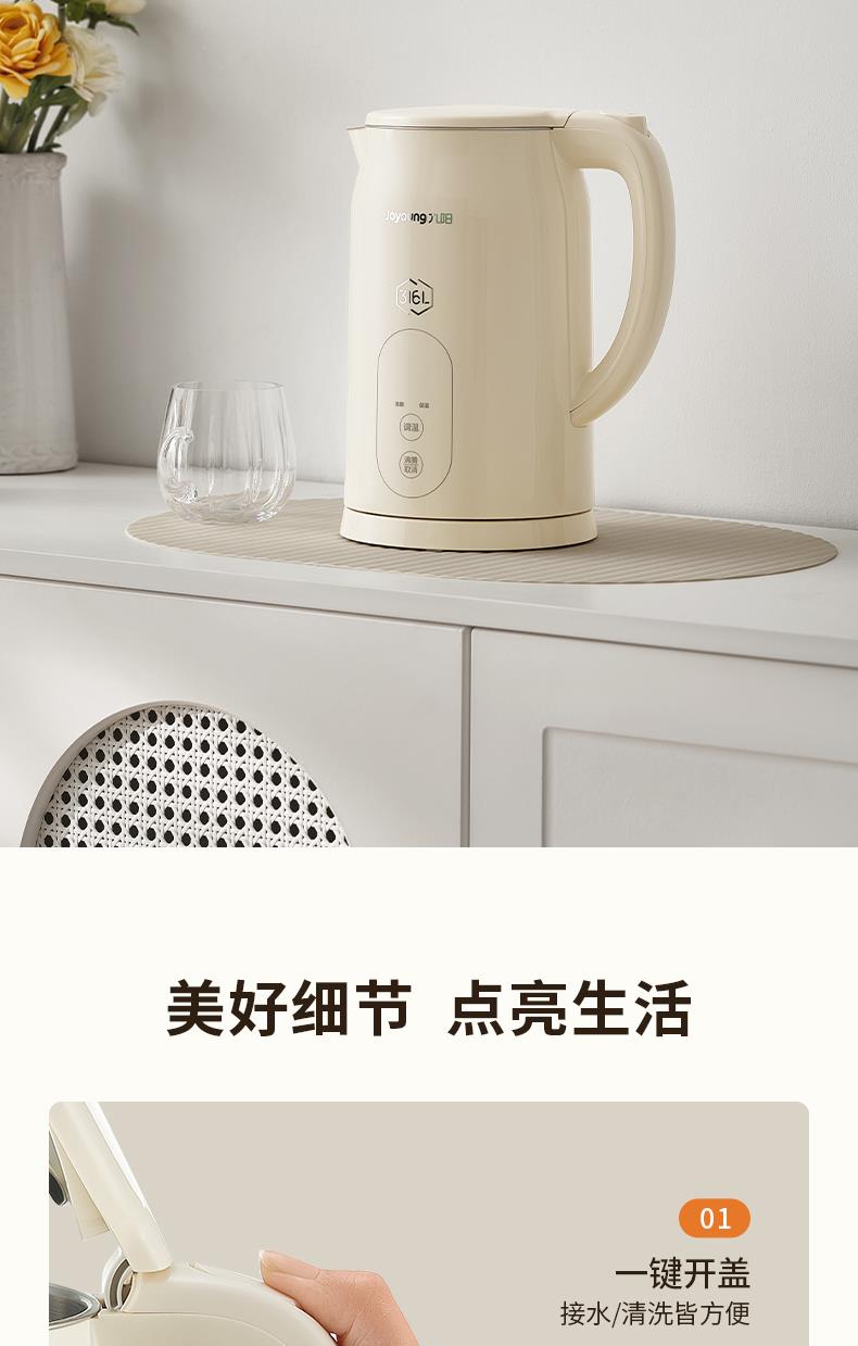 Joyoung九阳 1.7L电热水壶K17FD-W700/W390/WU700 双层隔热防烫 316L不锈钢内胆 72小时发货