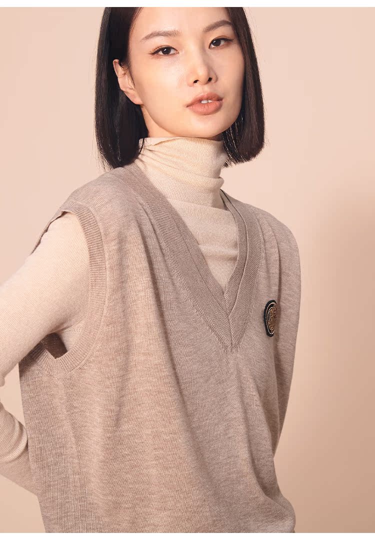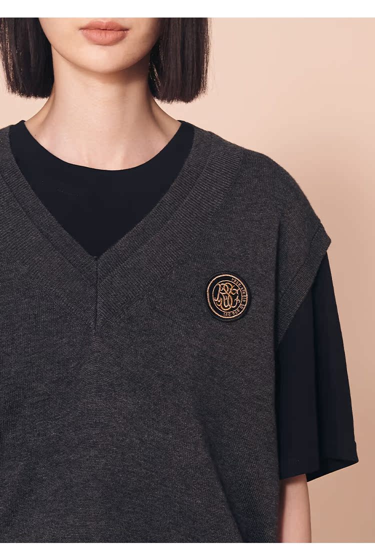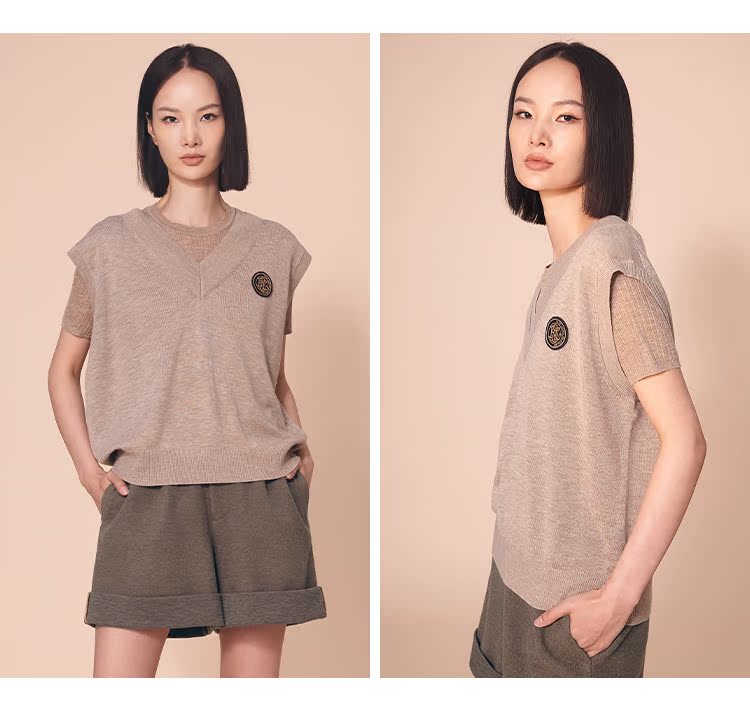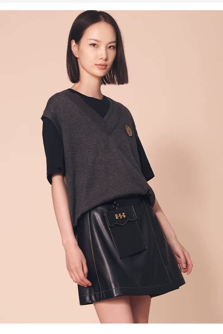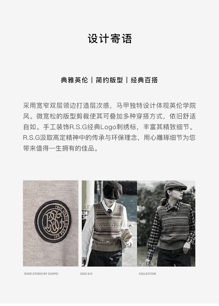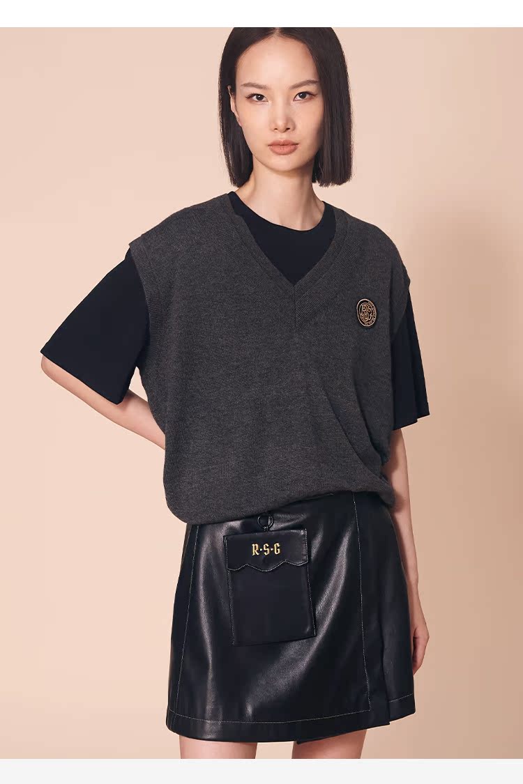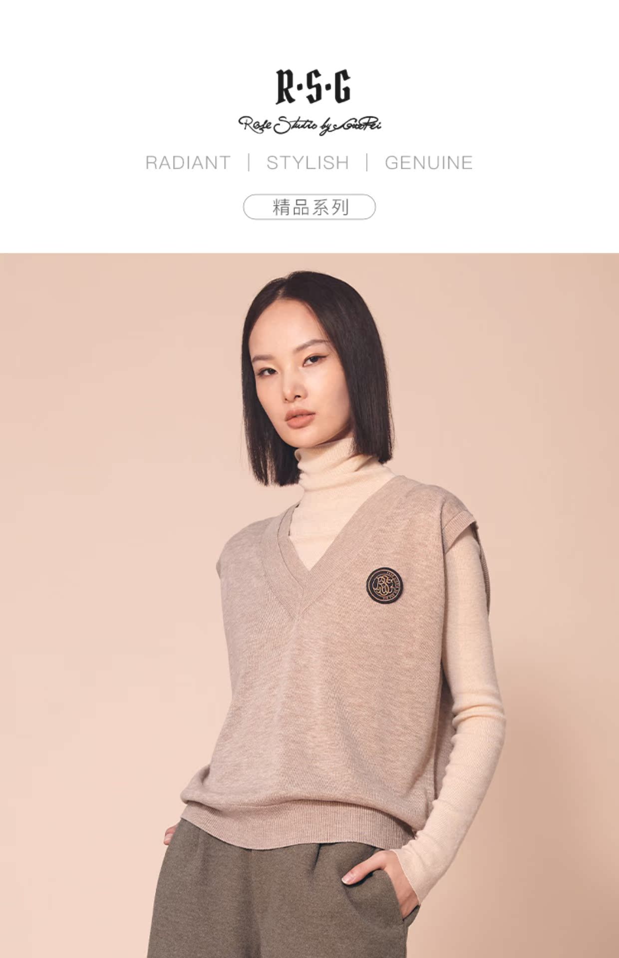 RSG郭培线上成衣品牌双层V领纯色针织无袖学院风背心马甲修身上衣