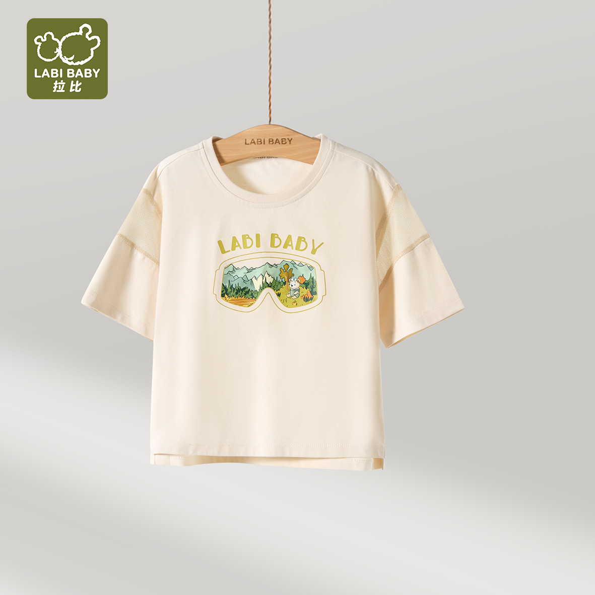 拉比童衣夏趣野圆领短袖衣浅卡其j6LZBC100410