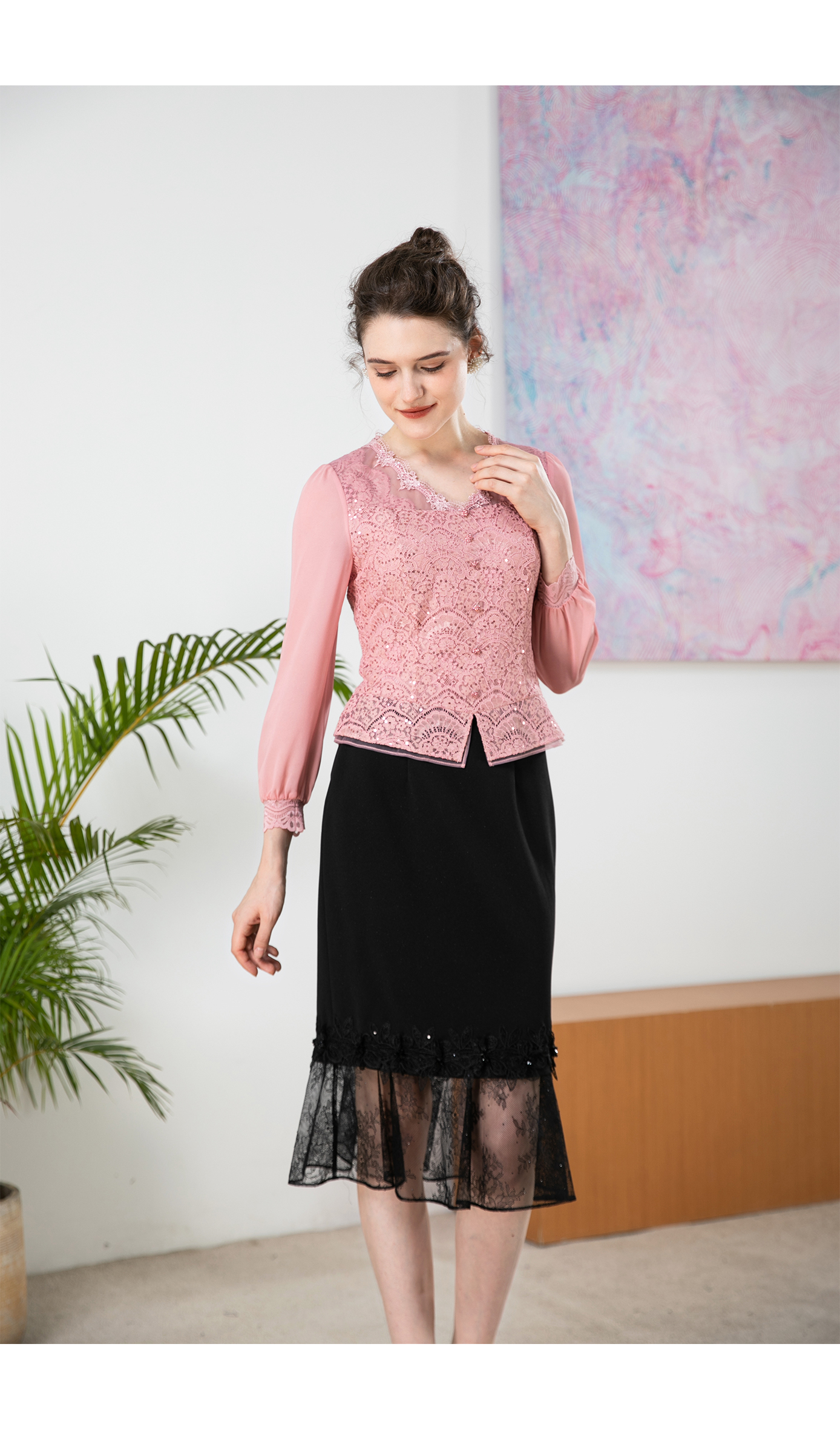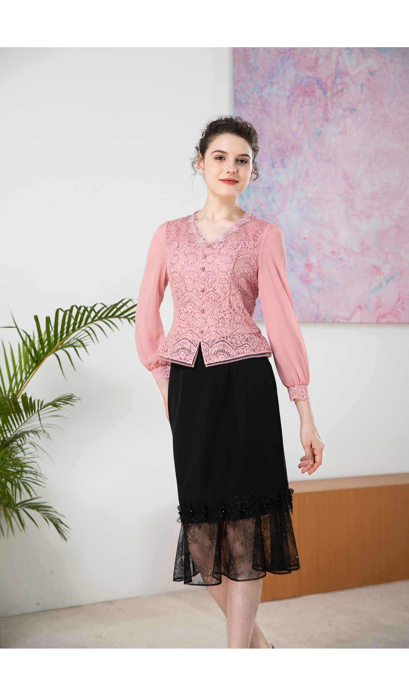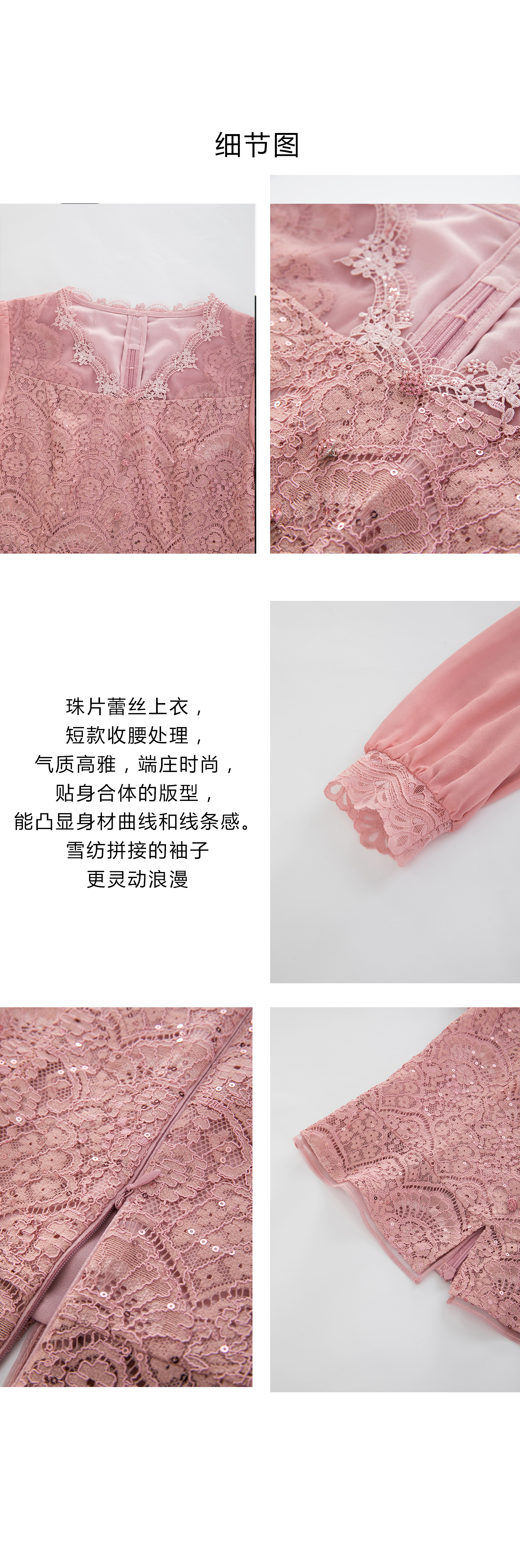 司歌v领蕾丝衫上衣长袖收腰显瘦气质秋T901147X