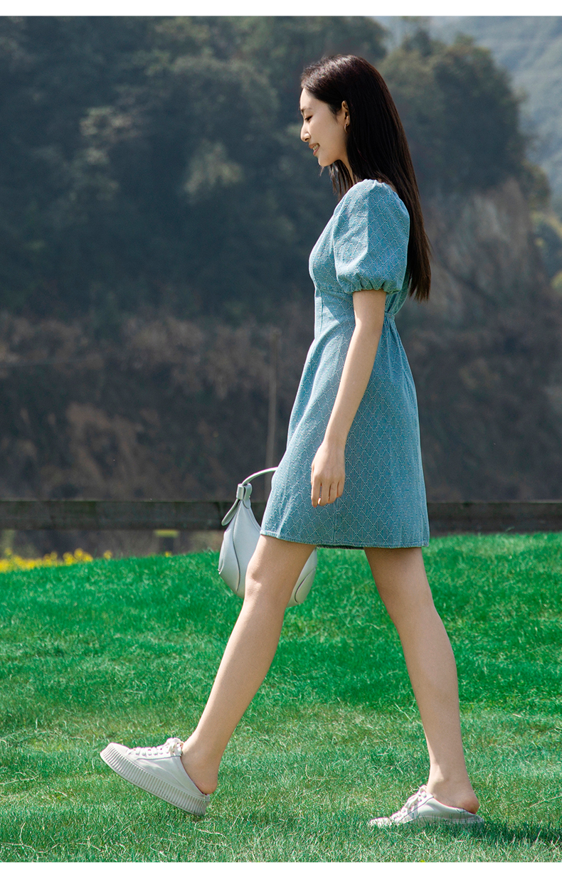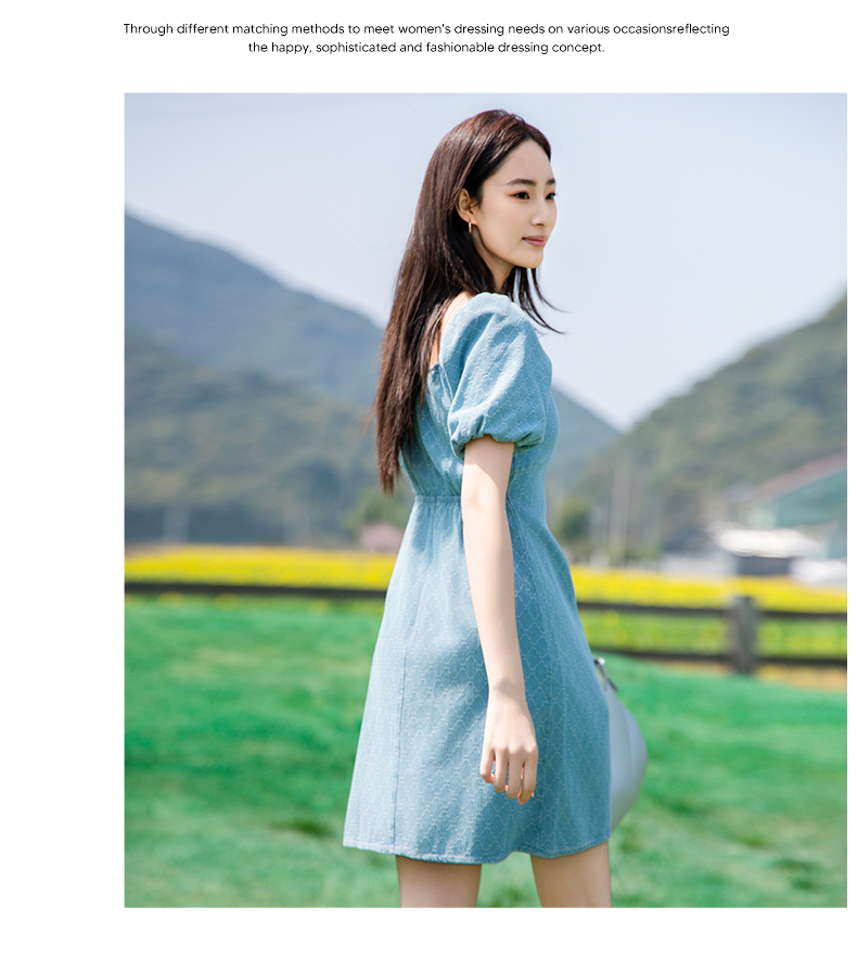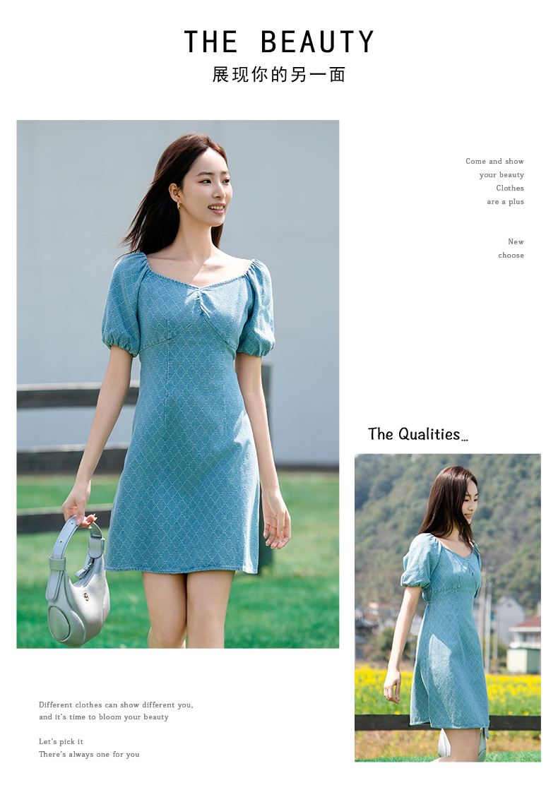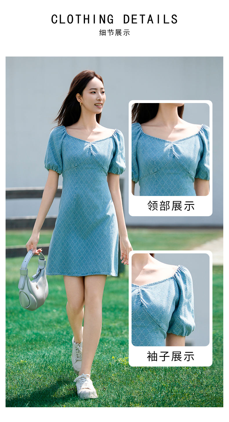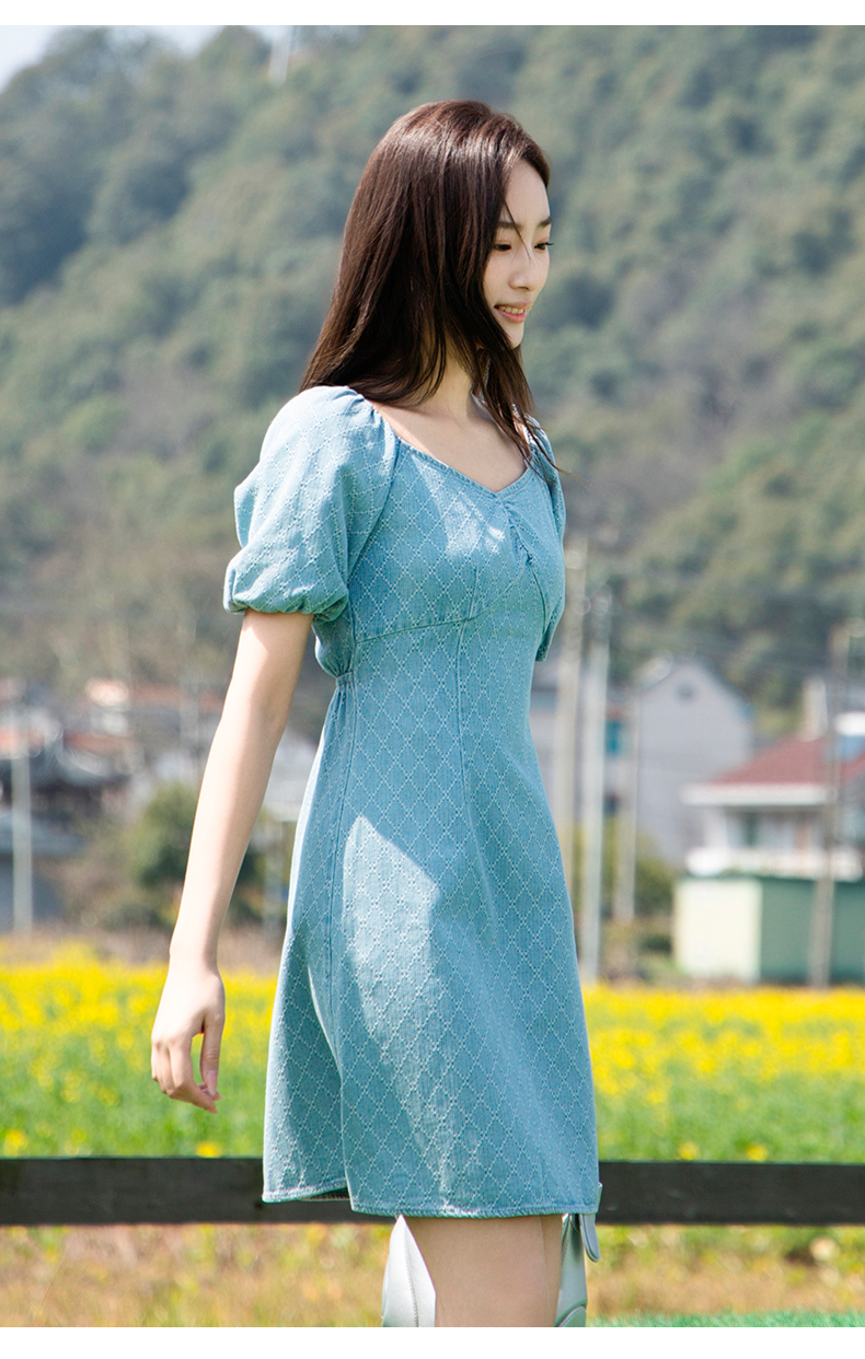 NUTS夏季新款收腰遮肚子显瘦法式牛仔连衣裙429102273