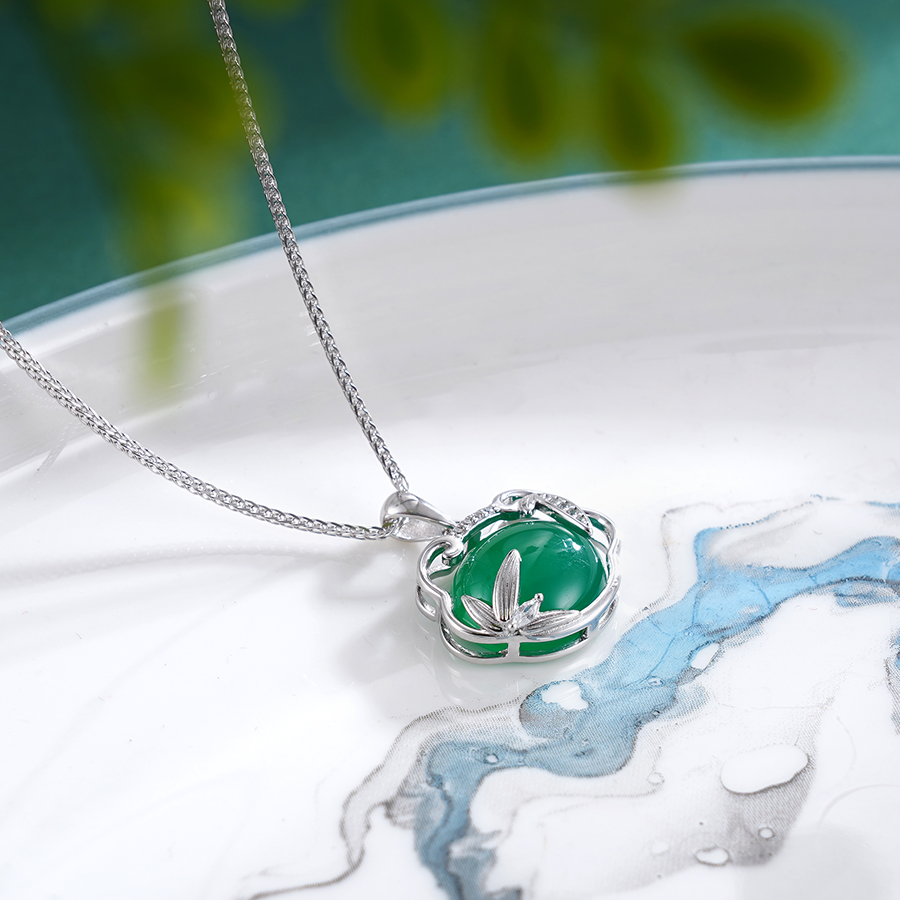 【寓意】:捕捉竹叶的清雅之美,采用镶嵌工艺打造如意锁吊坠。独特的镂空设计,如诗中的留白,简约从容。寓意“竹”够欢喜,“竹”够幸福。