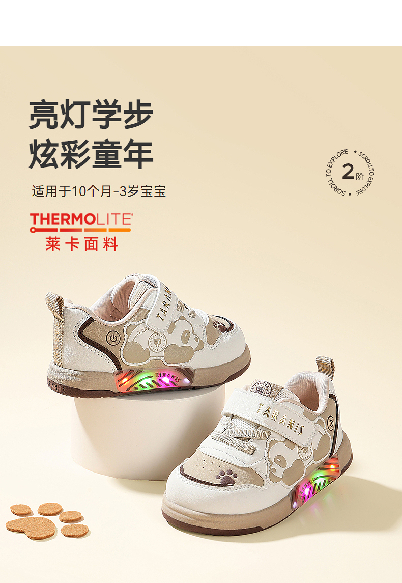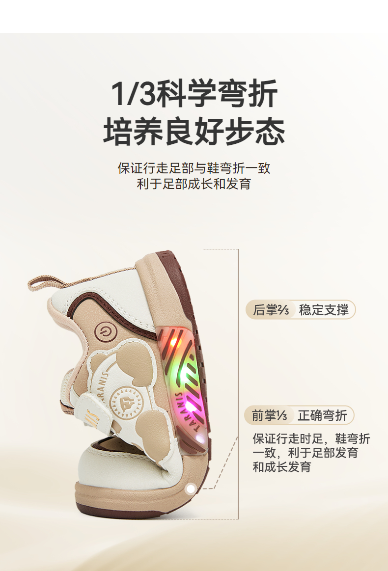 泰兰尼斯儿童闪灯鞋秋季新款男童学步鞋运动童鞋女宝宝软底发光鞋 T02T5C6564