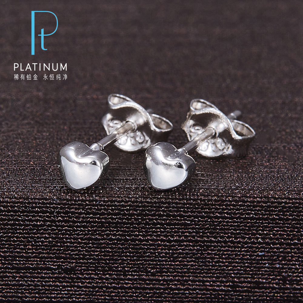 【限时8.8折】【线上铂金馆】PT950 #清新 【国际铂金协会】铂金心形耳钉(直针配铂金耳迫)(BES00024),(预售产品下单后不退款不退货不换货不补差价)