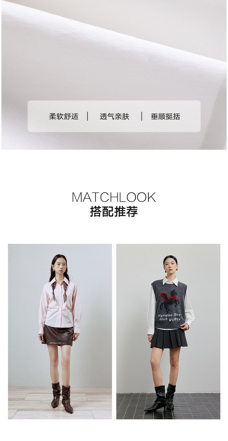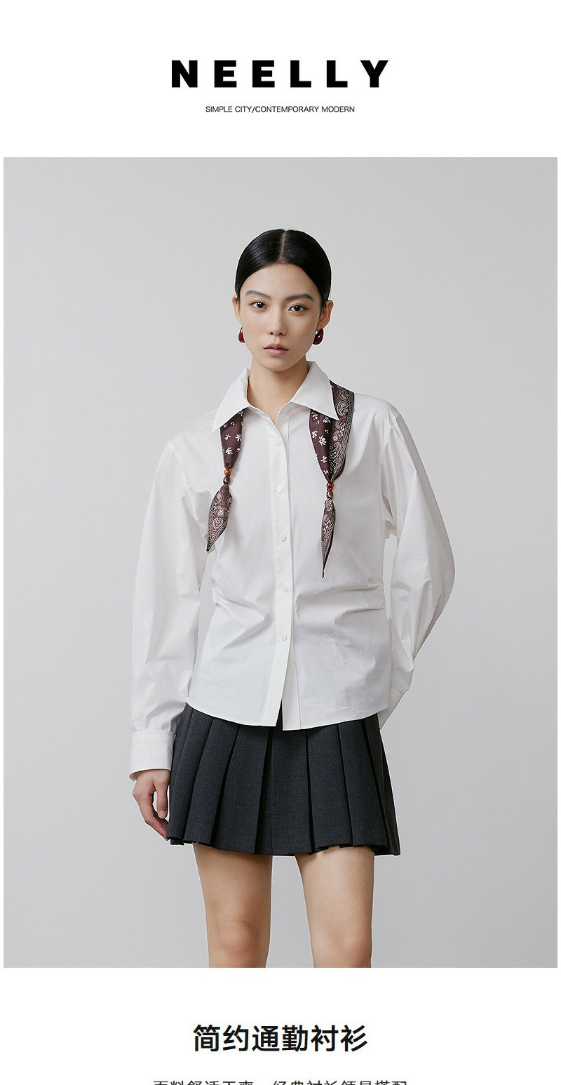 NEELLY纳俪商场同款春季新款简约通勤衬衫女休闲叠穿百搭风外套N26011B01012