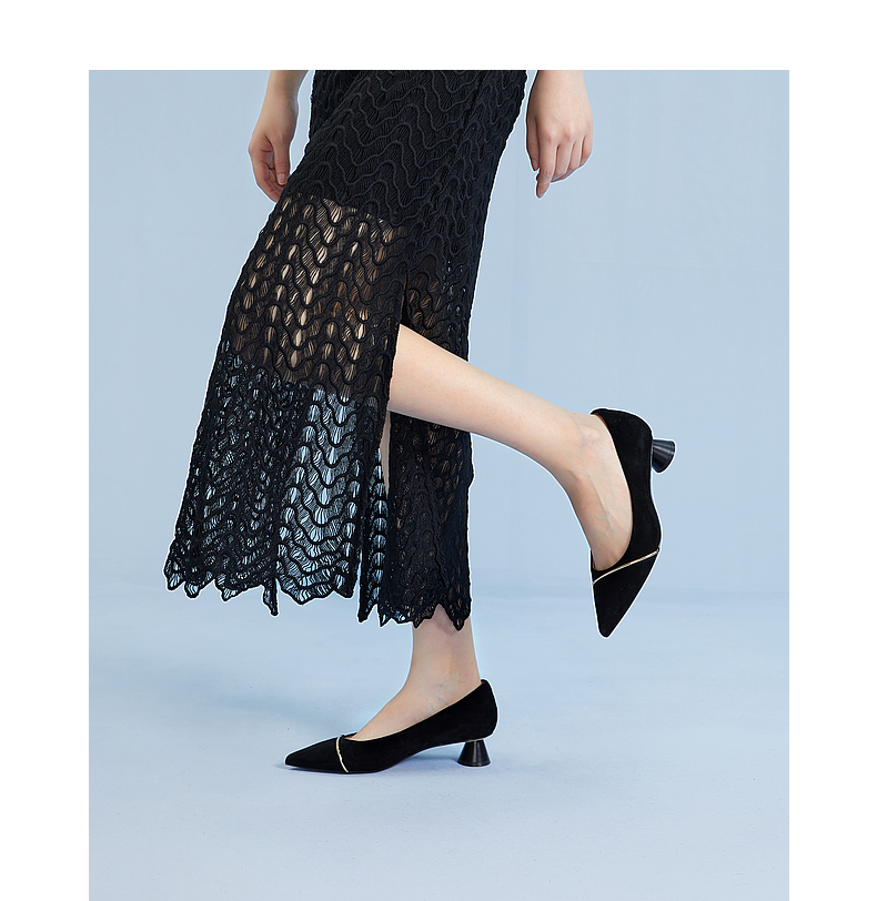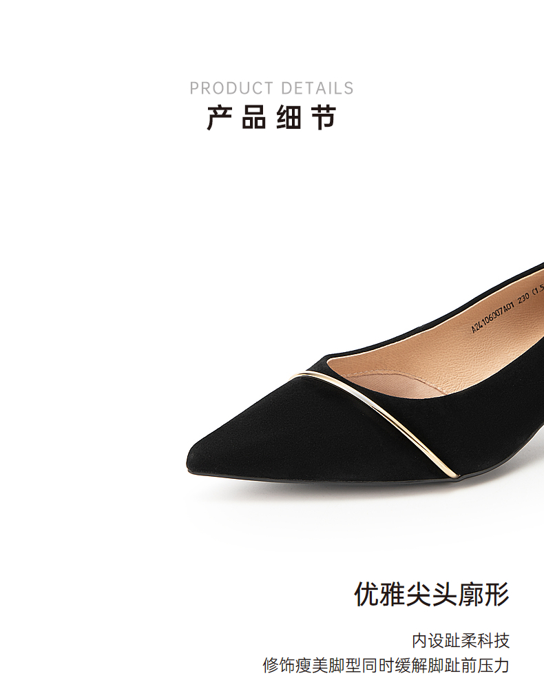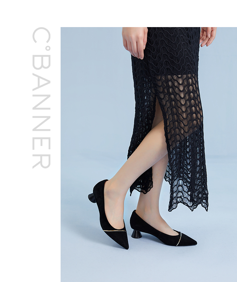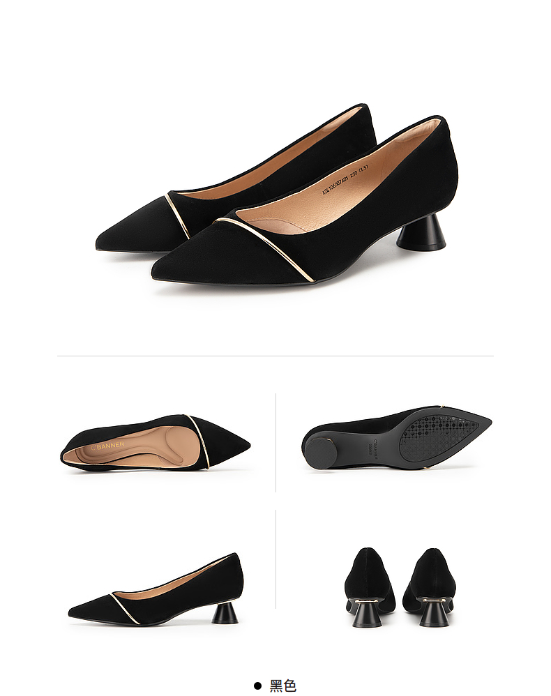 【静音系列】千百度粗跟单鞋女春季浅口中跟鞋通勤羊皮鞋A24106007