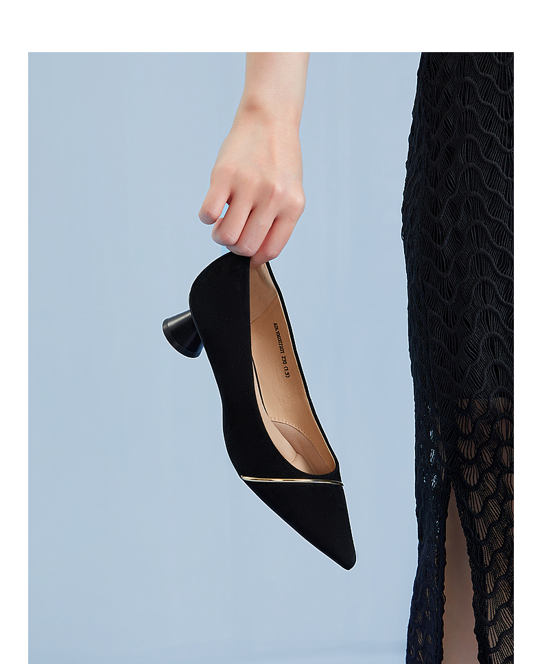 【静音系列】千百度羊皮粗高跟鞋女通勤方头浅口单鞋A25185510