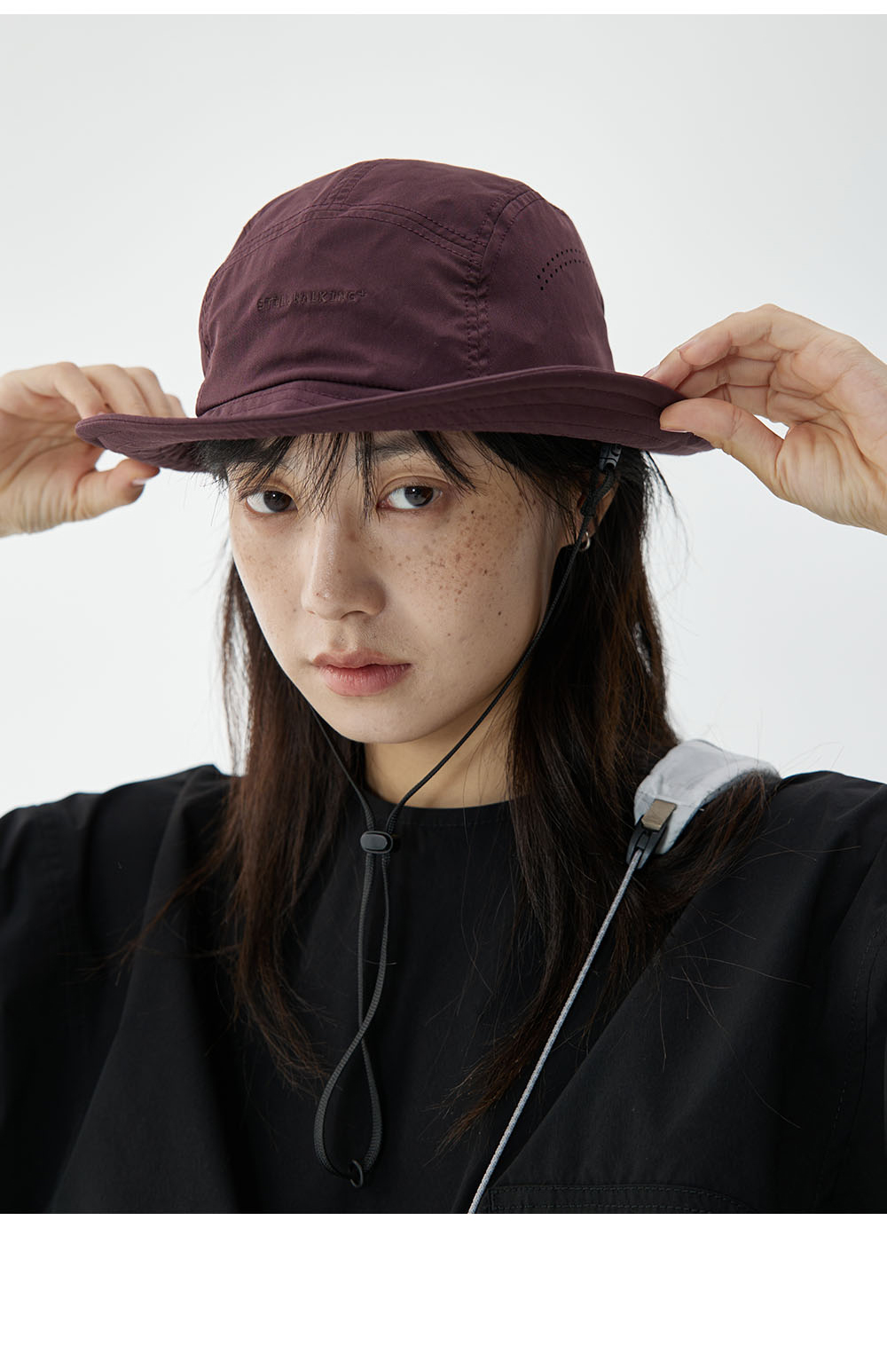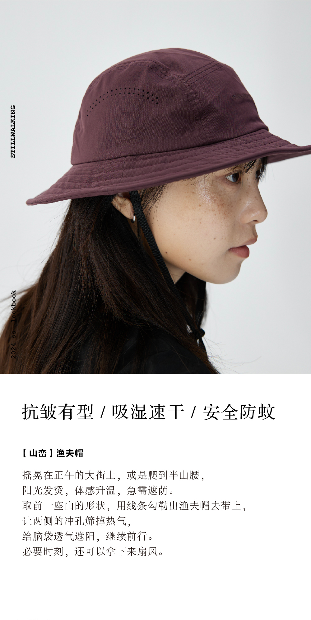 步履不停/4B76007C/户外透气冲孔挂绳防蚊黑色棕色渔夫帽