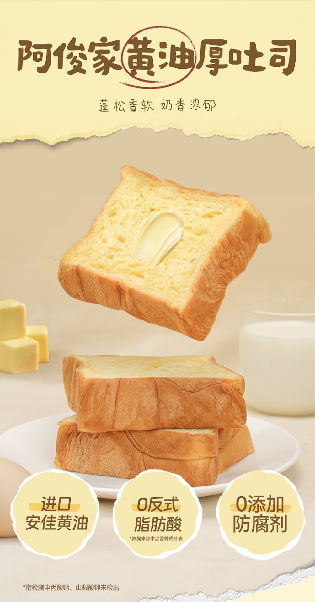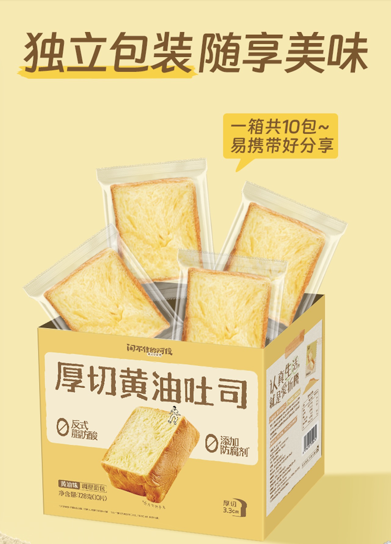 闲不住的阿俊厚切黄油吐司(728g/箱 10包)生产日期: 4月