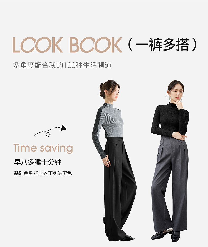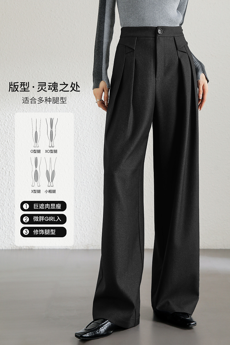 【内购】都市气质通勤百搭宽松立体感腰间压折叠高腰垂感通勤阔腿裤-143K57149