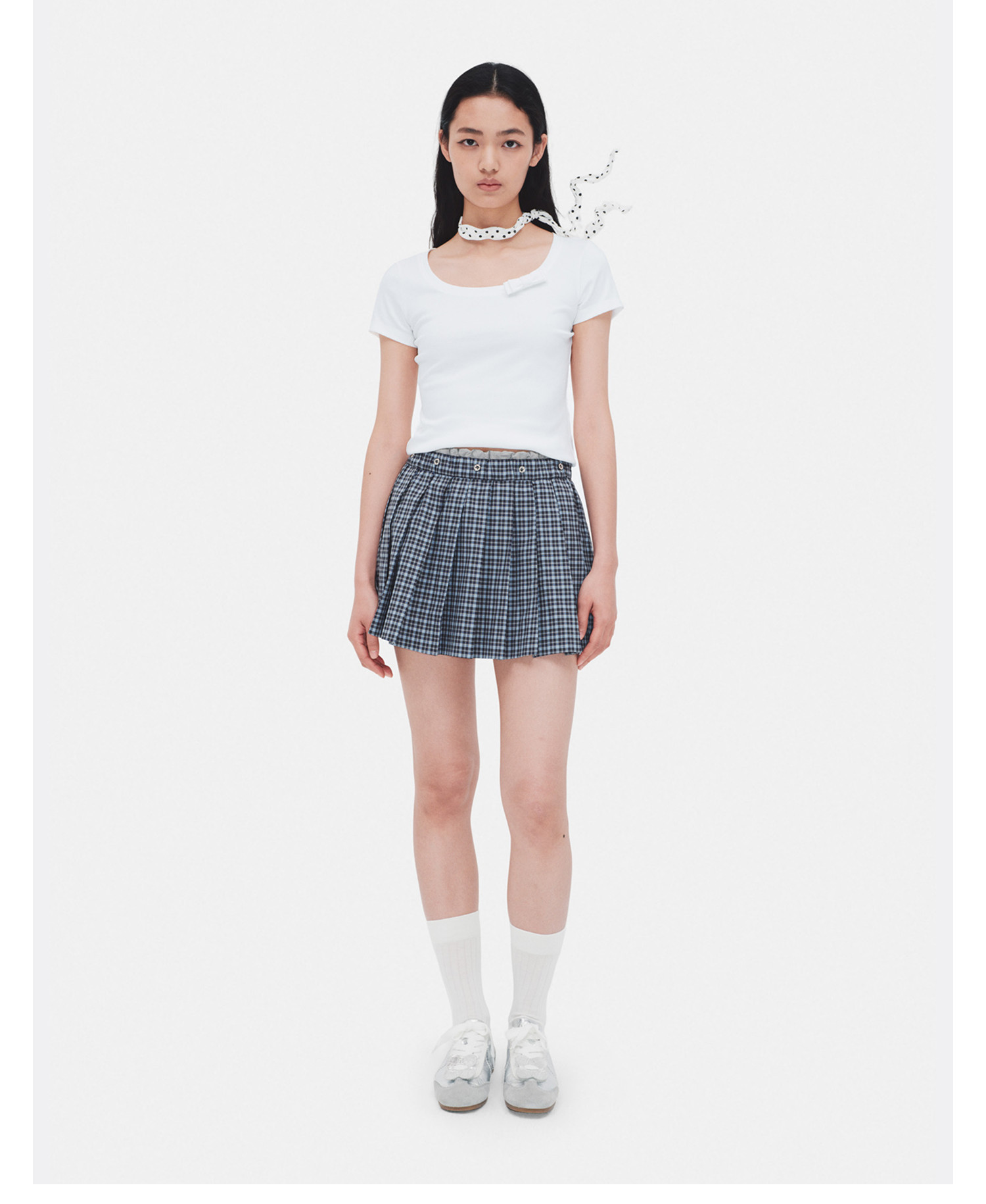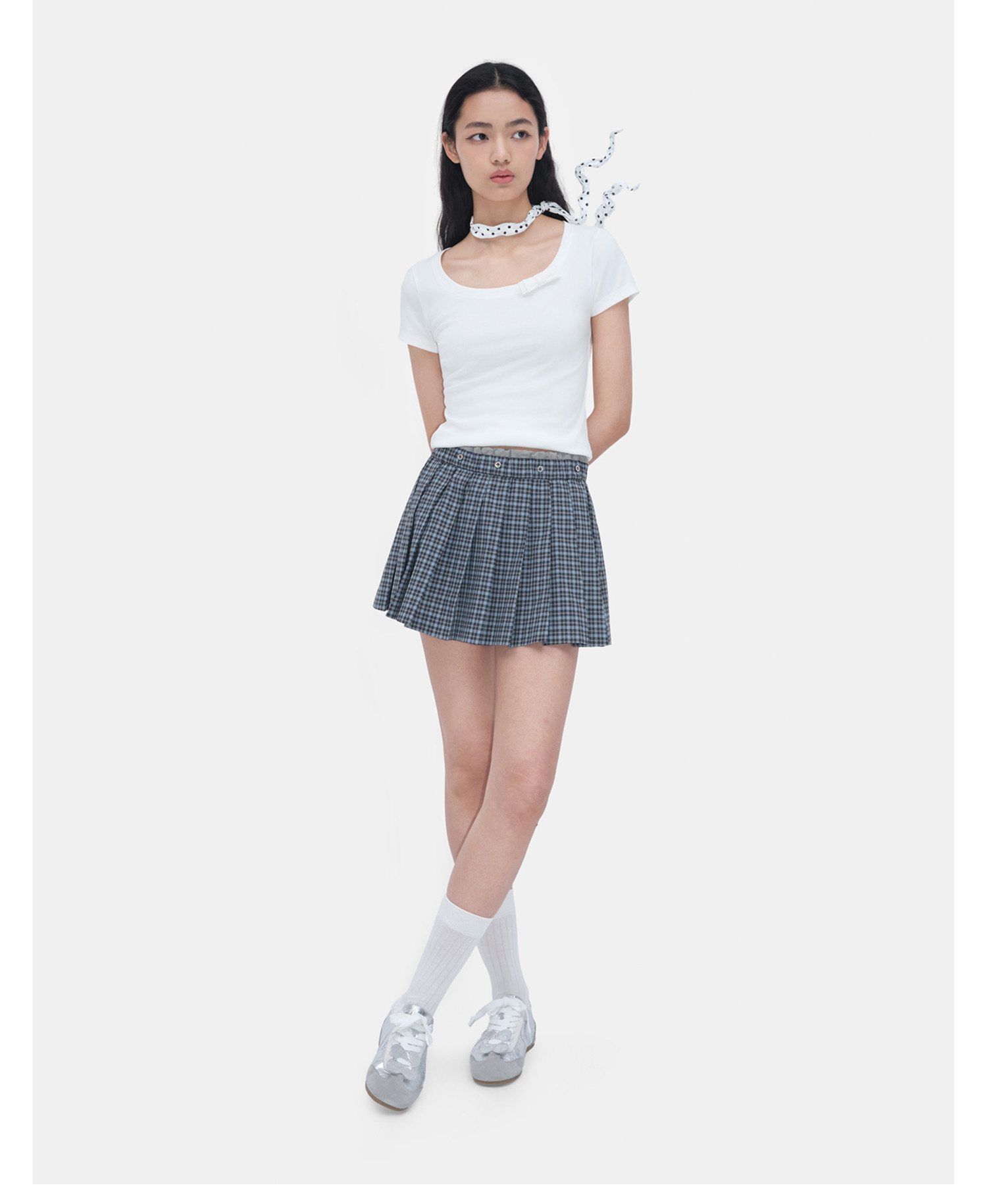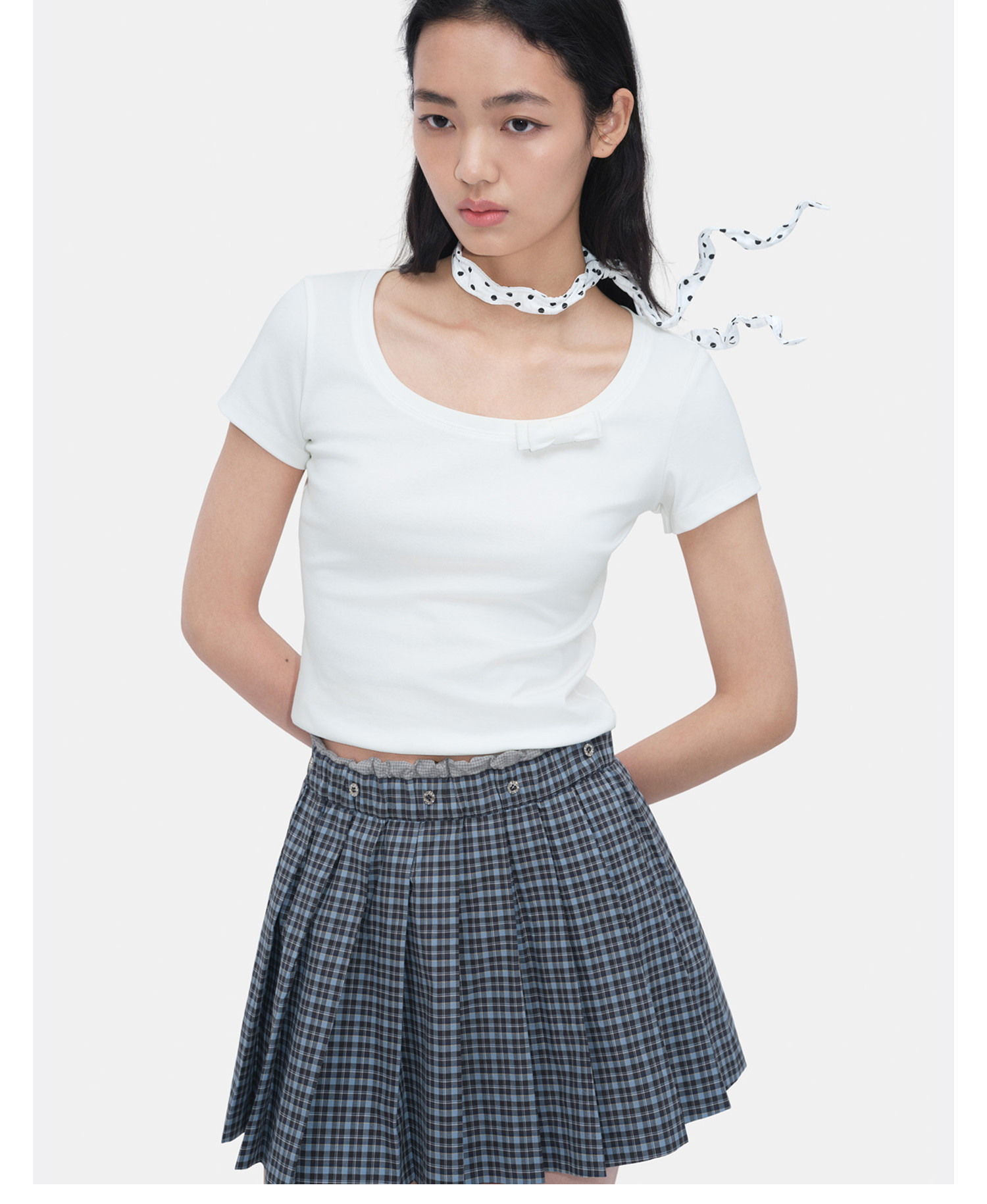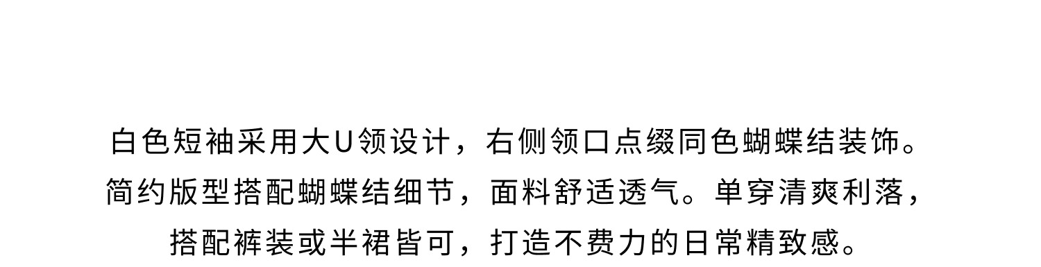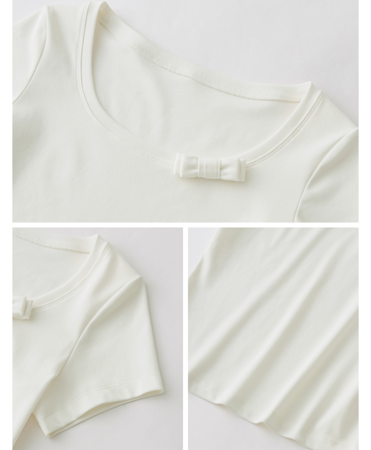 HERLIAN 2026年夏季新品蝴蝶结装饰U领修身简约百搭女士短袖T恤