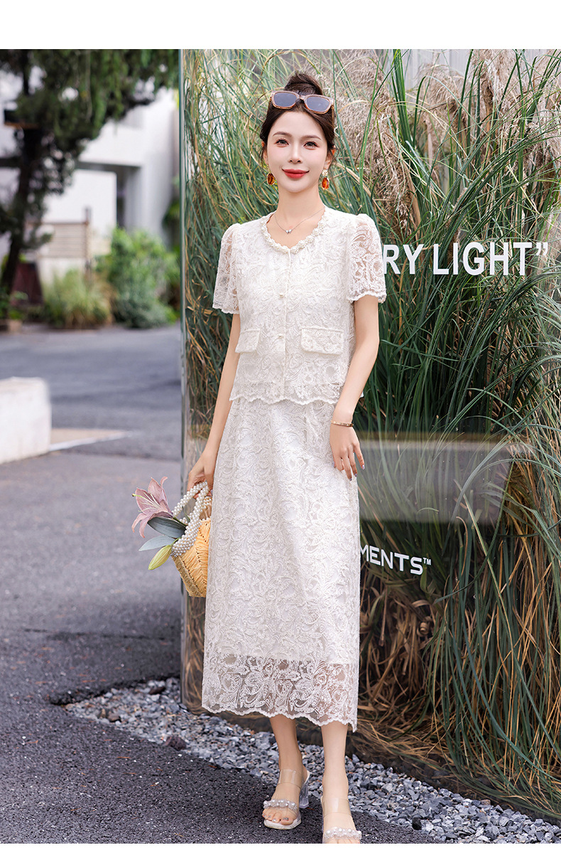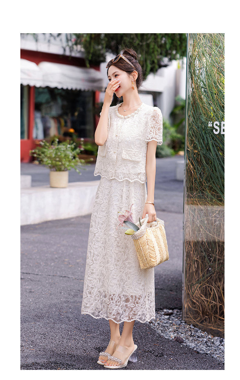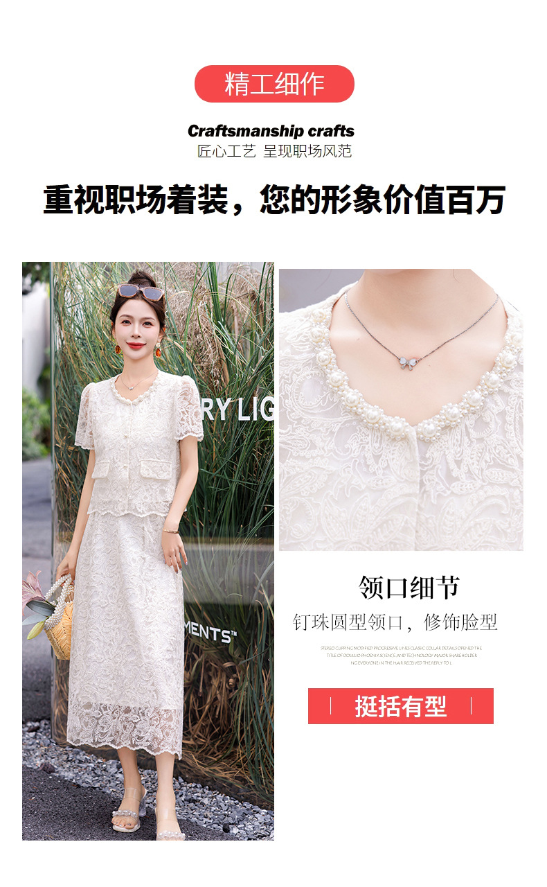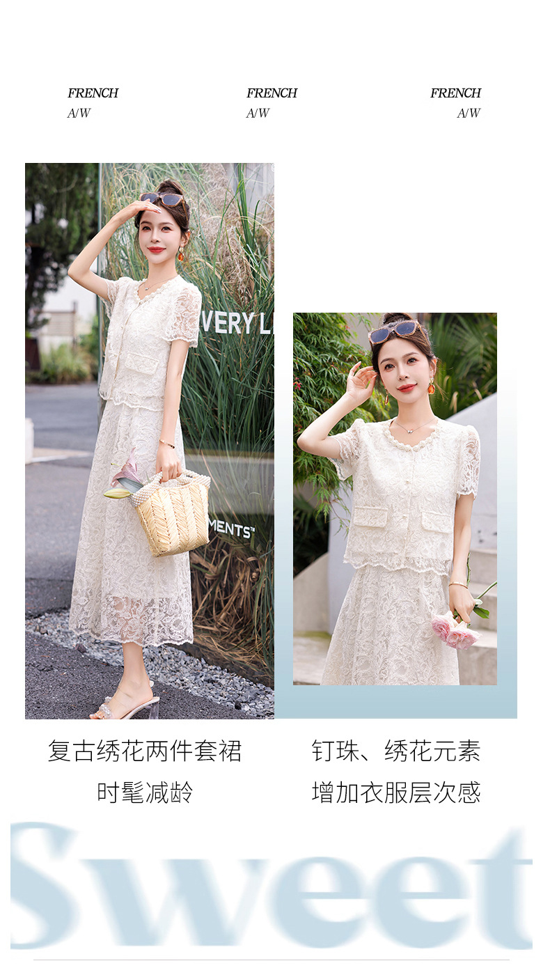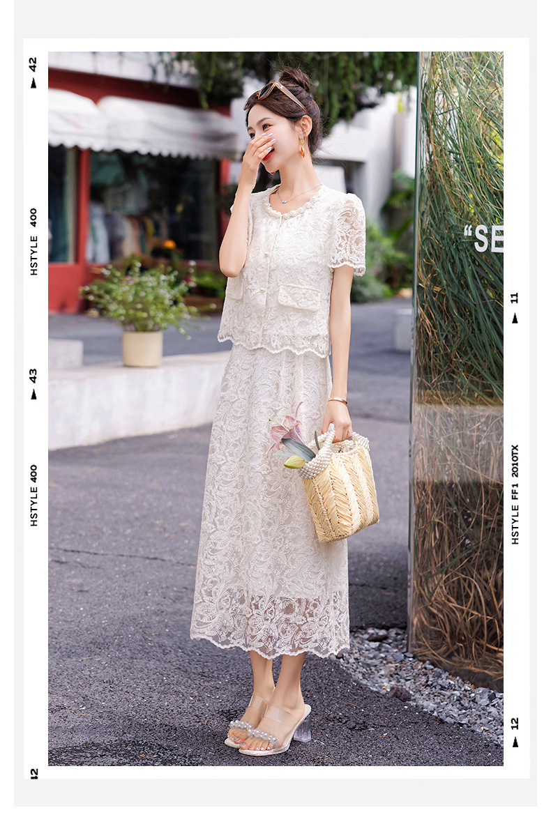 小香风钉珠绣花蕾丝套装裙,气质名媛时尚显瘦上衣半身裙子两件套HR-YJLY9821