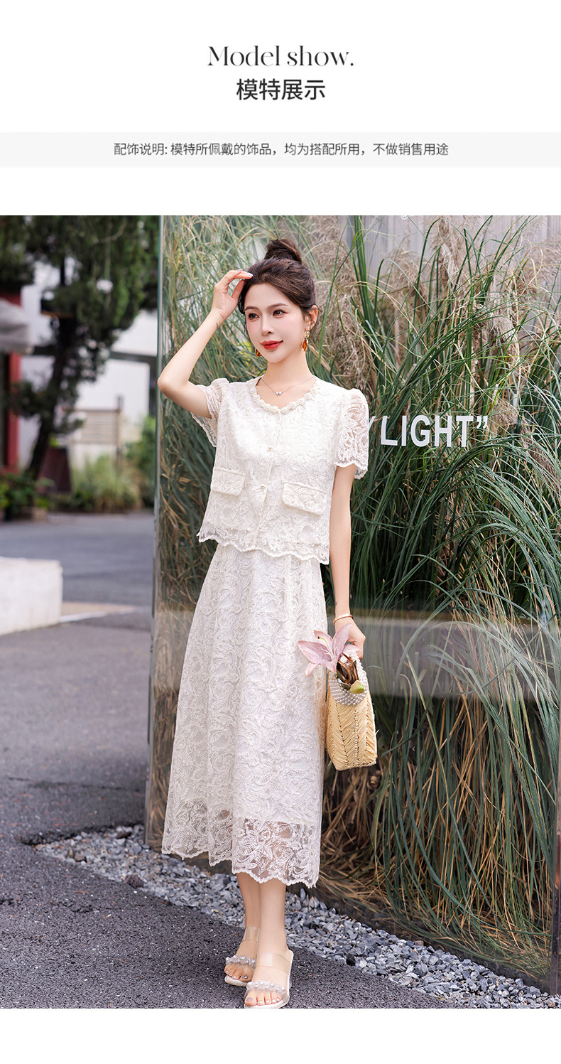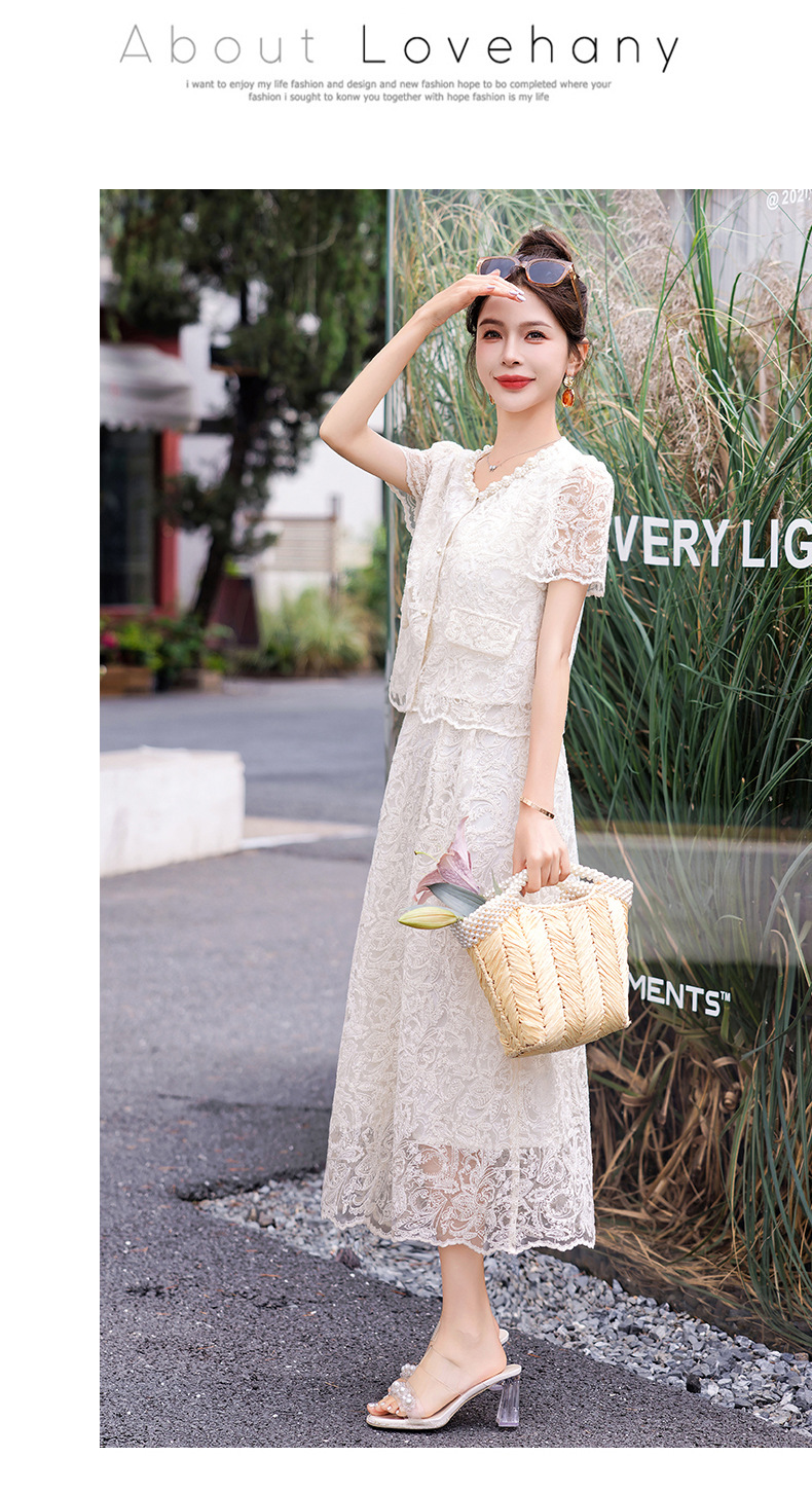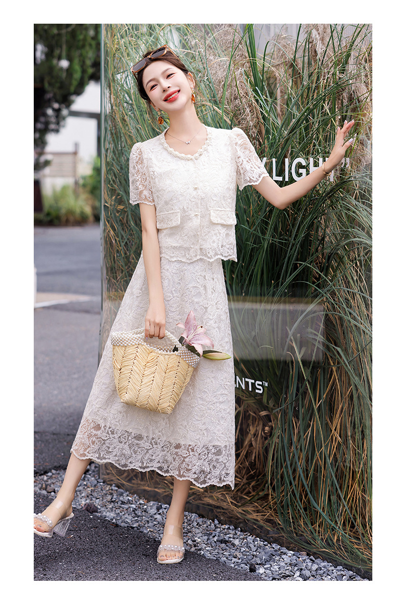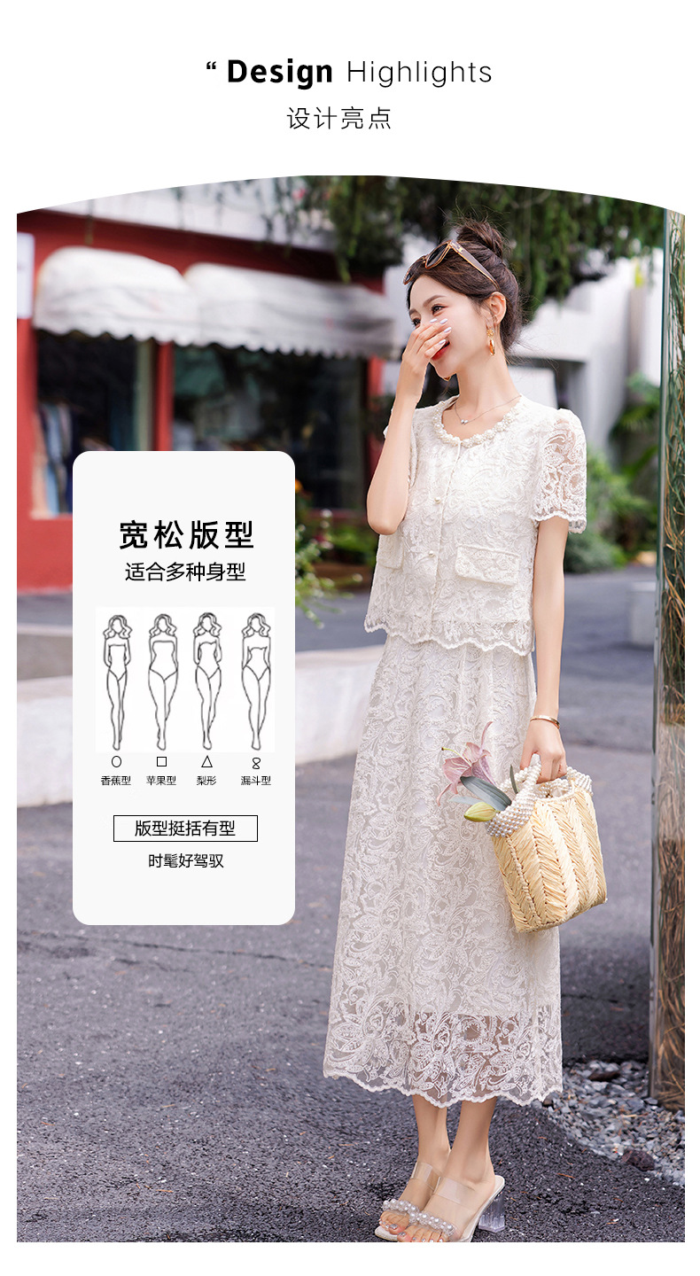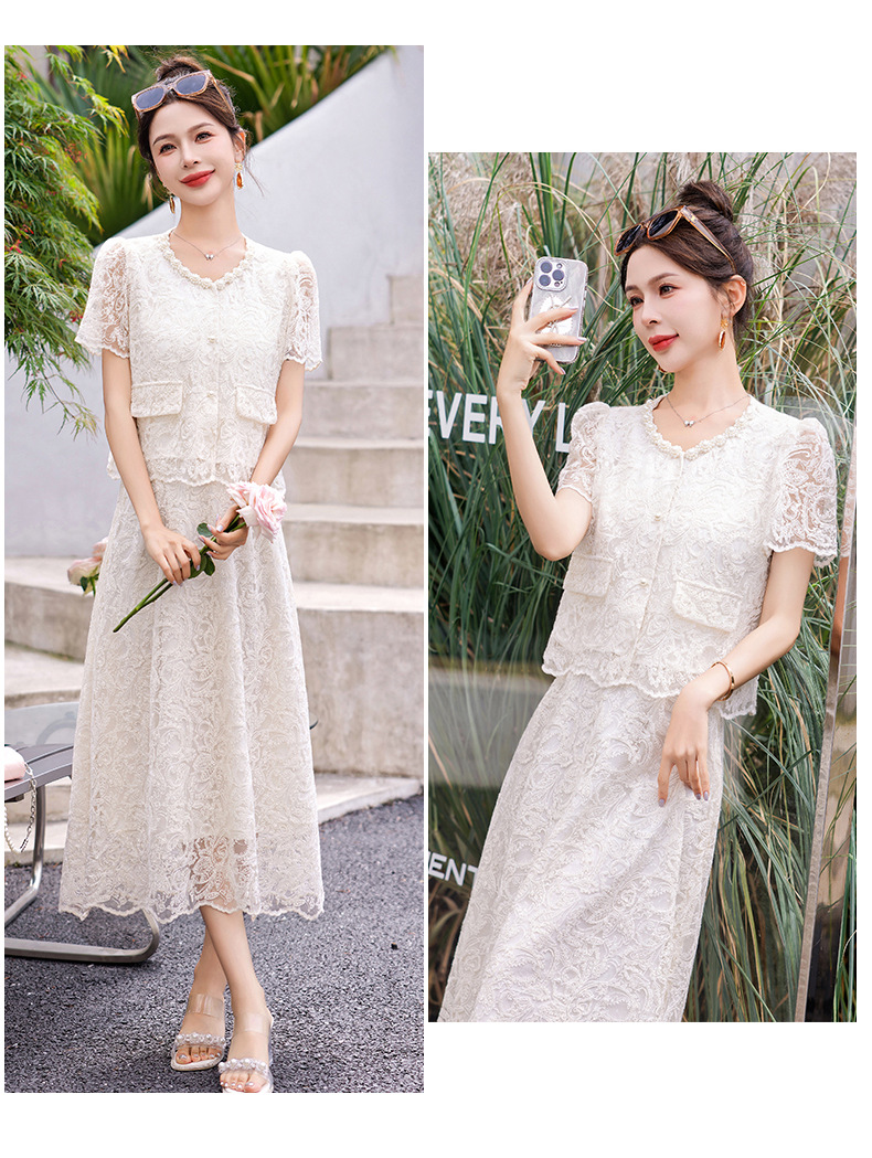 小香风钉珠绣花蕾丝套装裙,气质名媛时尚显瘦上衣半身裙子两件套HR-YJLY9821