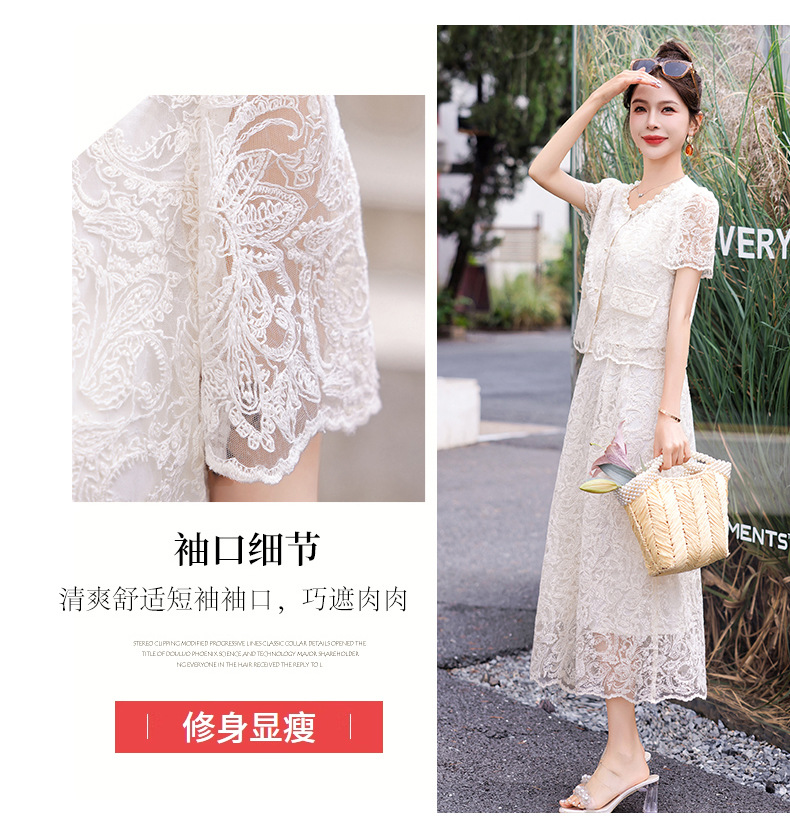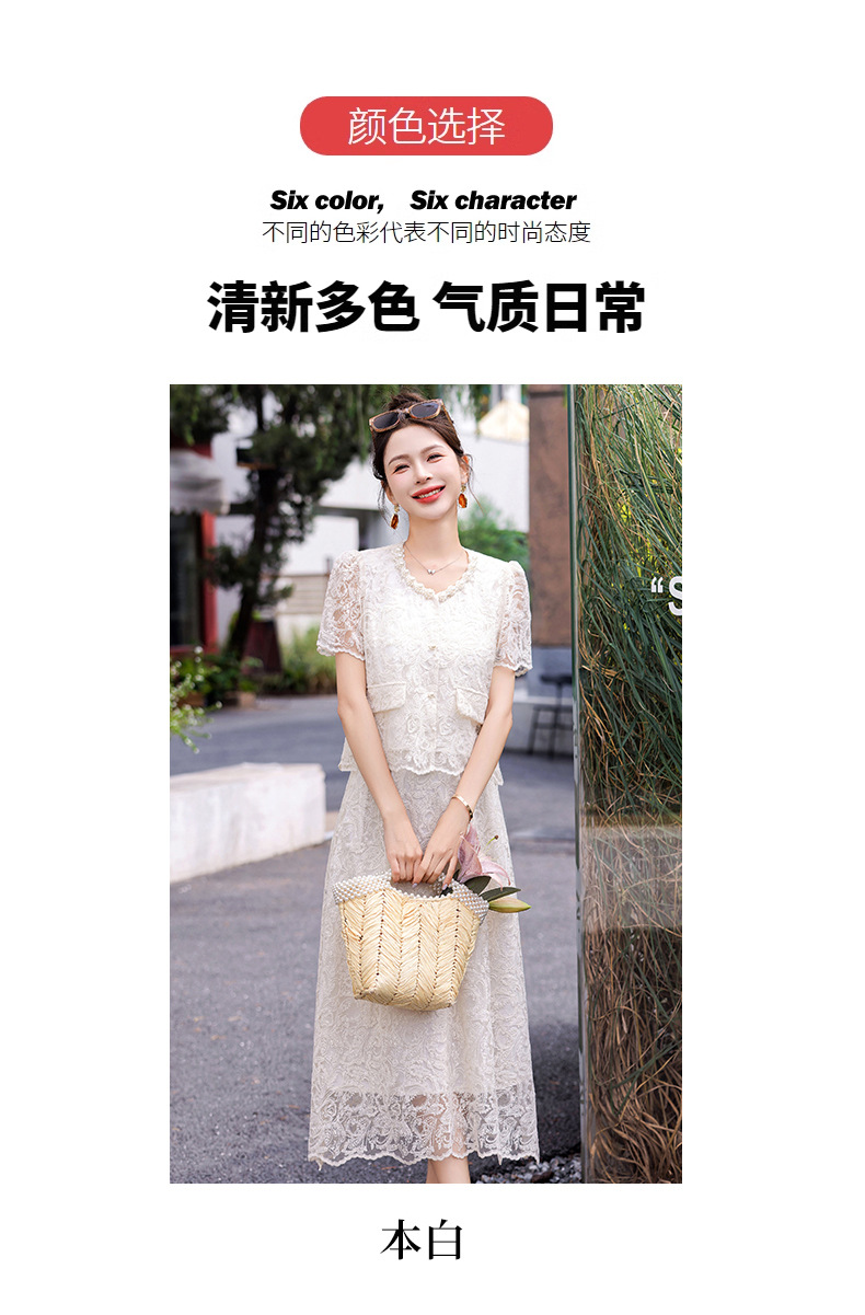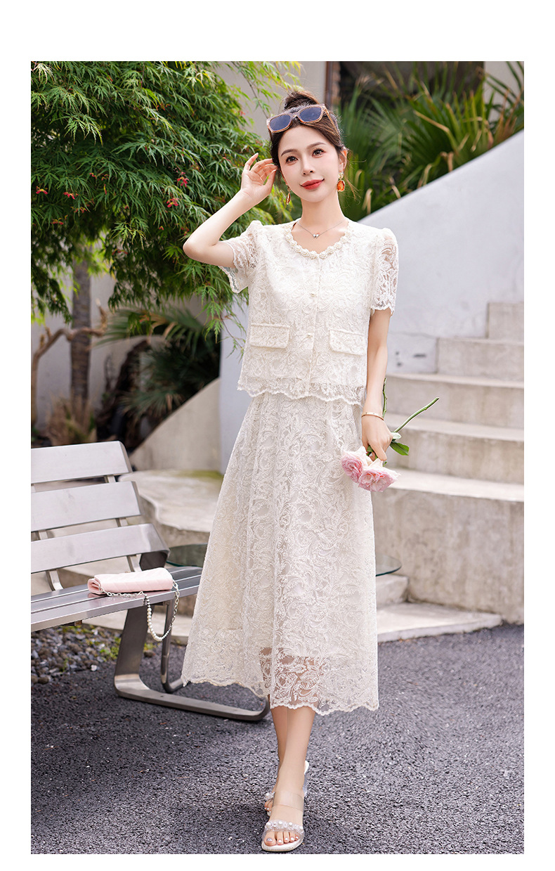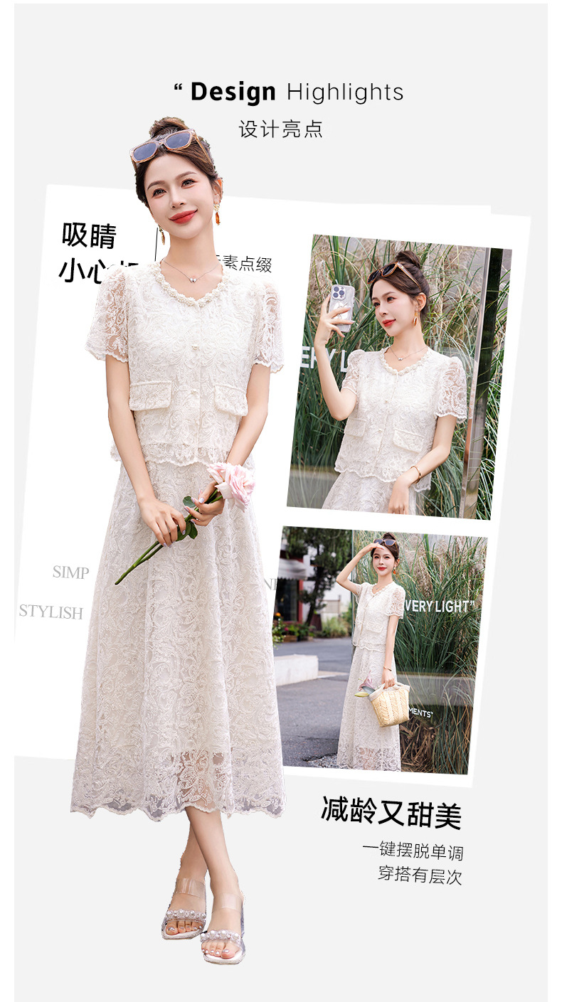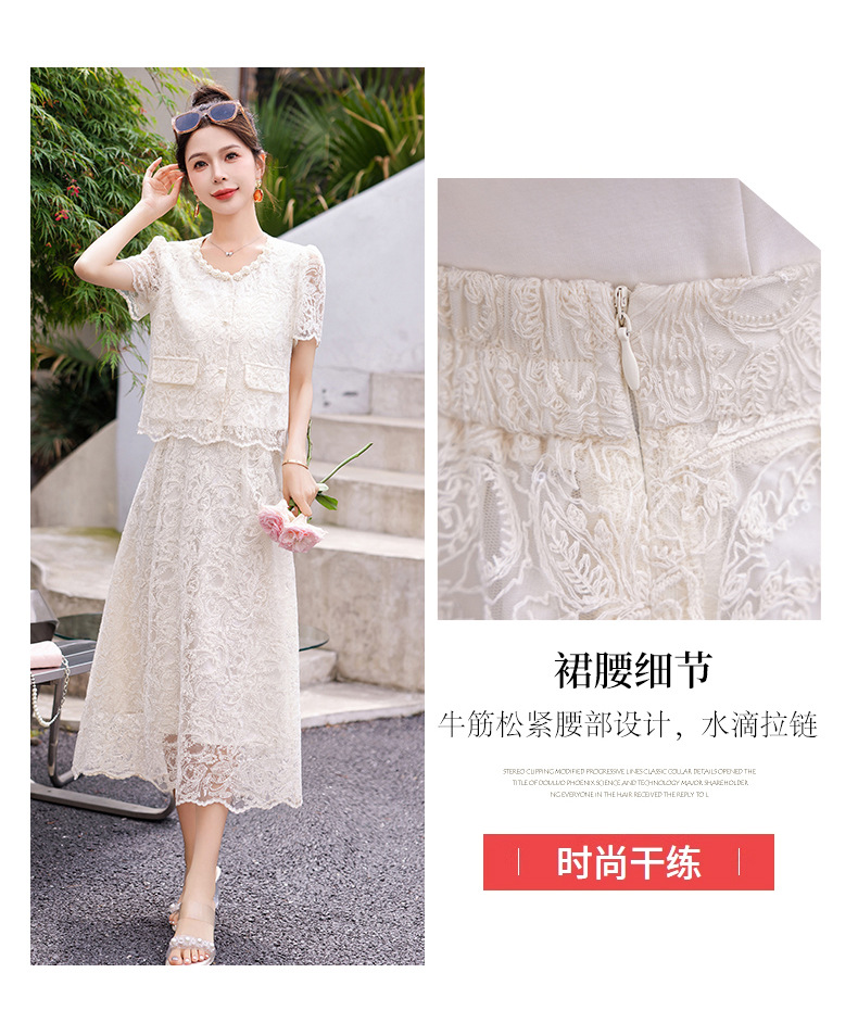 小香风钉珠绣花蕾丝套装裙,气质名媛时尚显瘦上衣半身裙子两件套HR-YJLY9821