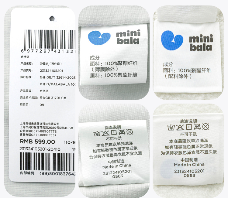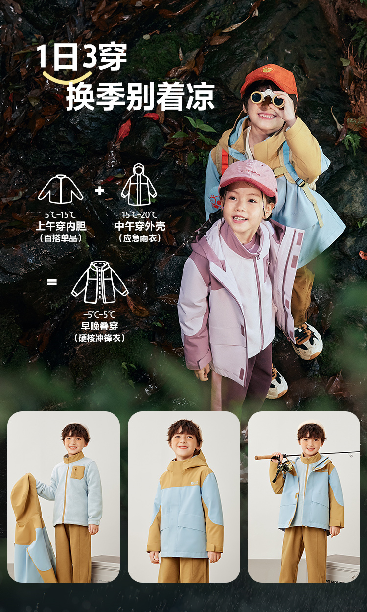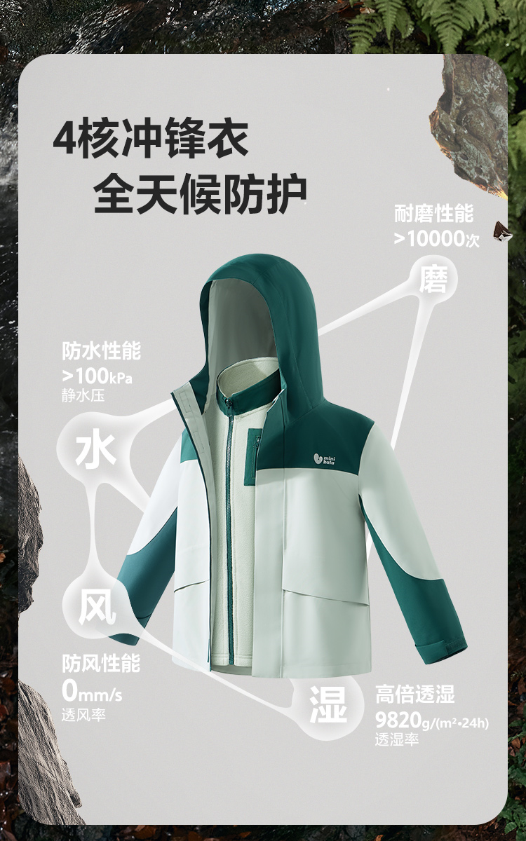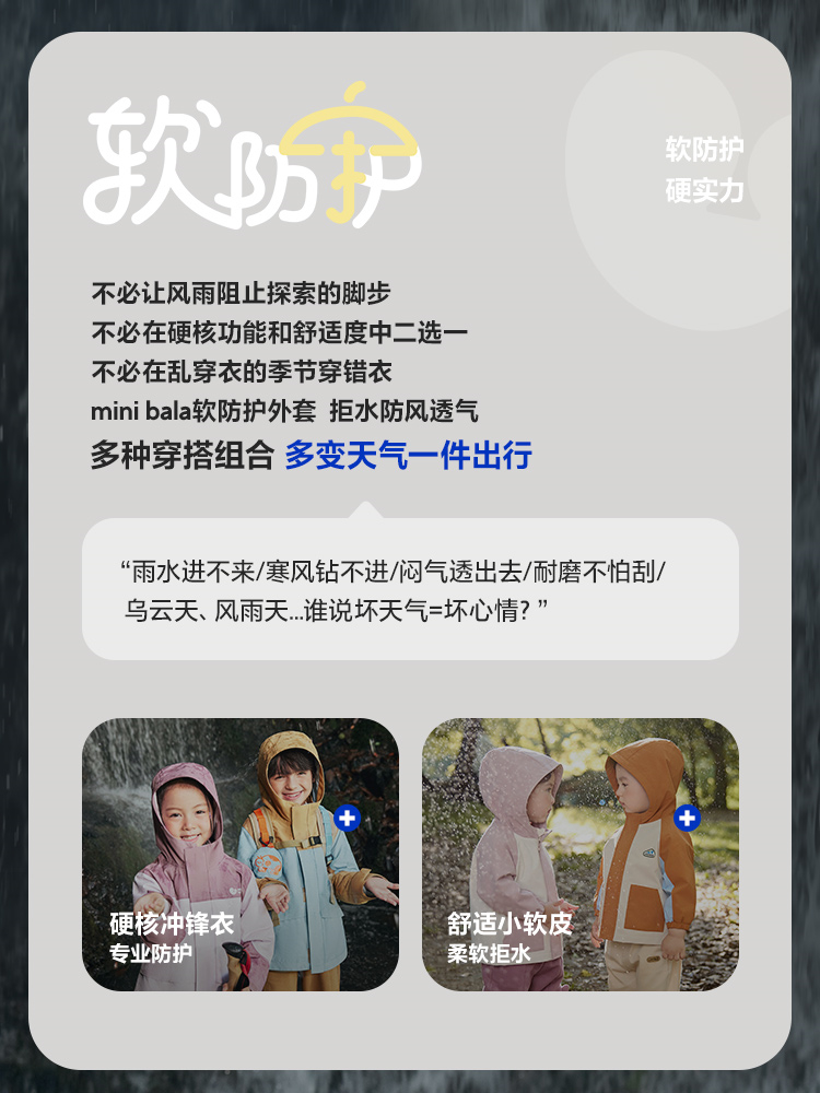 【防水透湿】迷你巴拉秋季新款防风冲锋衣男女童户外冲锋外套