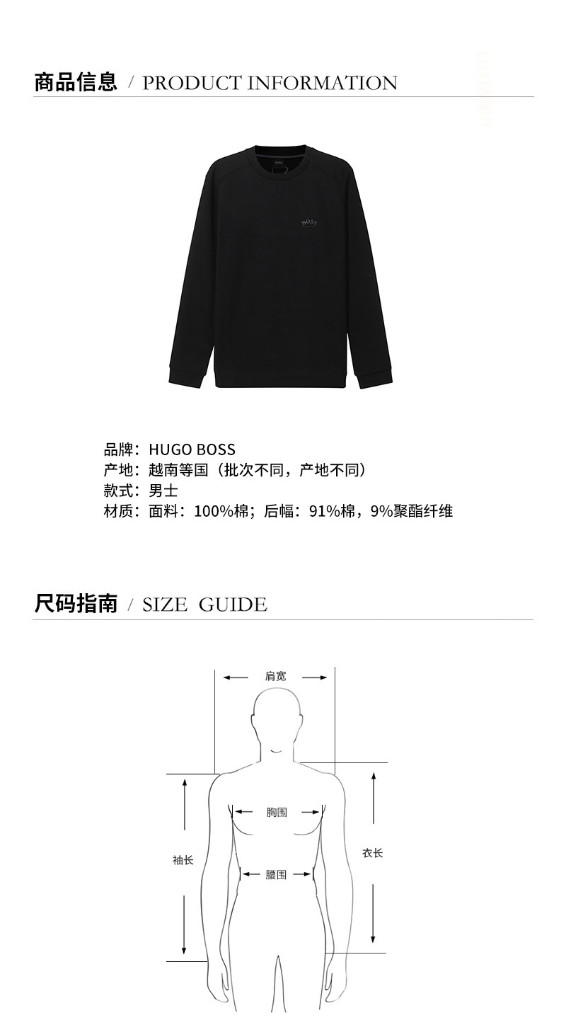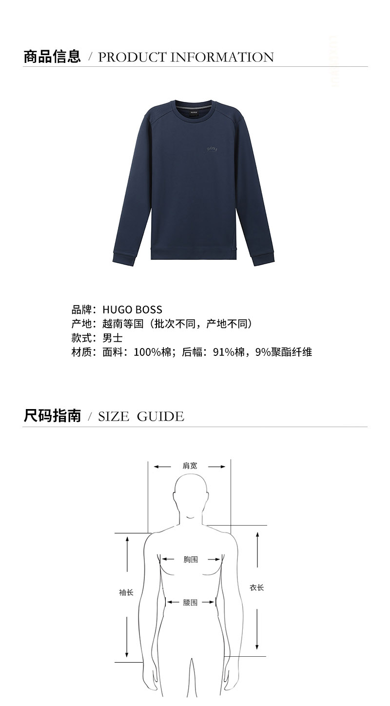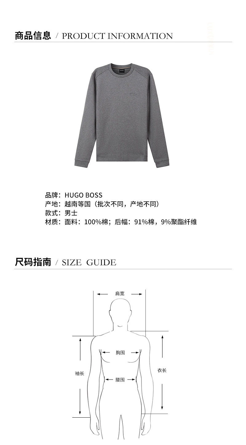HUGO BOSS/雨果博斯【21秋冬新款】男卫衣 男士棉质长袖卫衣运动衫LOGO图案 50455074