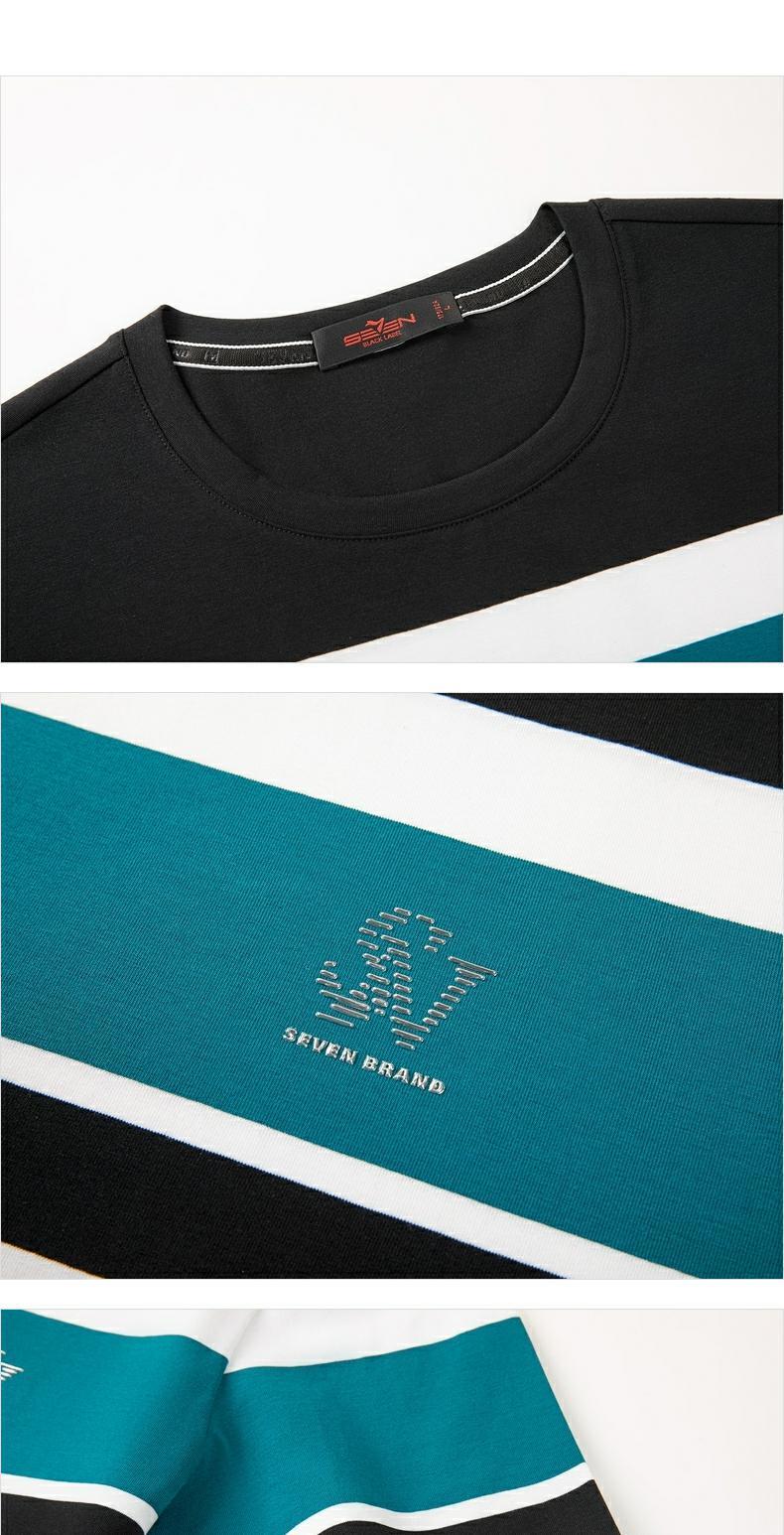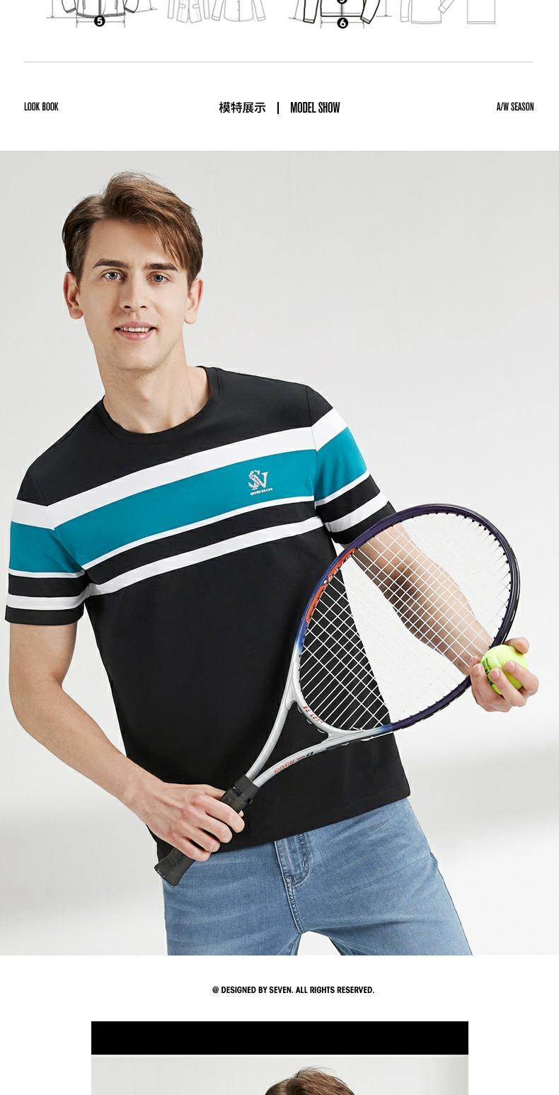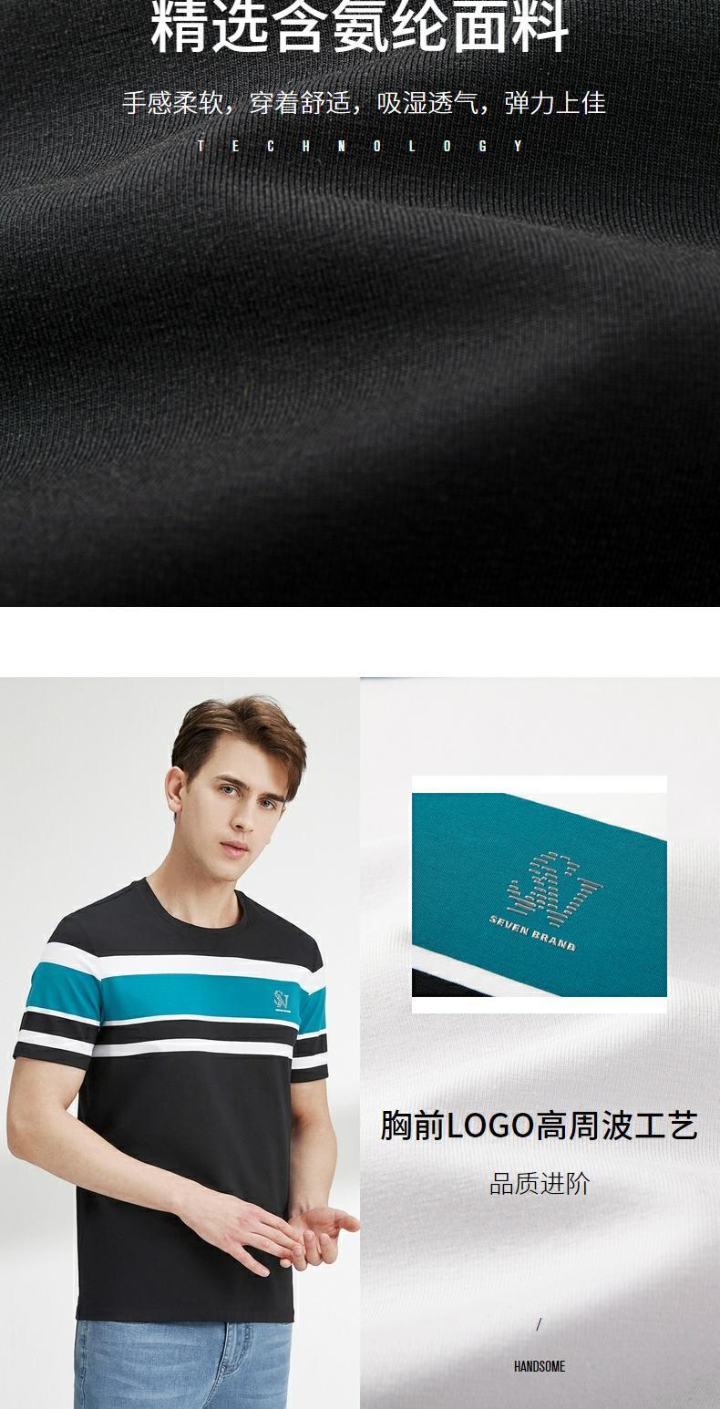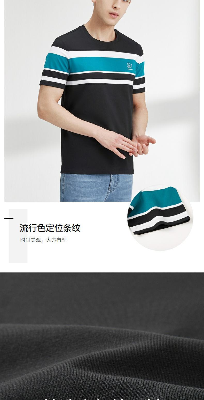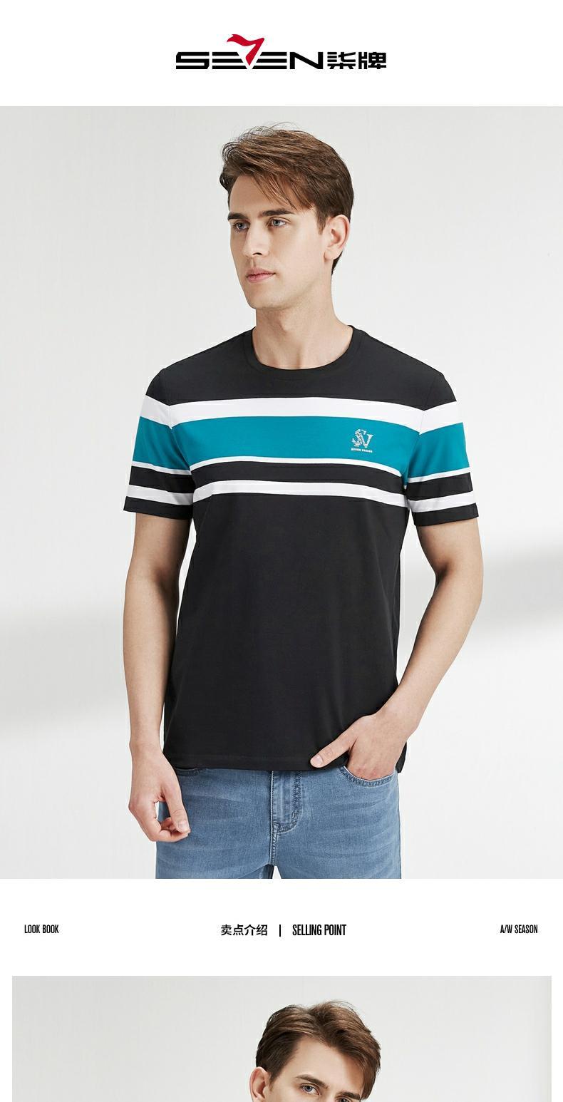 柒牌短袖t恤男圆领夏季新款时尚潮流透气舒适男士条纹体恤衫 122T71050