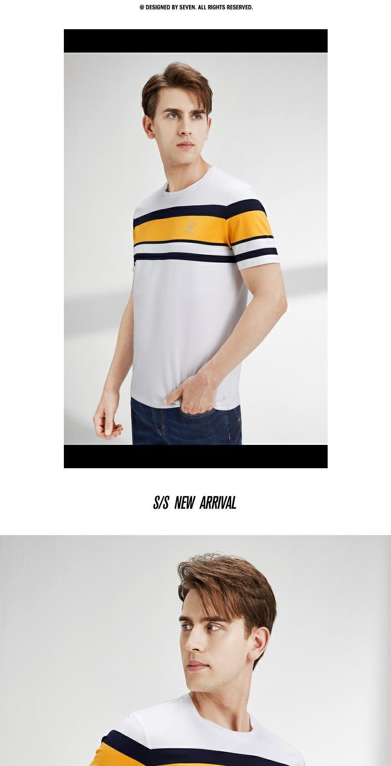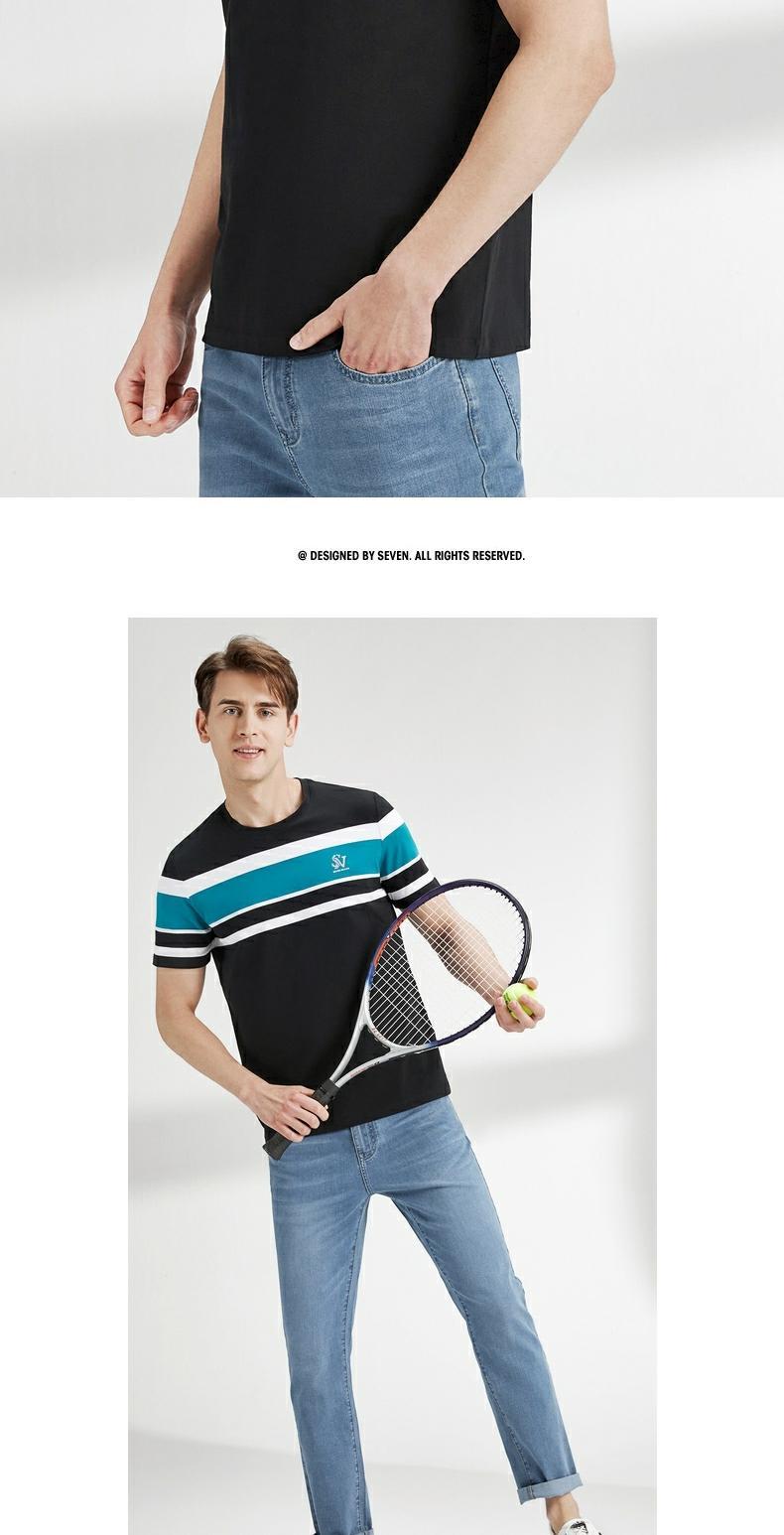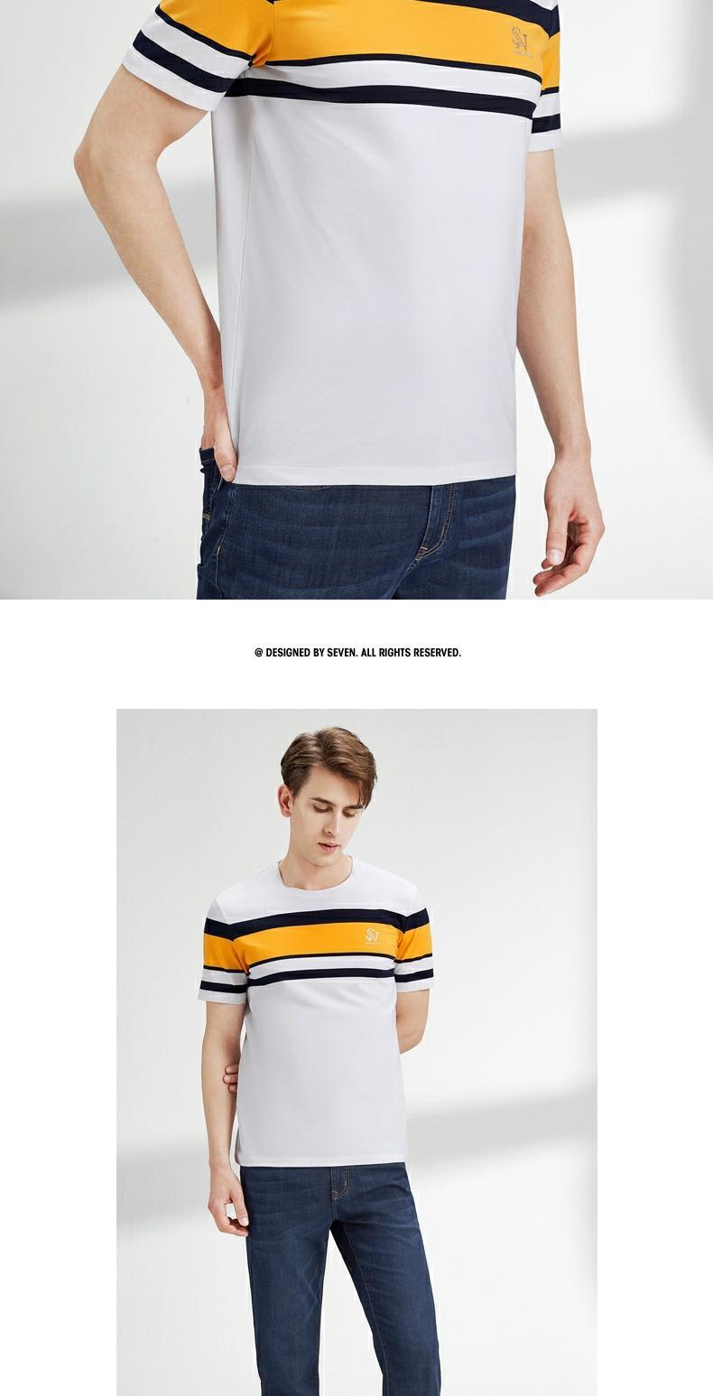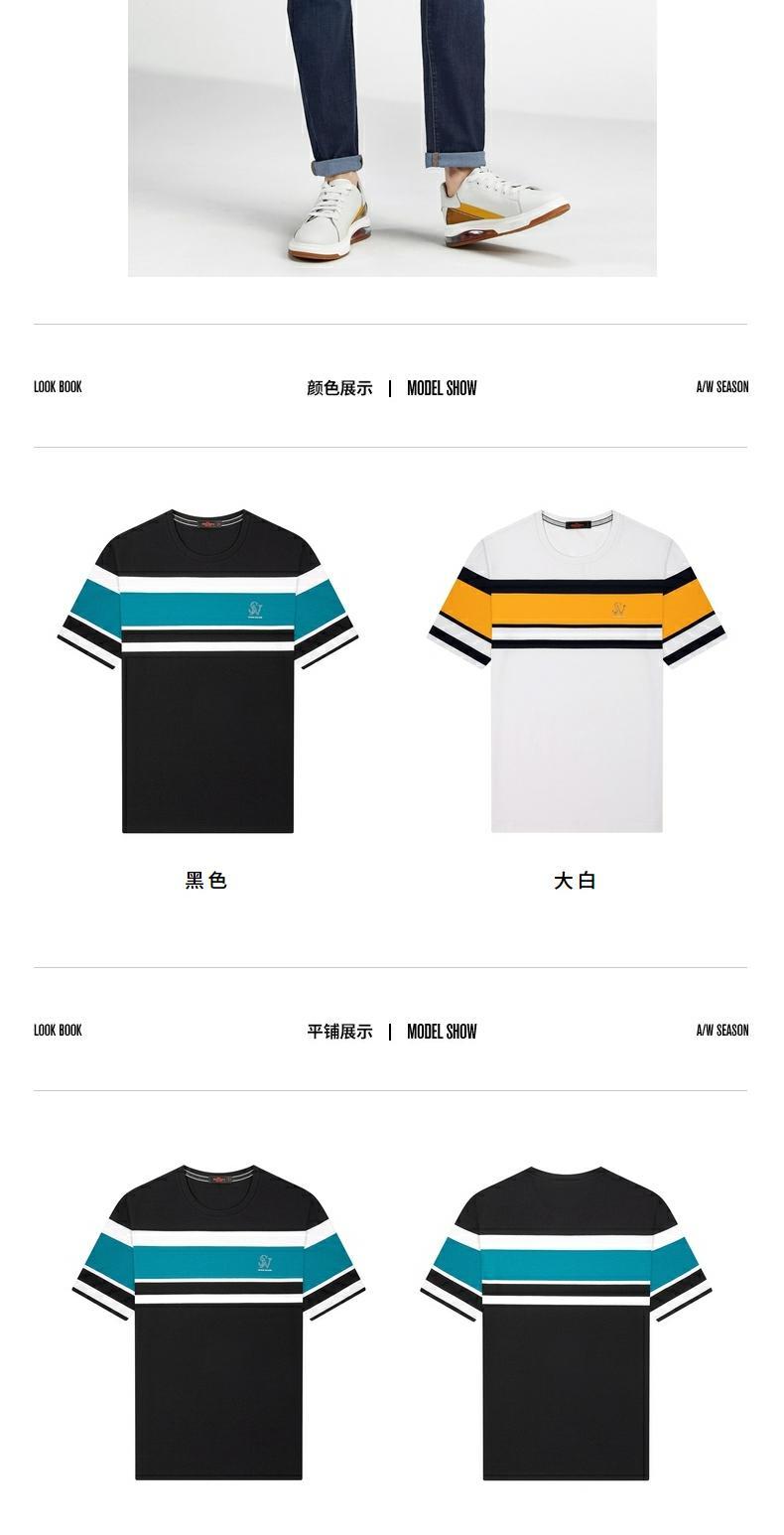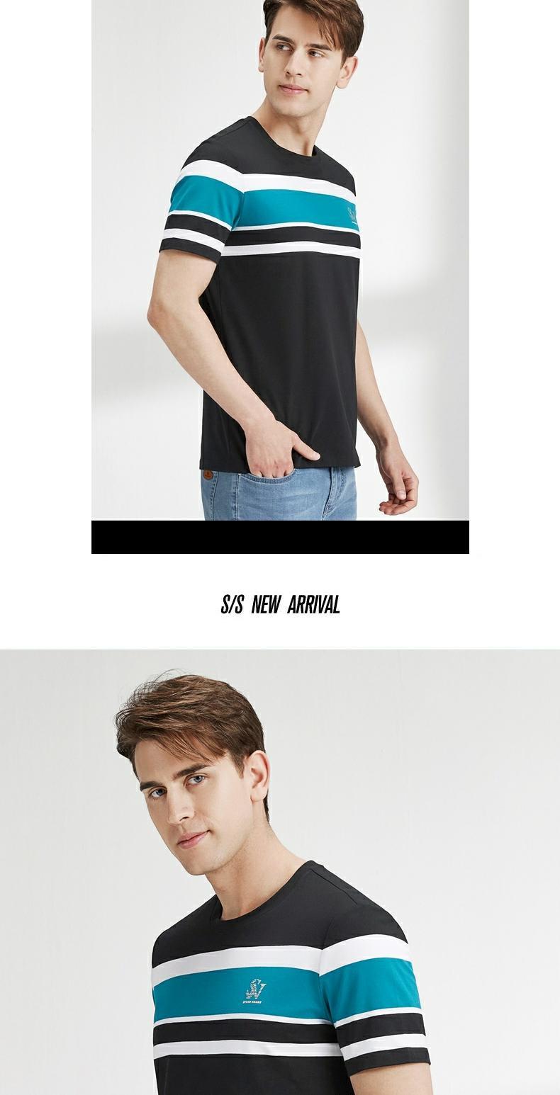 柒牌短袖t恤男圆领夏季新款时尚潮流透气舒适男士条纹体恤衫 122T71050