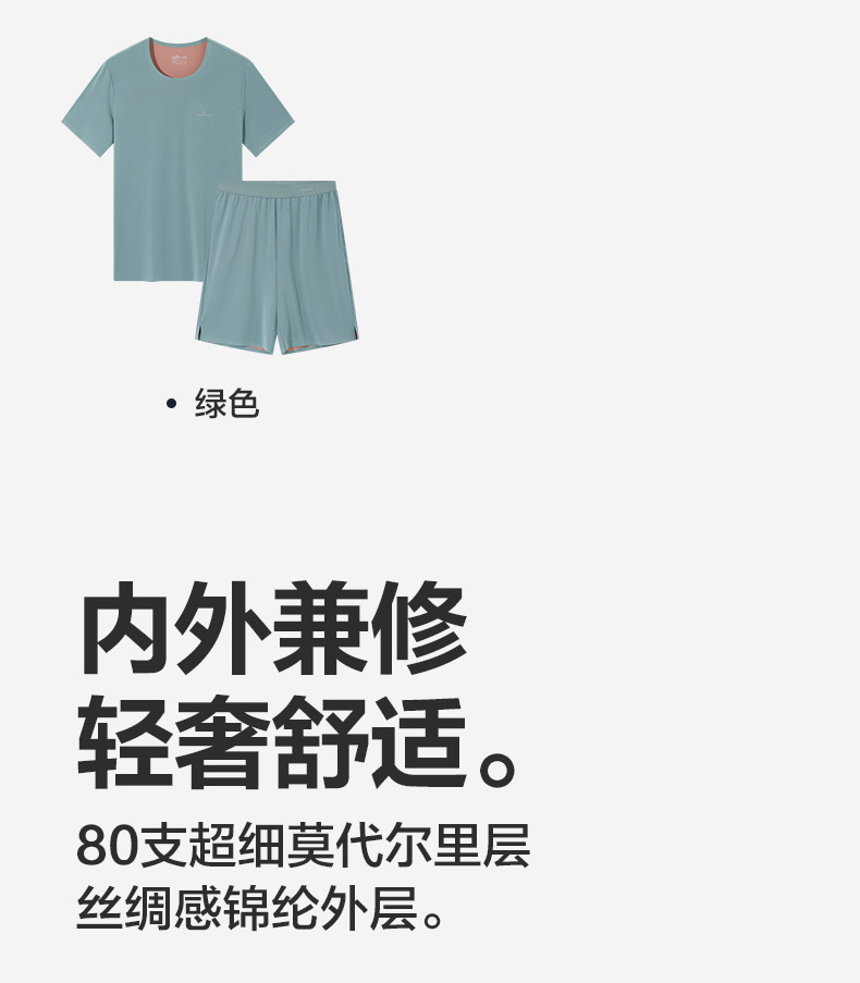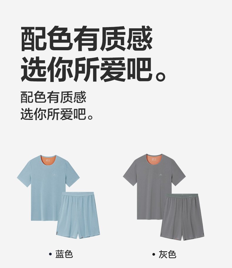 【家居服套装】柒牌男士莫代尔睡衣夏季短袖短裤休闲百搭男式抗菌圆领家居服套装 999G23617