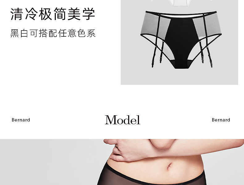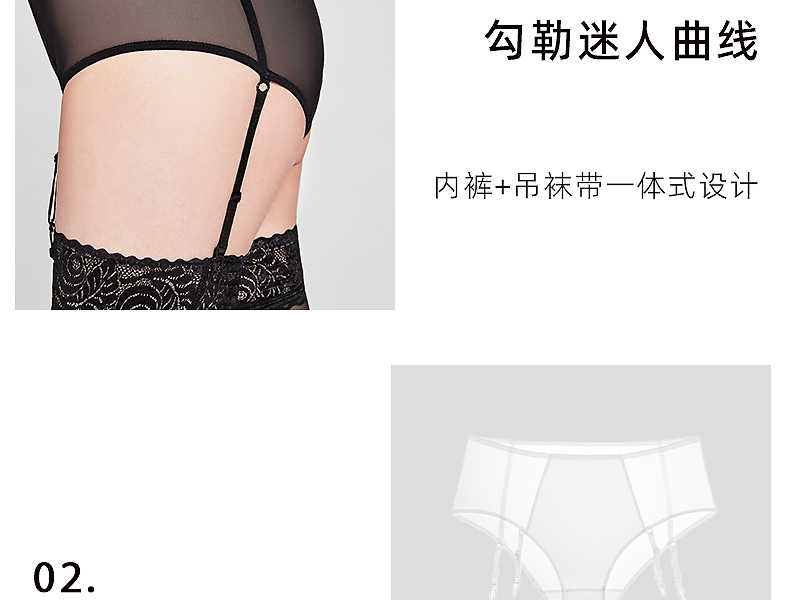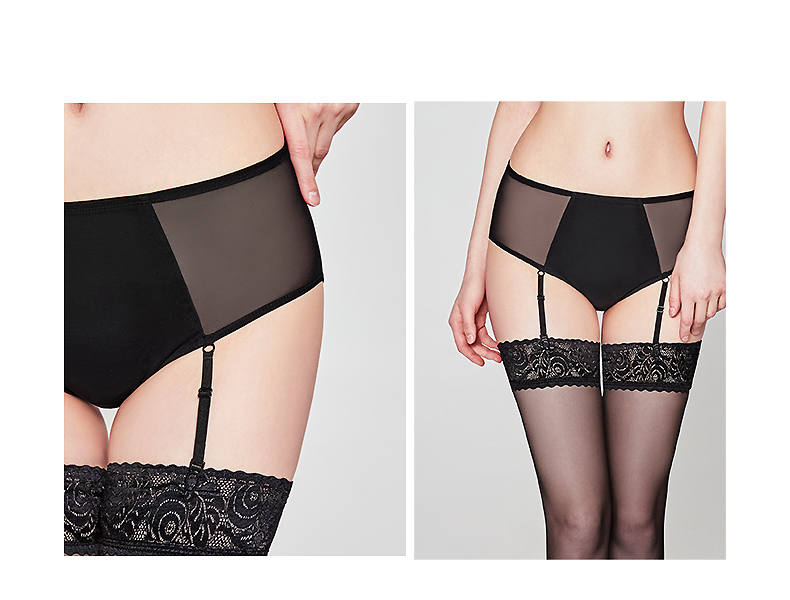 好奇蜜斯高腰性感透视网纱吊袜带纯棉抗菌裆女三角内裤-博纳