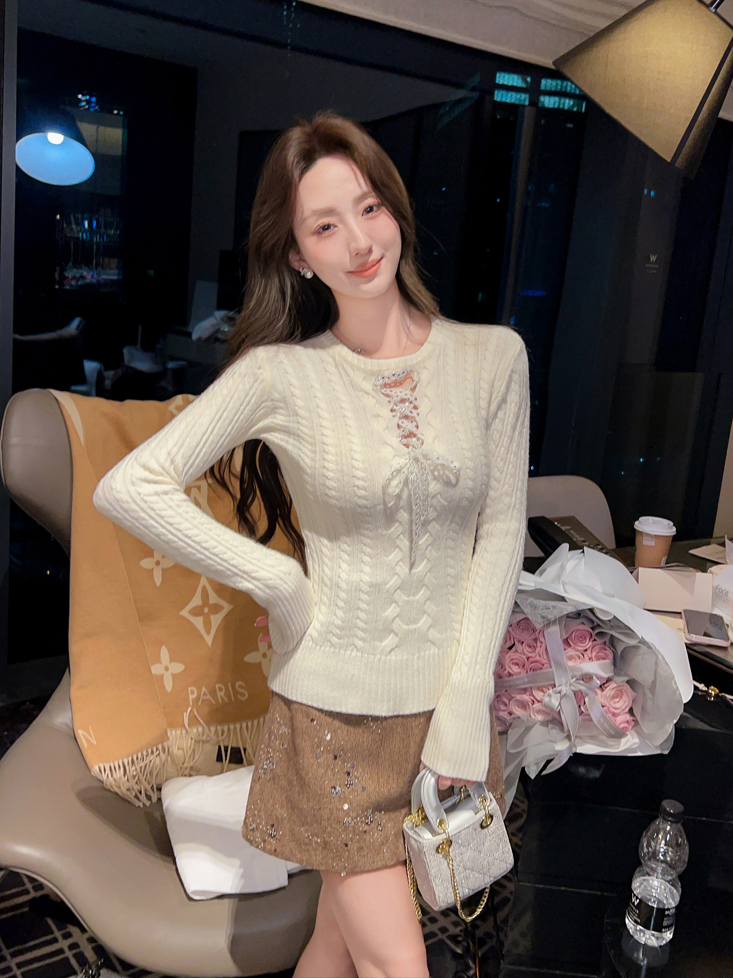 张心子【月夜奏鸣】奶呼呼交叉亮片系带上衣 U2601041