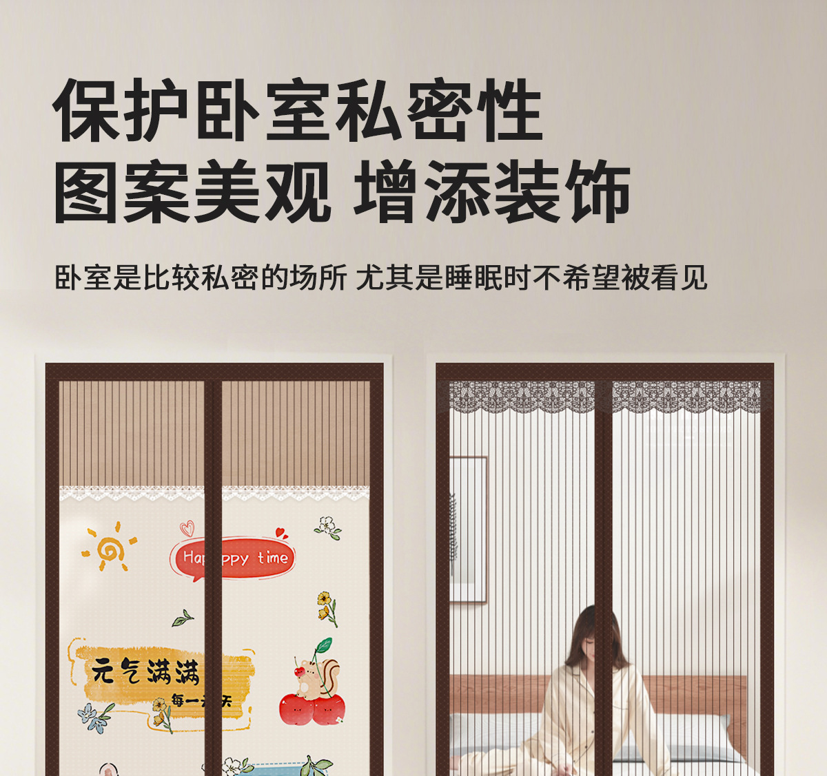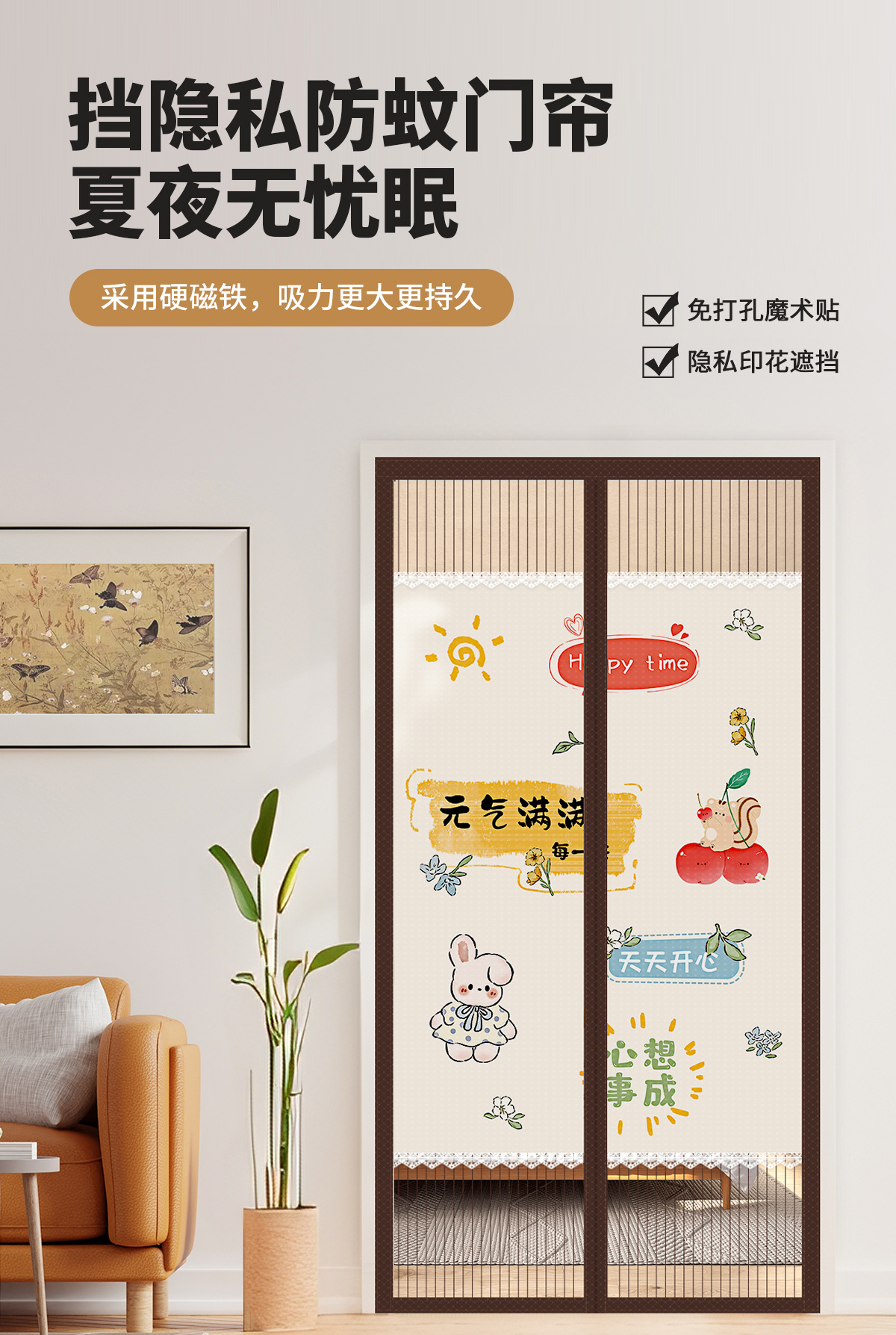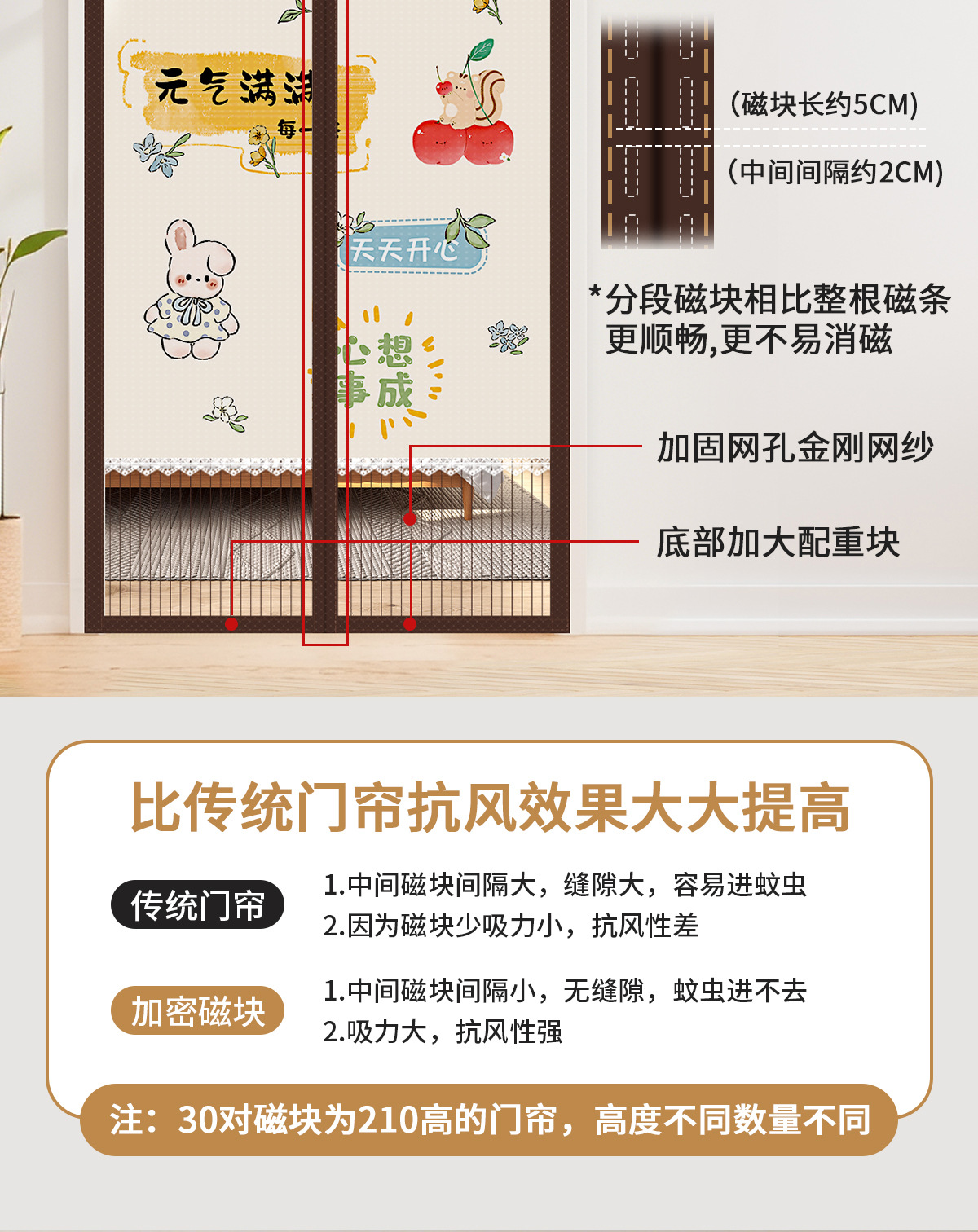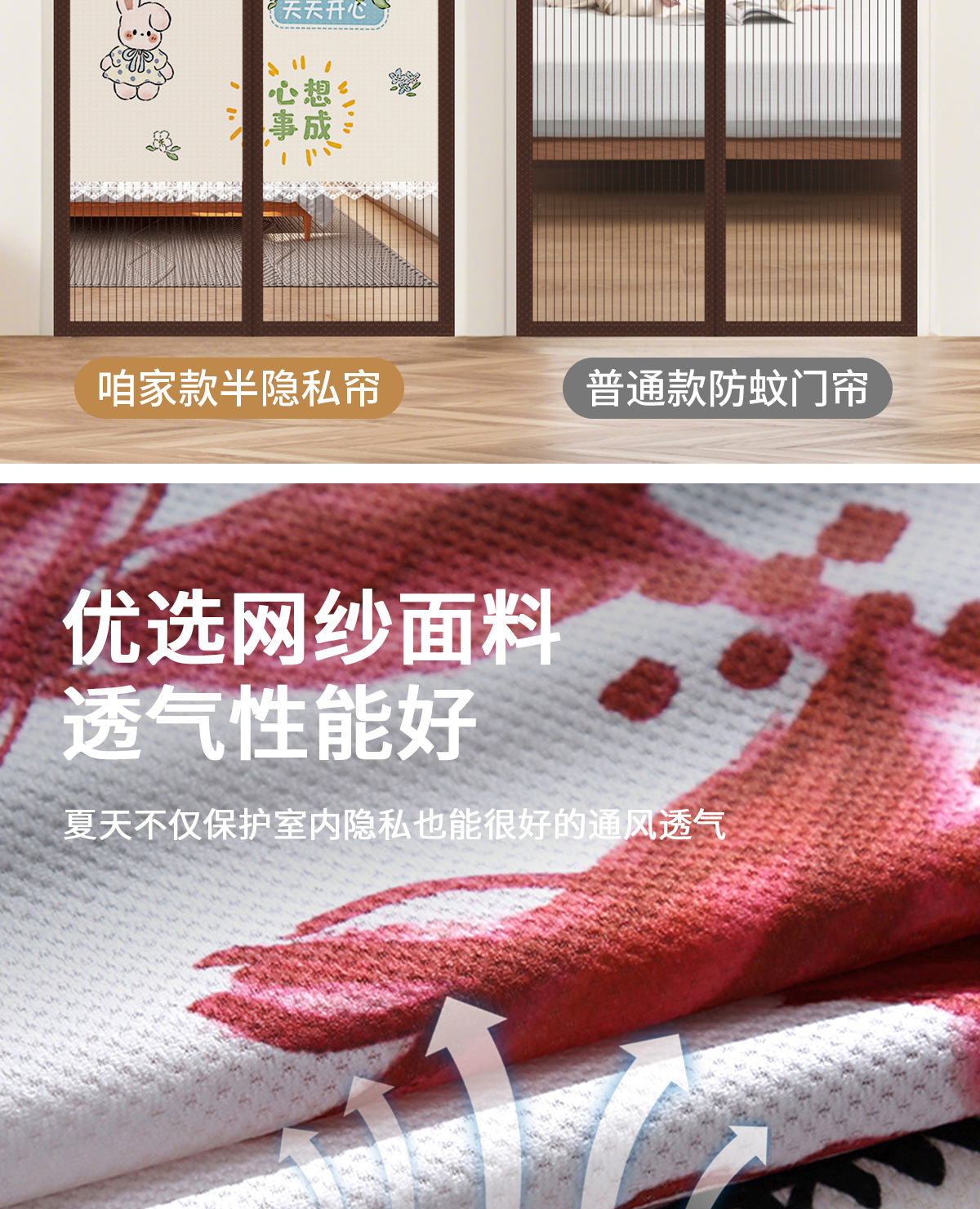 【挡隐私防蚊门帘】金刚网全磁条防蚊门帘魔术贴家用大门磁吸卧室隔断帘免打孔纱门帘。ry